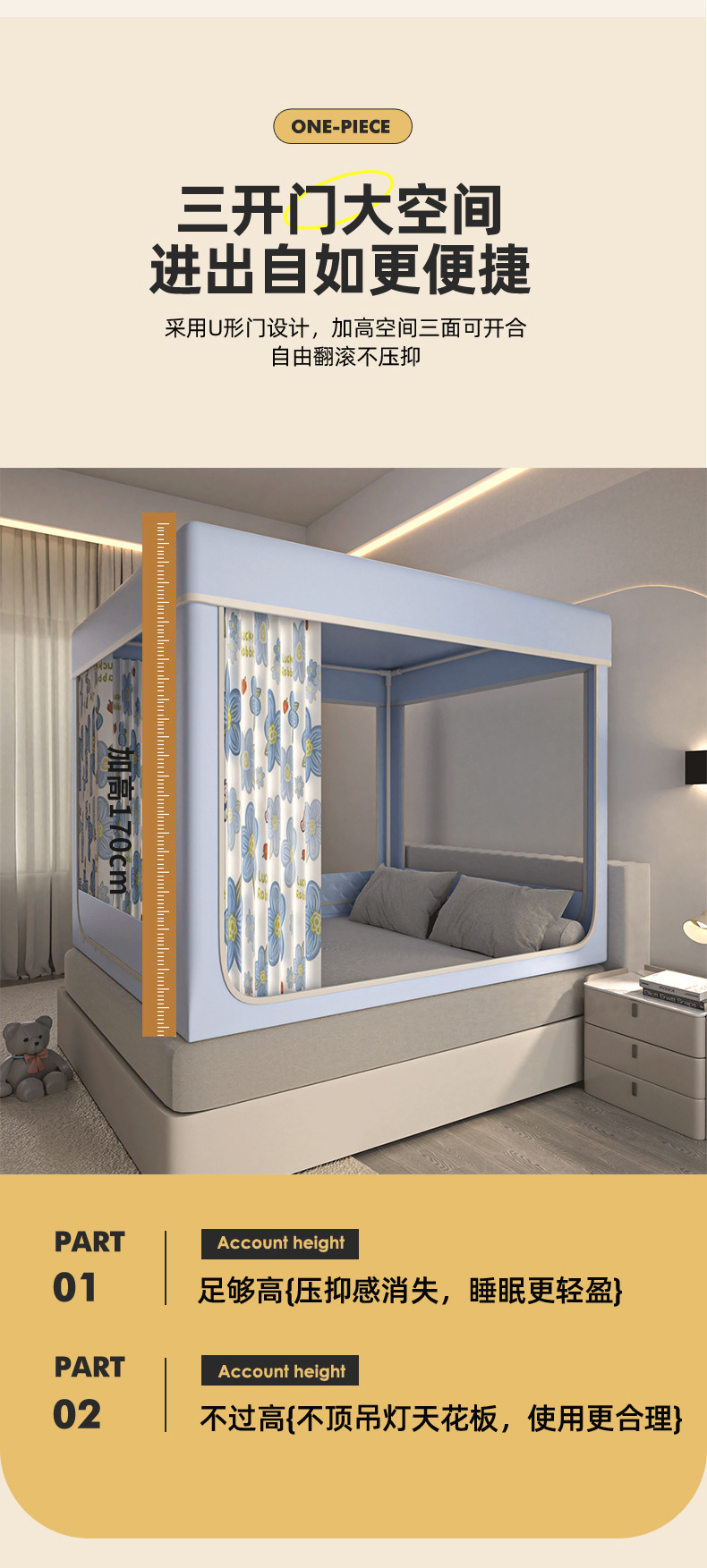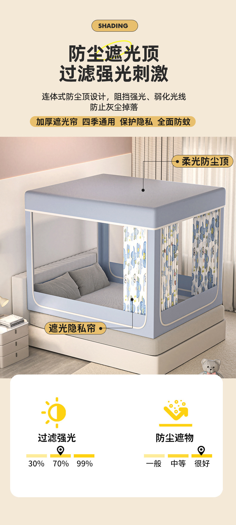 음영 침대 커튼 통합 모기장 가정용 침실 2025 새로운 스타일 텐트 아기 낙하 방지 설치없는 유르트스토어 가기