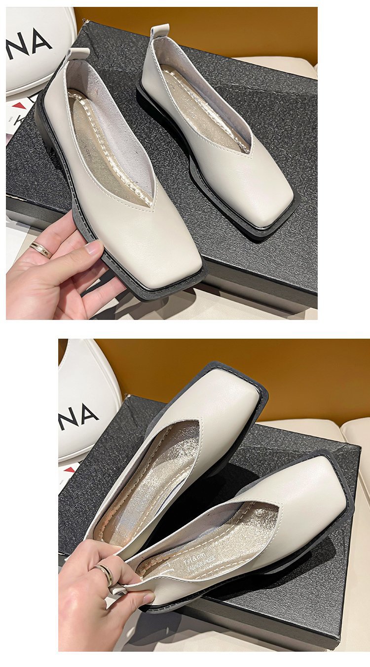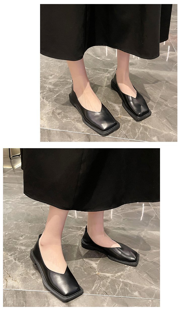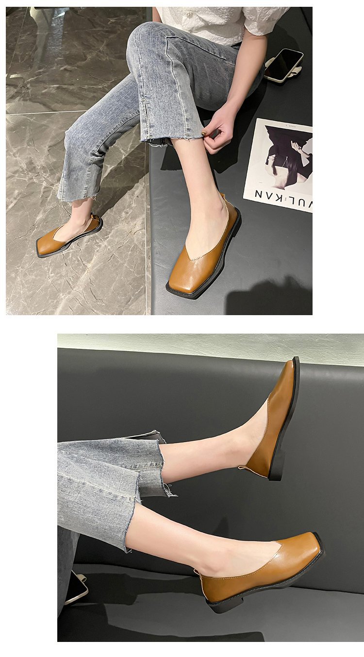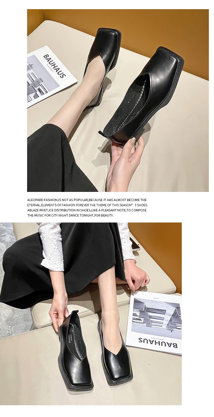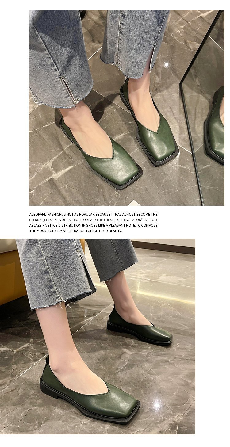 스퀘어 로마 스타일 얕은 입 패션 외부 싱글 레이어 신발 여성 2025 새로운 빈티지 작은 가죽 신발 패션 여성 신발