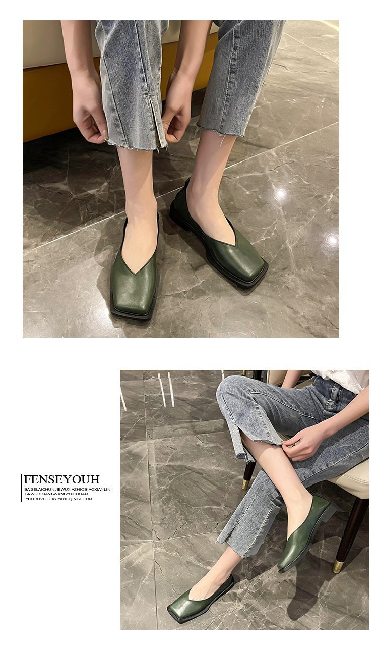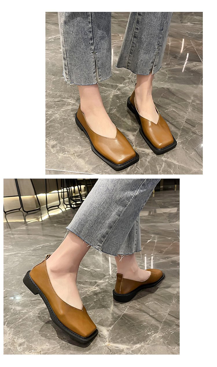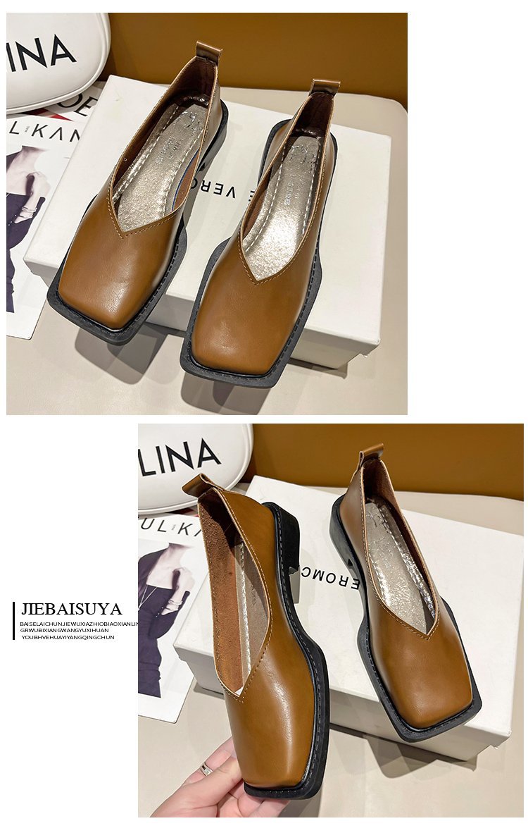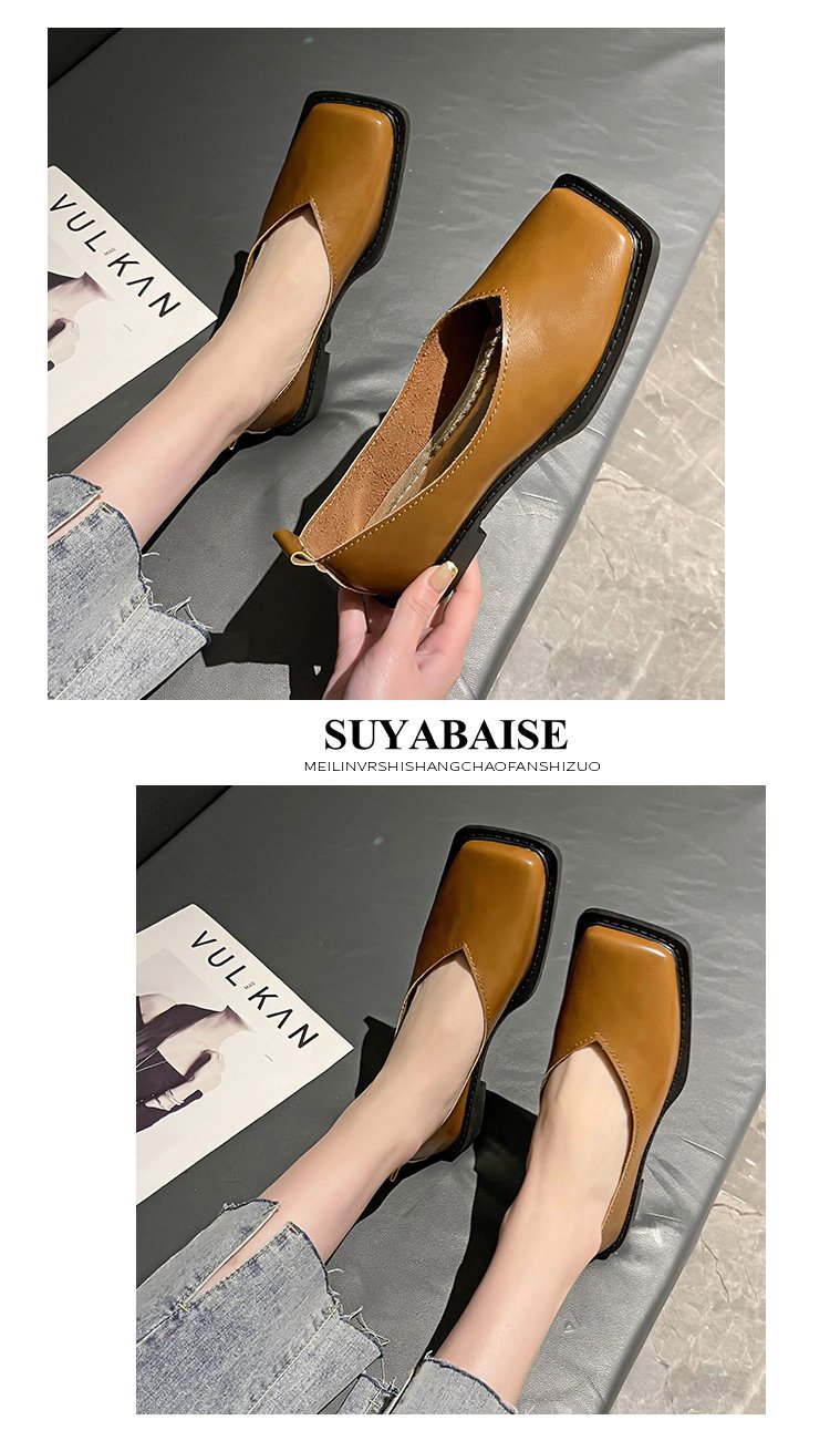 스퀘어 로마 스타일 얕은 입 패션 외부 싱글 레이어 신발 여성 2025 새로운 빈티지 작은 가죽 신발 패션 여성 신발스토어 가기