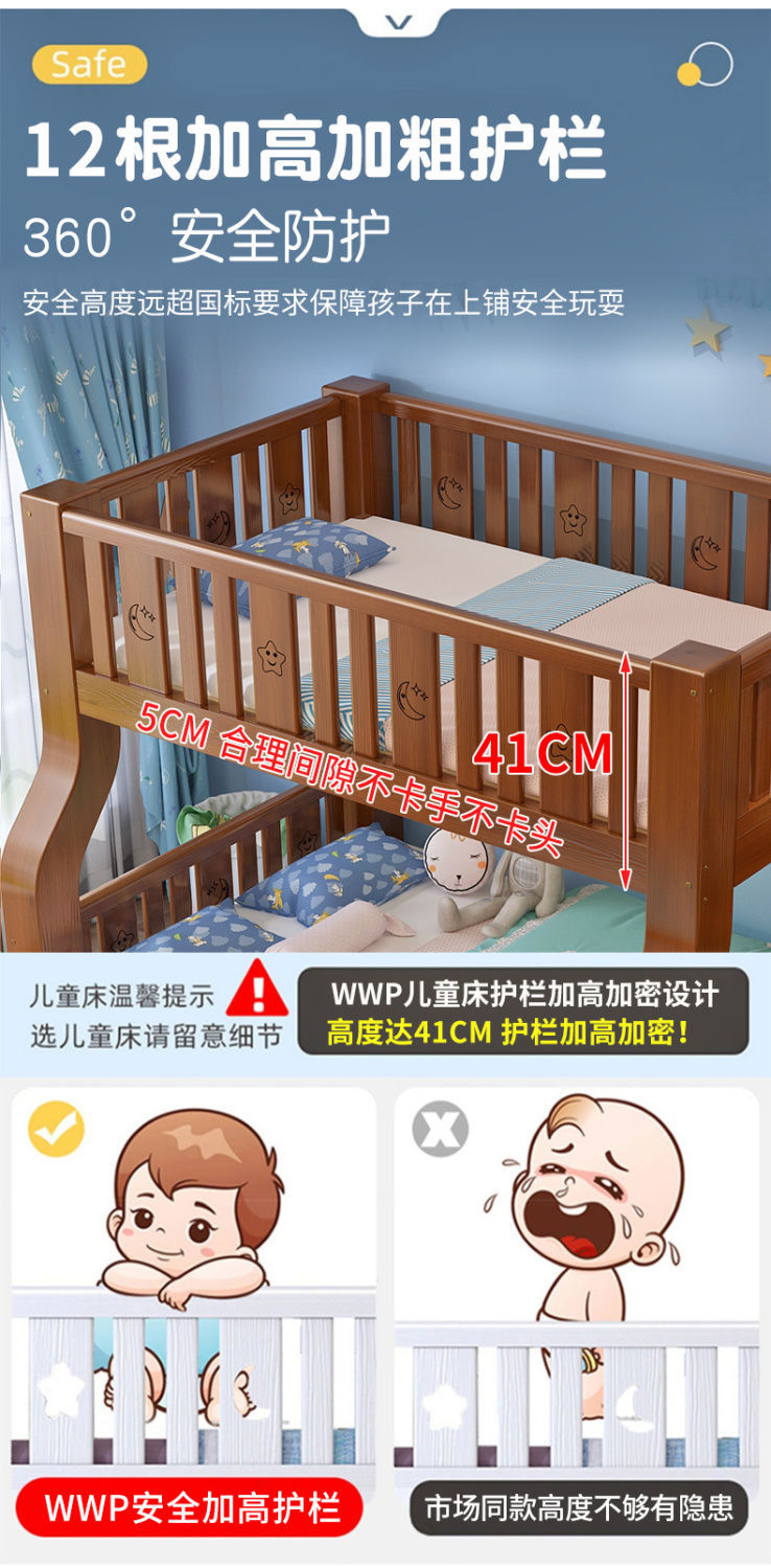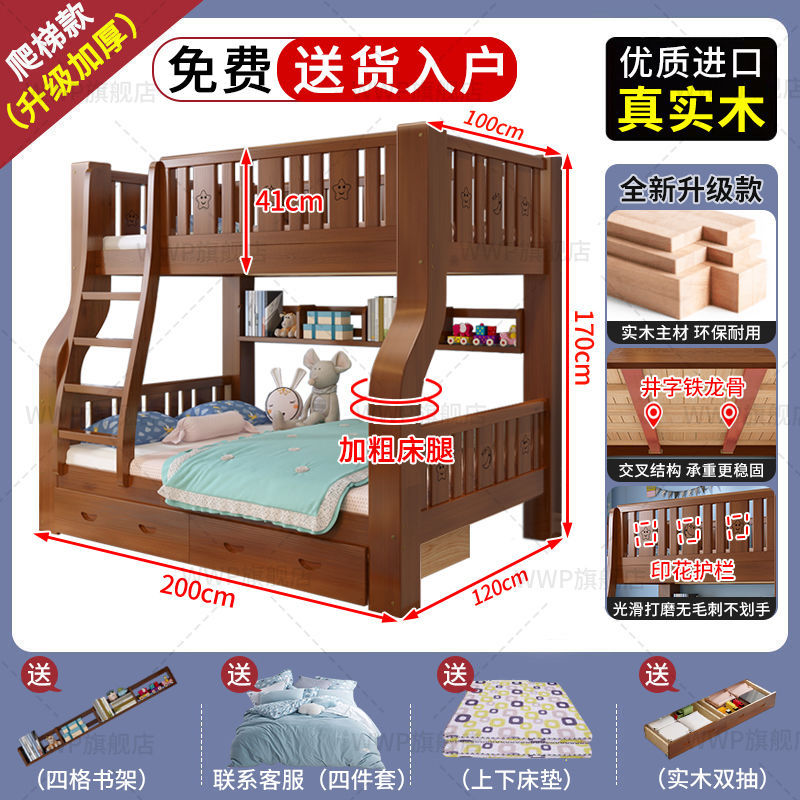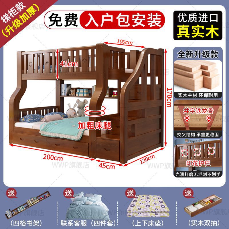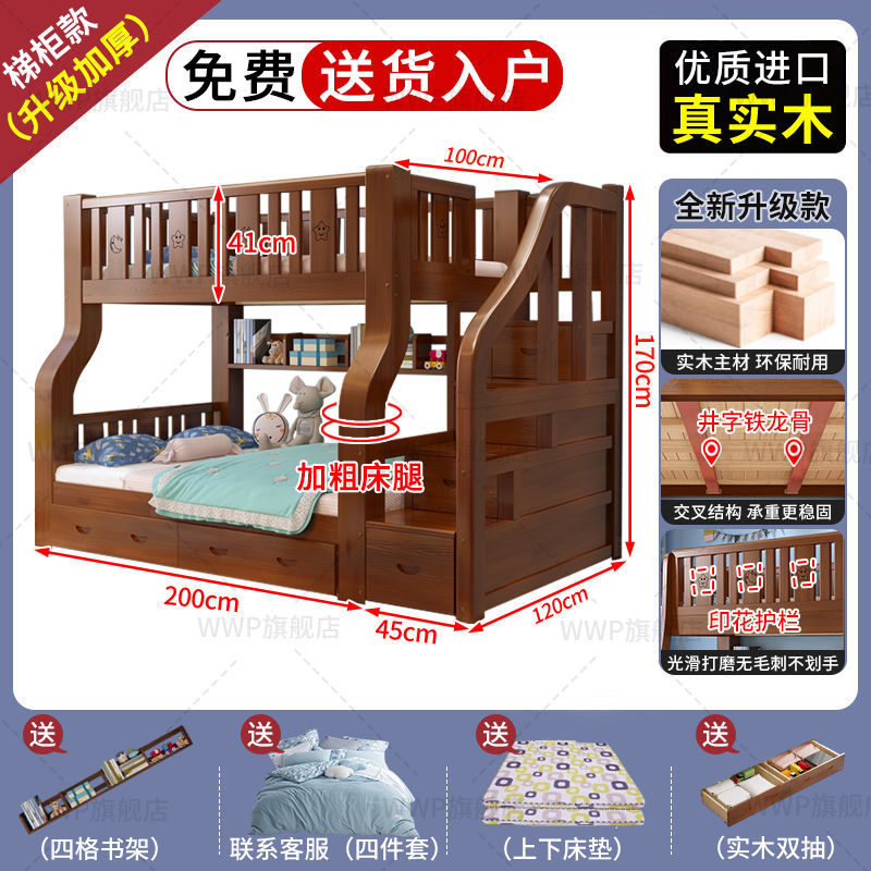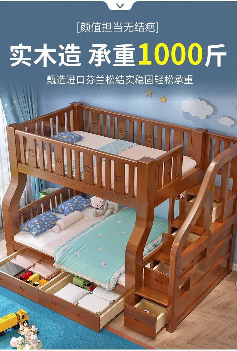 새로운 모델의 원목 이층침대, 두꺼운 프레임의 어린이용 이층침대