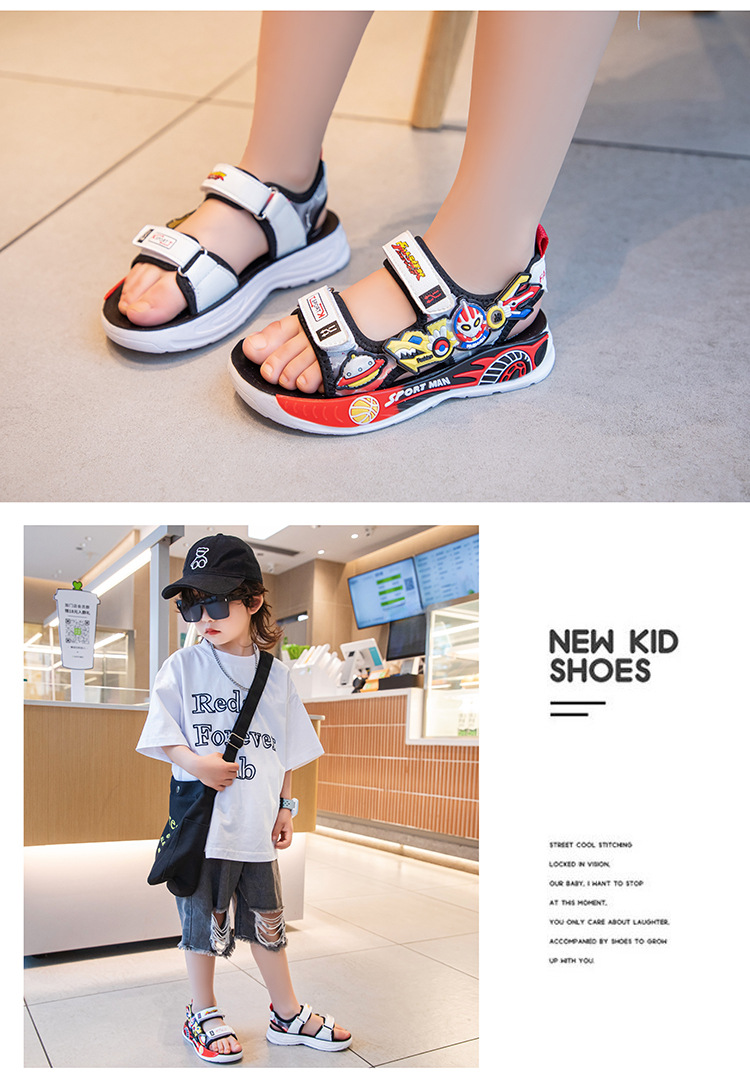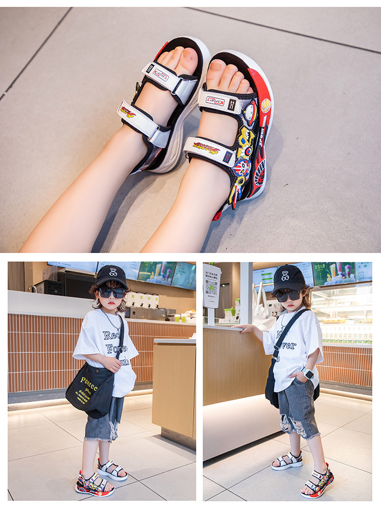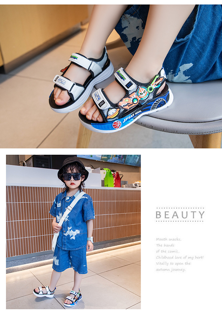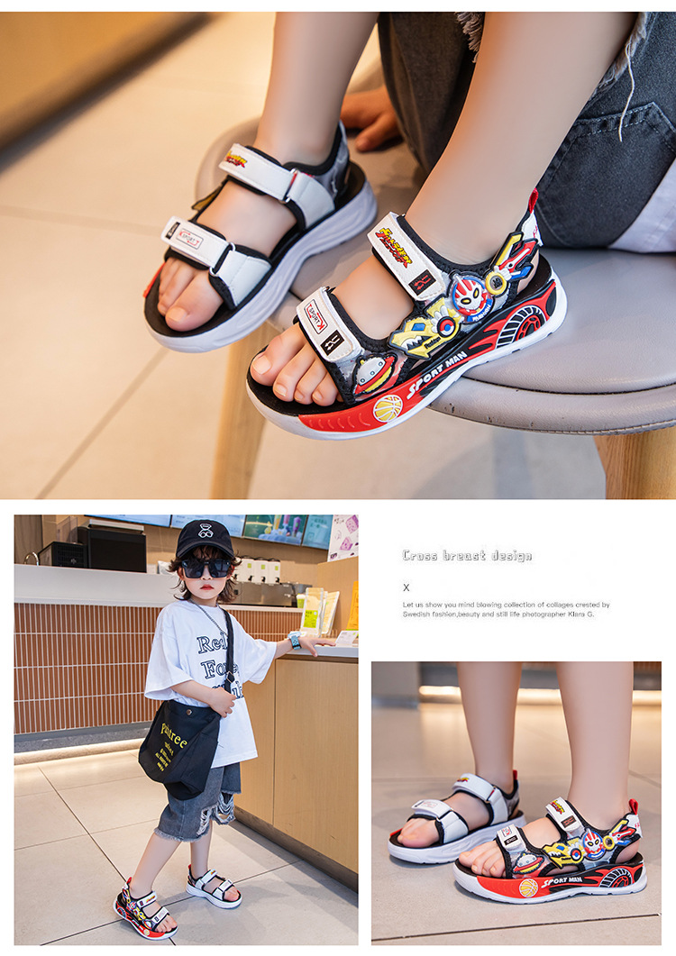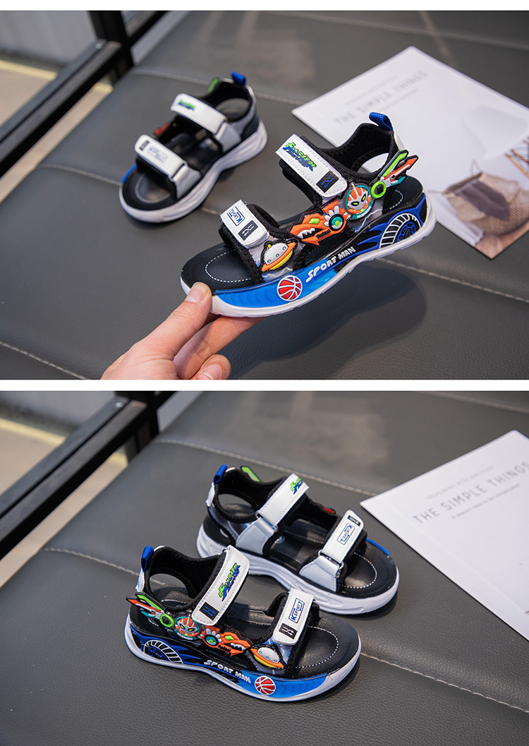 어린이 샌들, 남아용 비치 샌들, 2026년 여름 신상품, 학생 인터넷 유명인 만화 캐릭터 부드러운 밑창 남아용 캐주얼 샌들, 트렌디스토어 가기