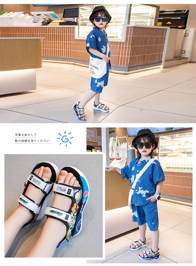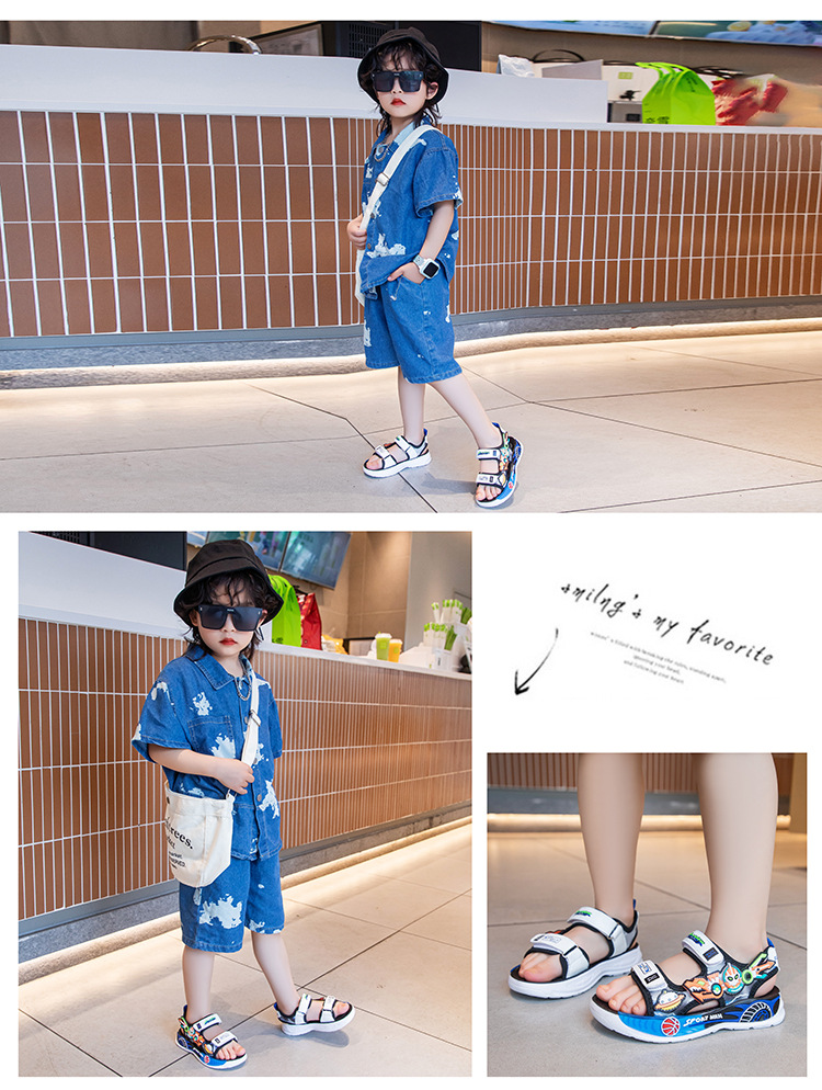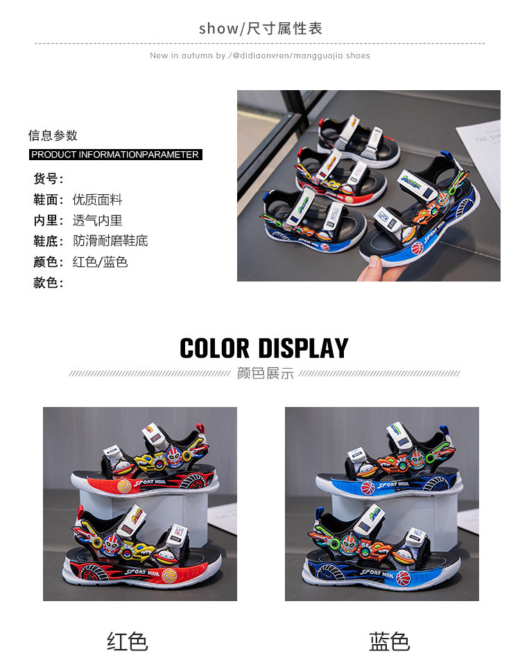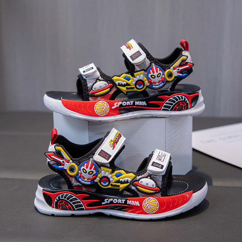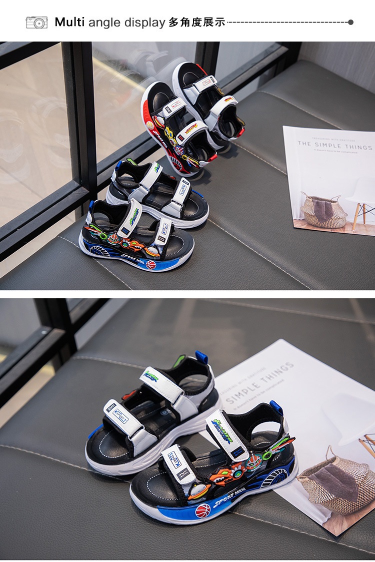 어린이 샌들, 남아용 비치 샌들, 2026년 여름 신상품, 학생 인터넷 유명인 만화 캐릭터 부드러운 밑창 남아용 캐주얼 샌들, 트렌디스토어 가기