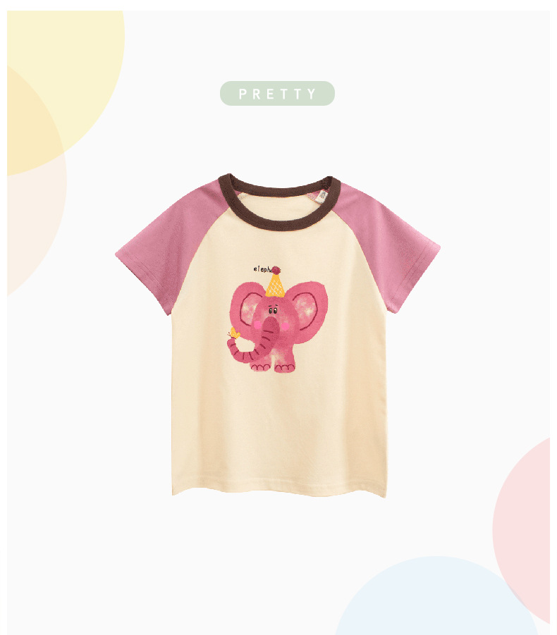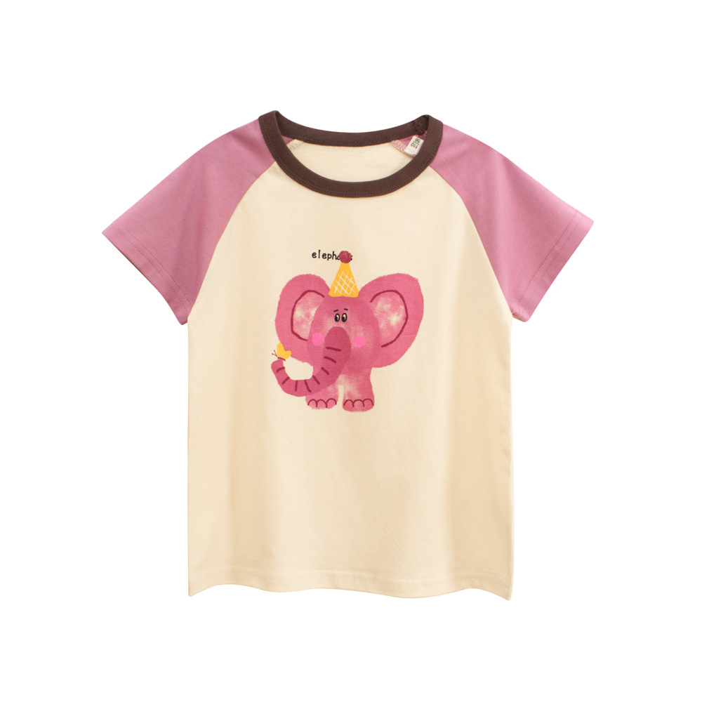 27 홈 어린이 짧은 소매 티셔츠 여름 새 소녀 아기 옷 만화 코끼리 인쇄 탑 도매스토어 가기