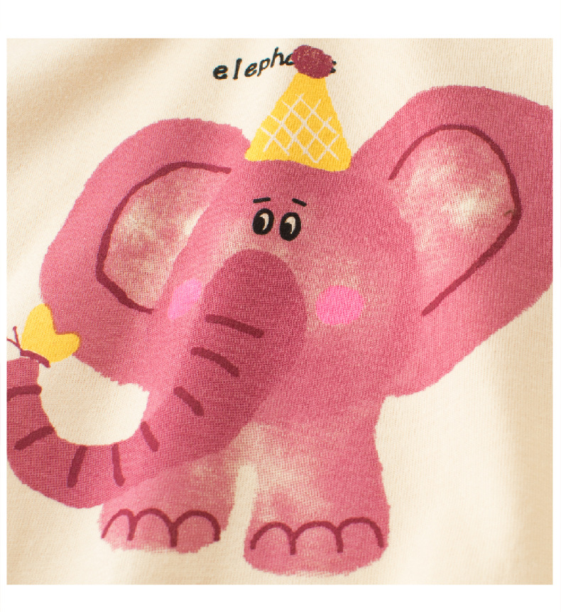 27 홈 어린이 짧은 소매 티셔츠 여름 새 소녀 아기 옷 만화 코끼리 인쇄 탑 도매
