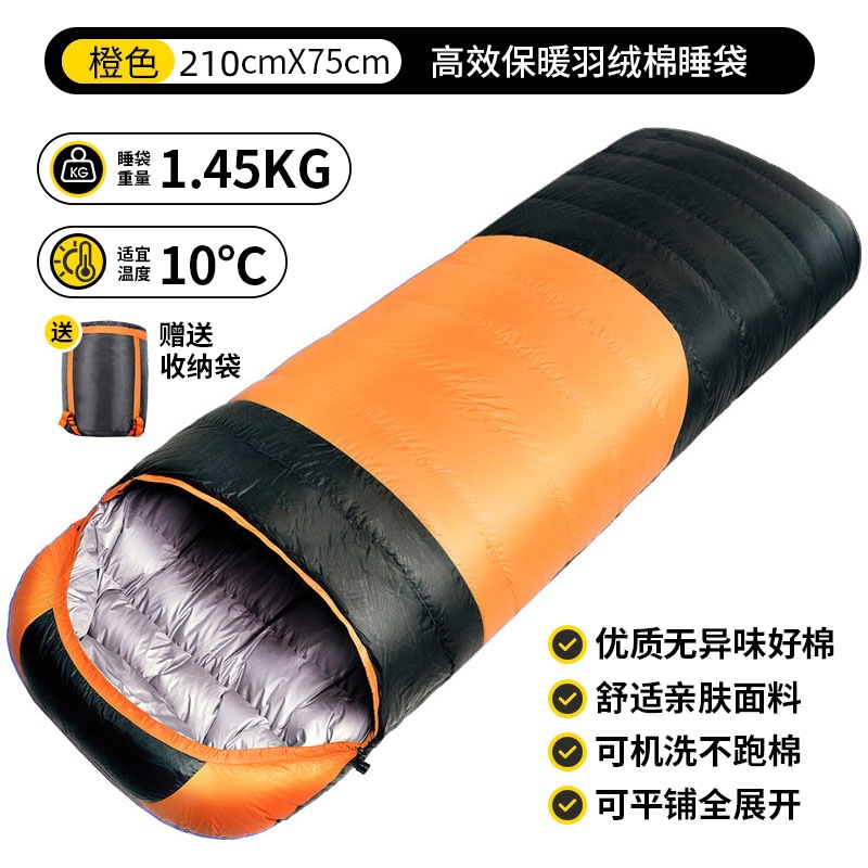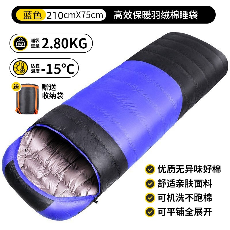 ♔ 다운 코튼 침낭 성인용 침낭 겨울용 두꺼운 보온 침낭 봉투형 접합 가능 여행용 사이클링 침낭