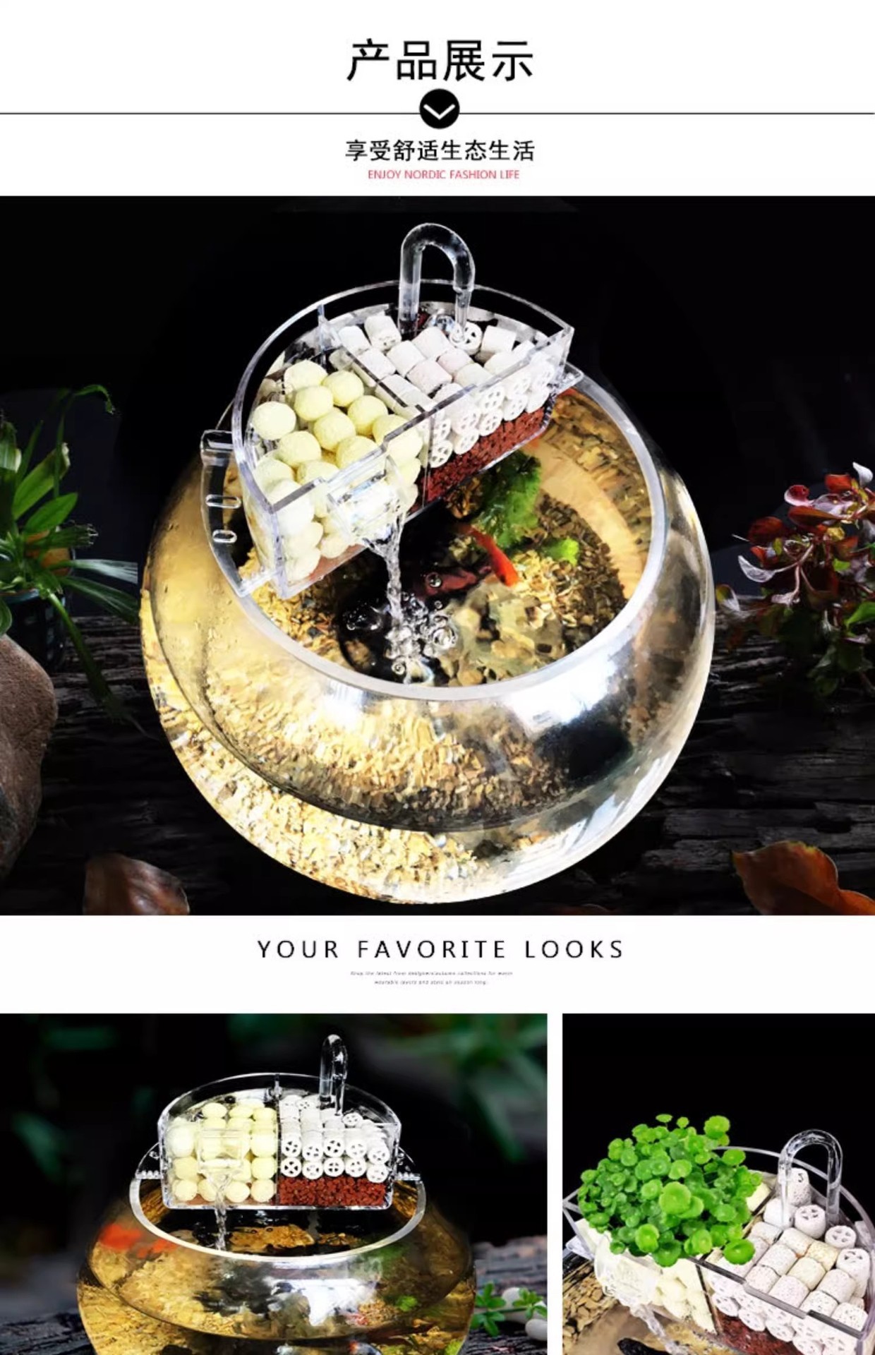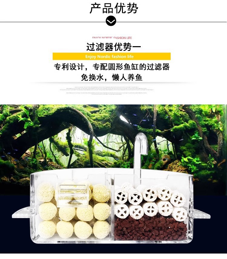 둥근 유리 어항 필터 산소 3 대 1 작은 필터 상자 세라믹 탱크 드립 박스 폭포 음소거 그물스토어 가기