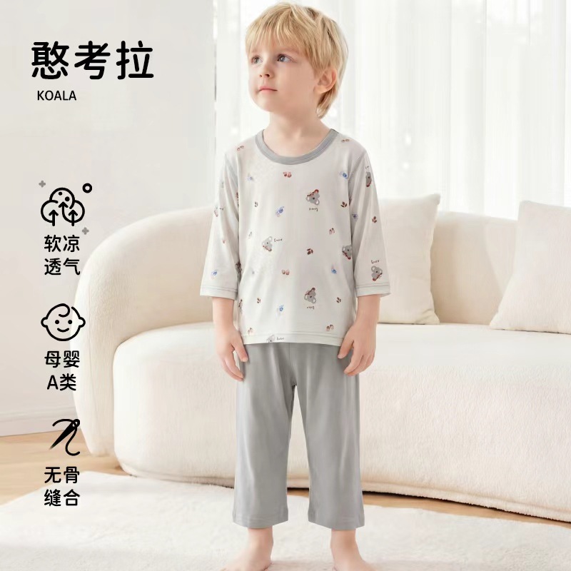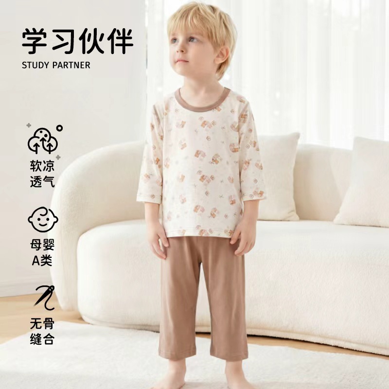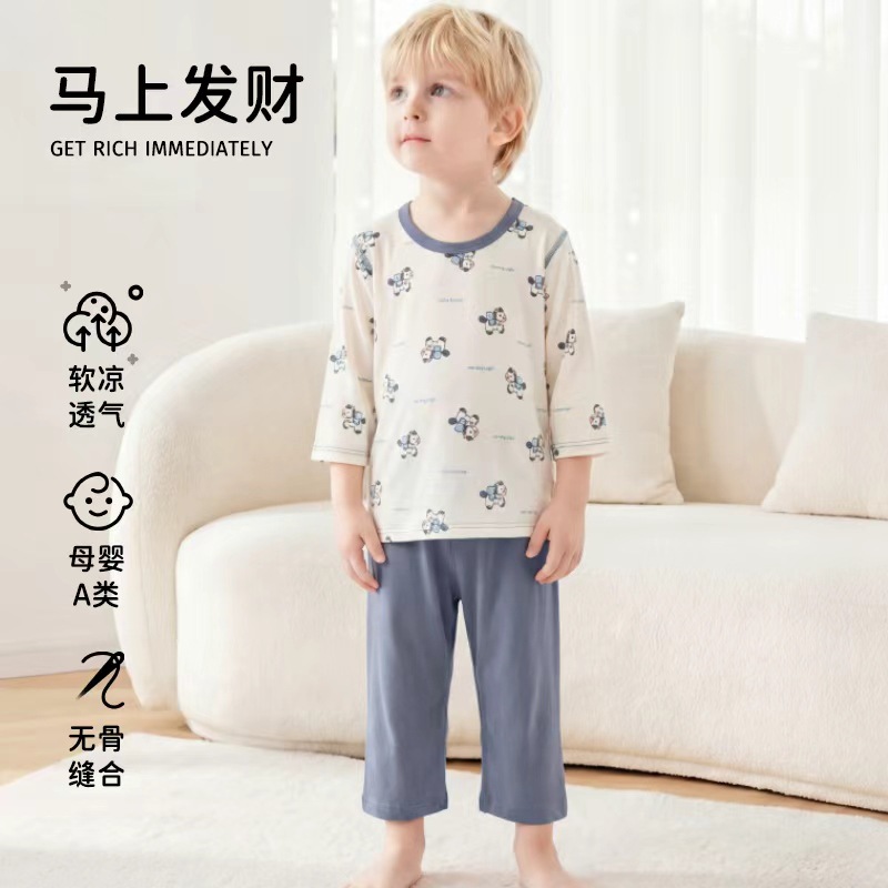 2026년 아동용 여름 잠옷, 남아 여아용 얇은 7부 에어컨 의류, 가정복 세트, 어린이 및 중년 아동용스토어 가기