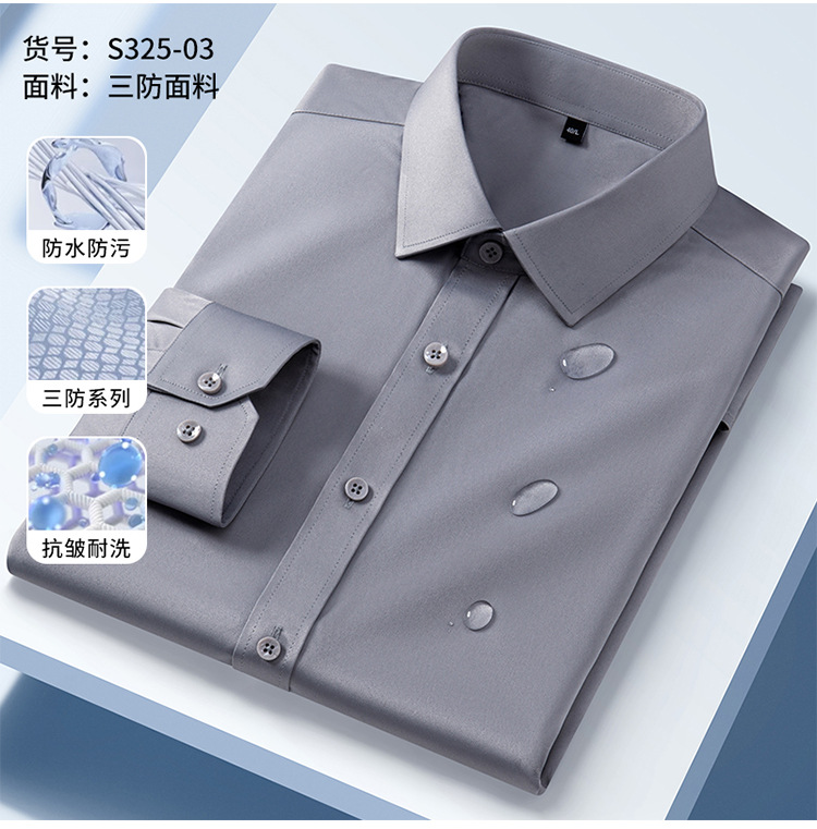 봄 2025 남자 회색 스트레치 긴팔 셔츠 청소년 비즈니스 전문가 원피스 다림질 슬라이딩 3 방형 셔츠