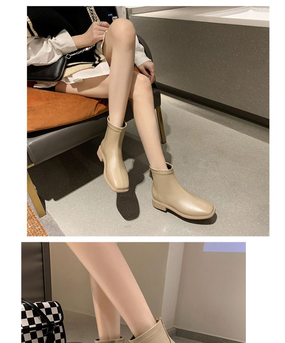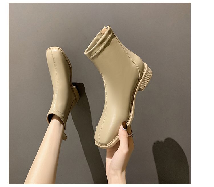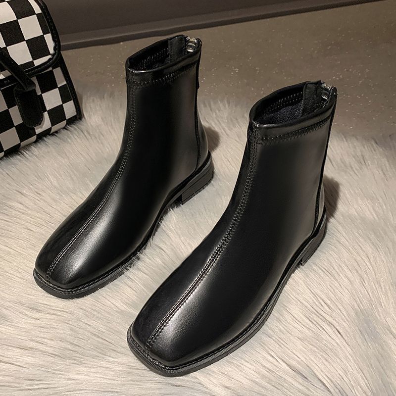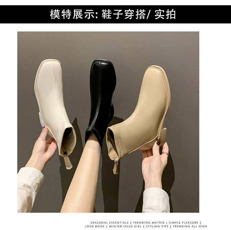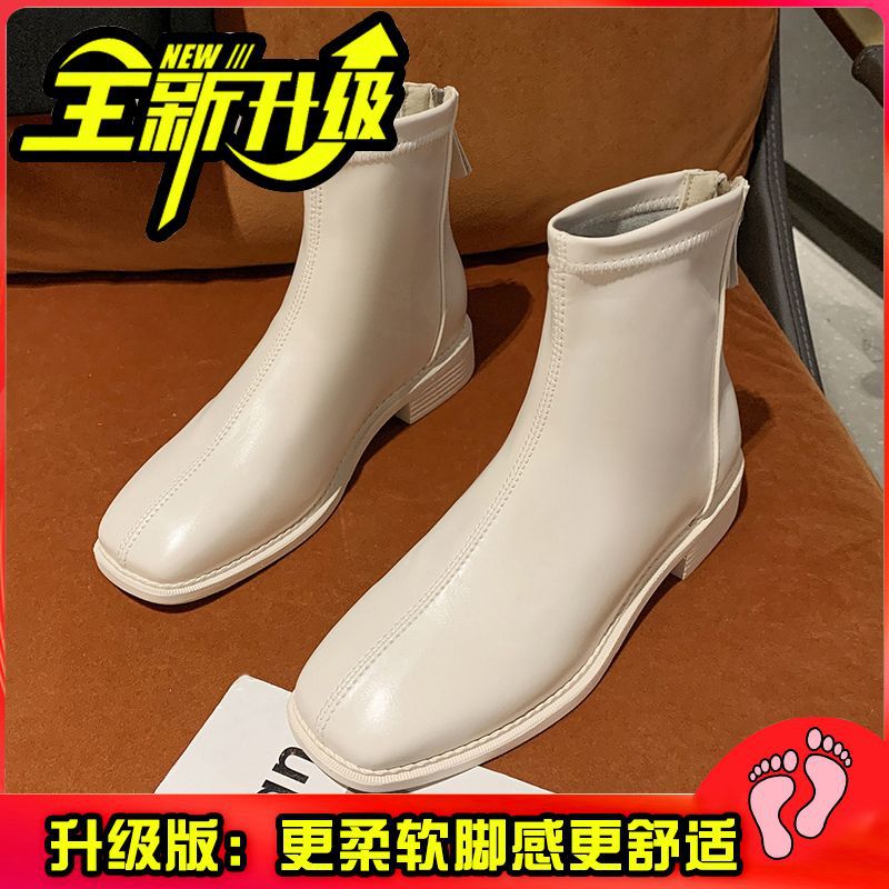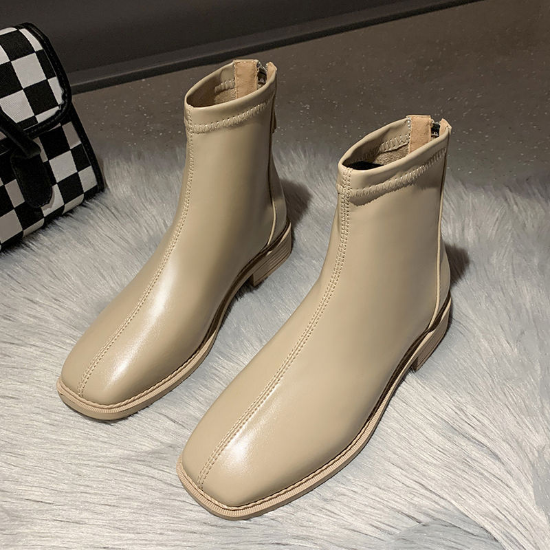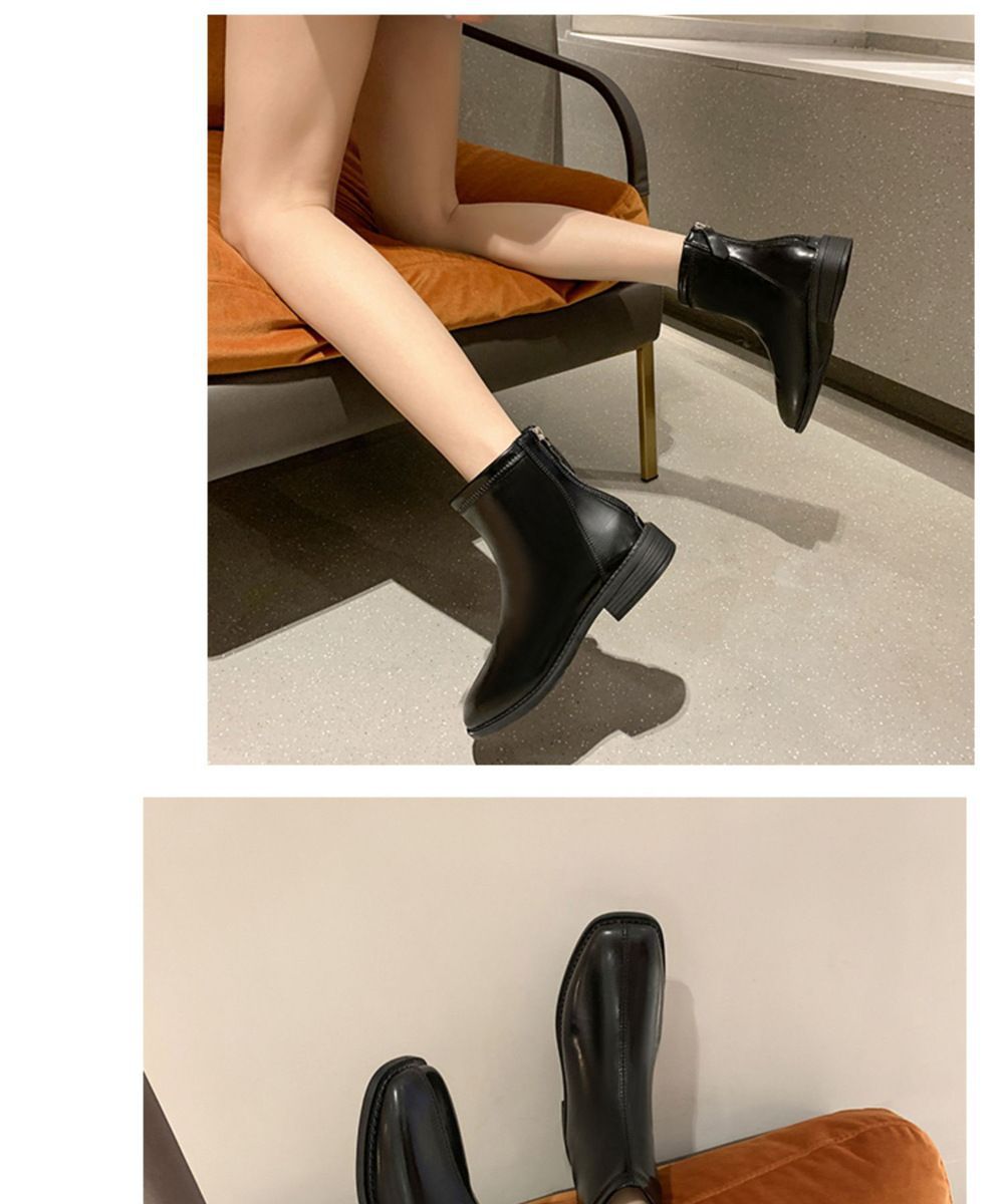 플랫 발목 부츠 여성 신발 2022 가을 및 겨울 새로운 도착 리어 지퍼 마틴 부츠 유행 올 매치 얇은 부츠 첼시 부츠