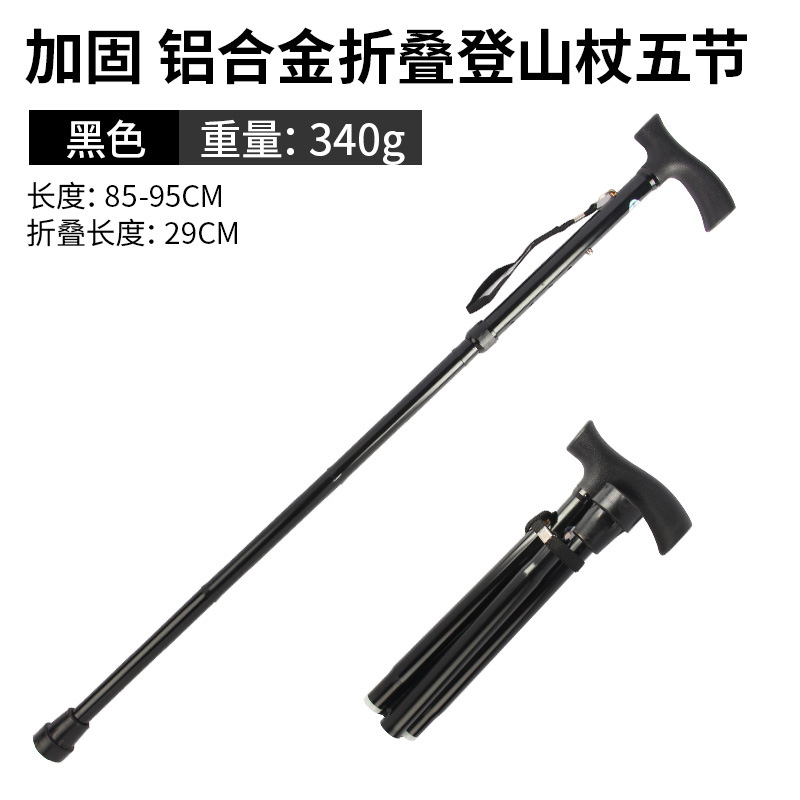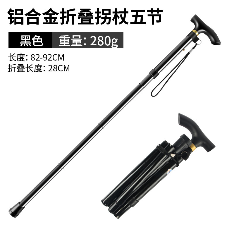 • 알루미늄 합금 접이식 목발 5개 섹션 검정색