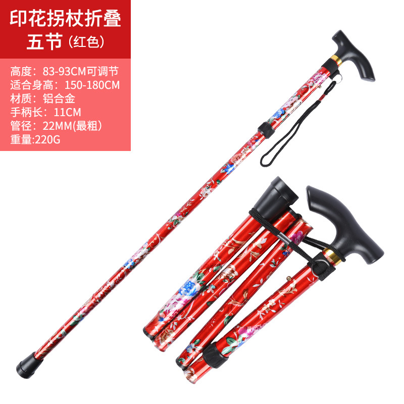 • 알루미늄 합금 인쇄 목발 접이식 5개 섹션 빨간색
