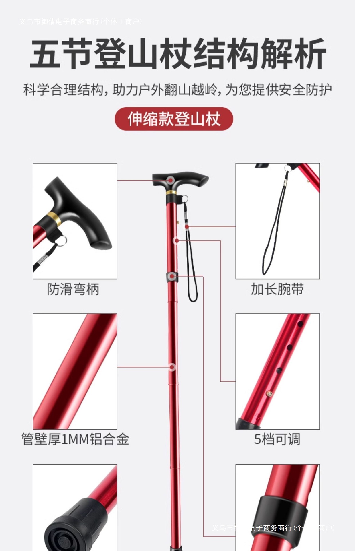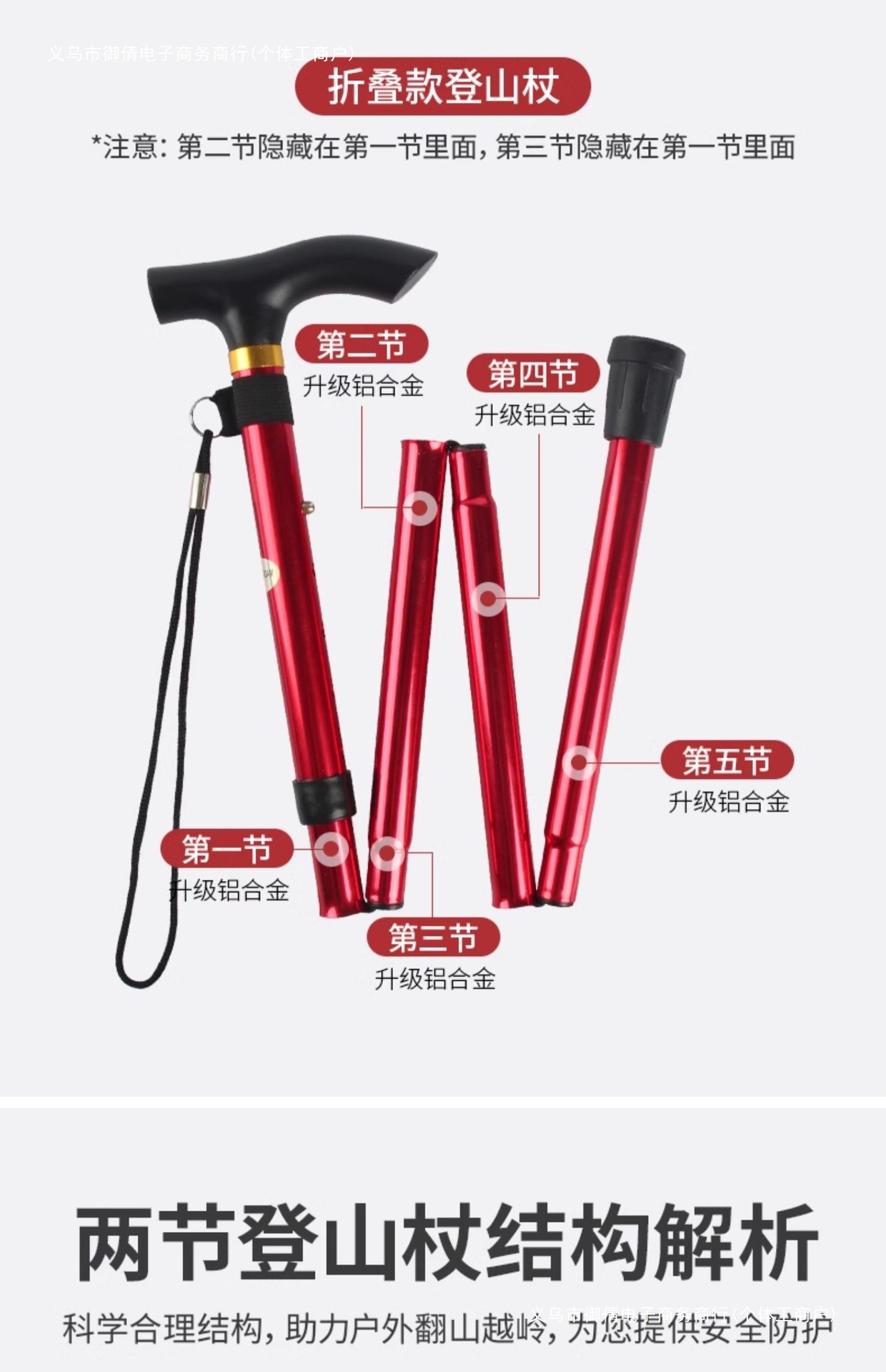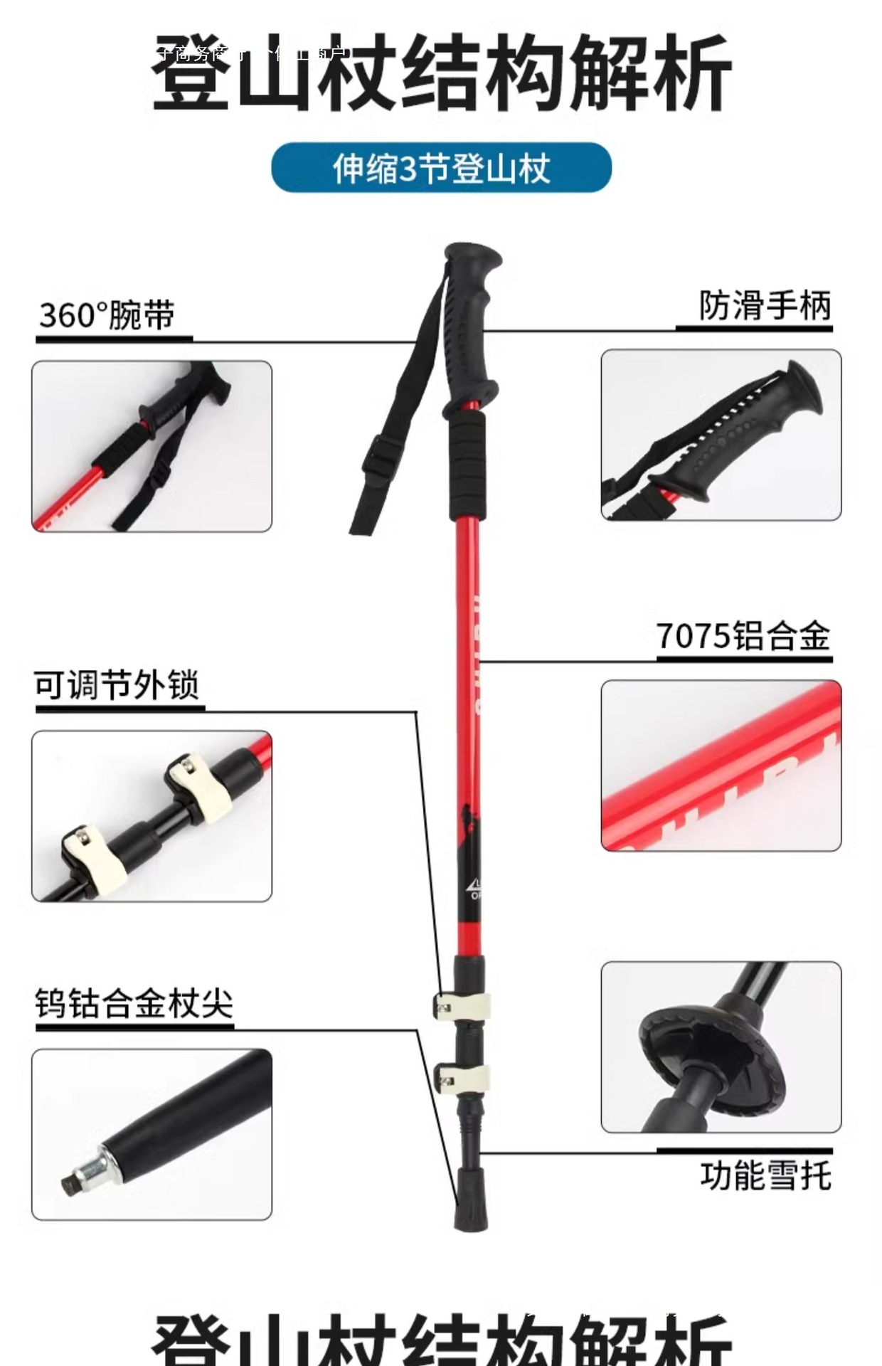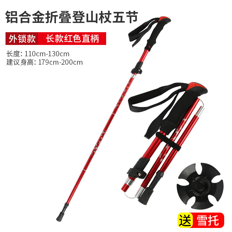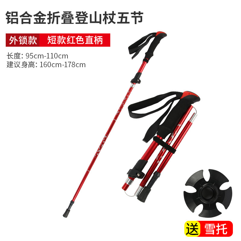 • 짧은 알루미늄 합금 접이식 트레킹 폴 빨간색 직선 핸들