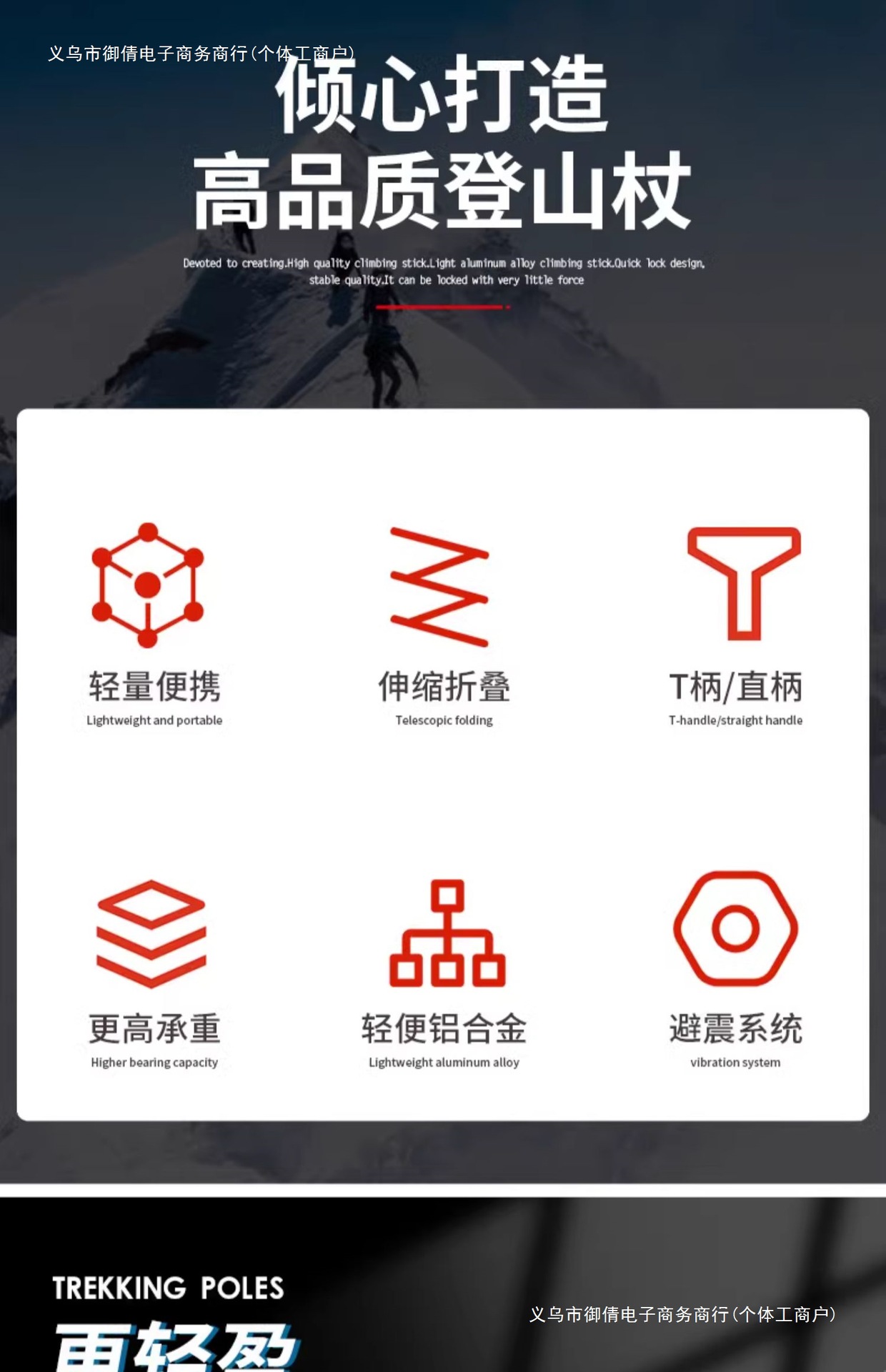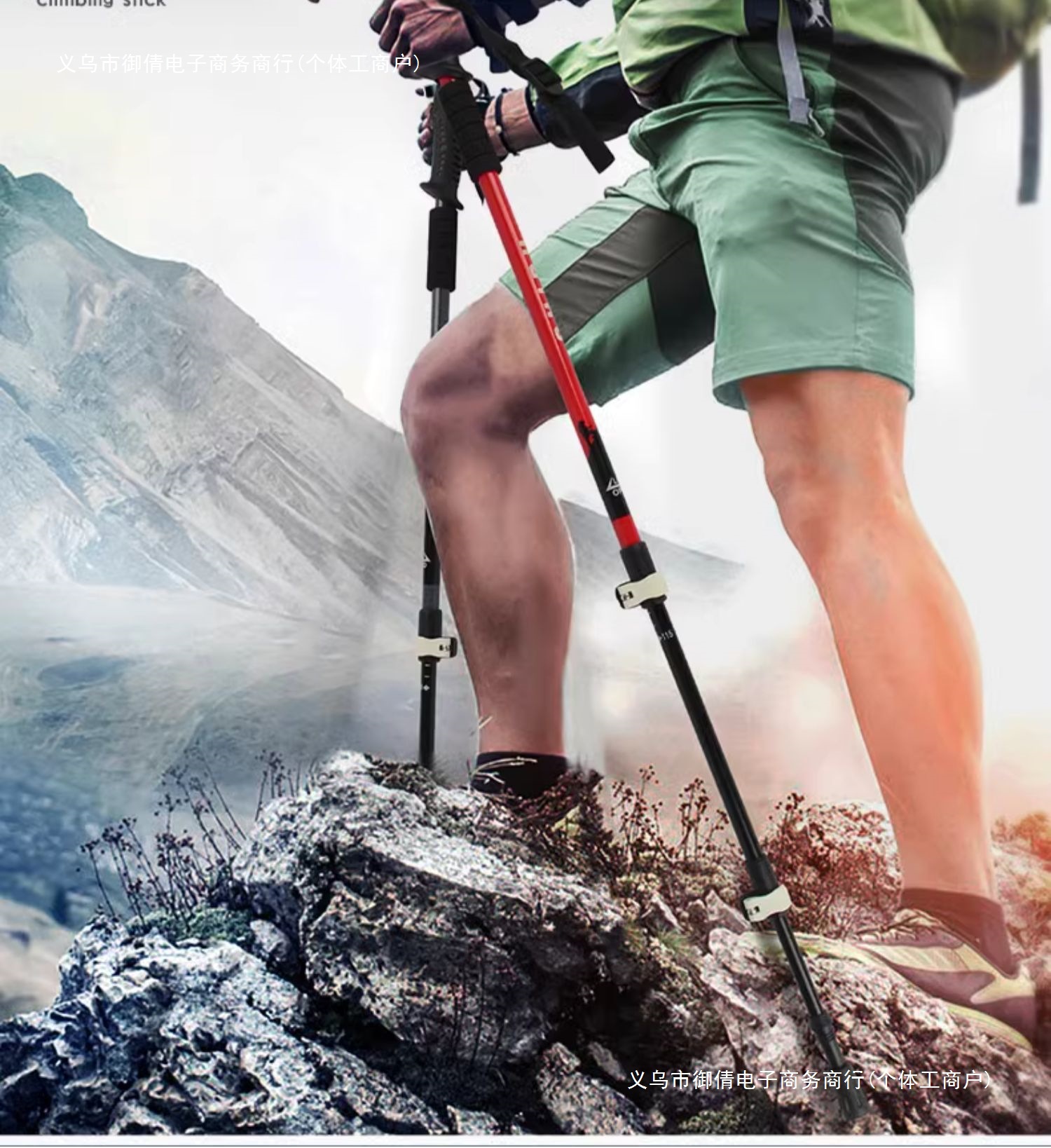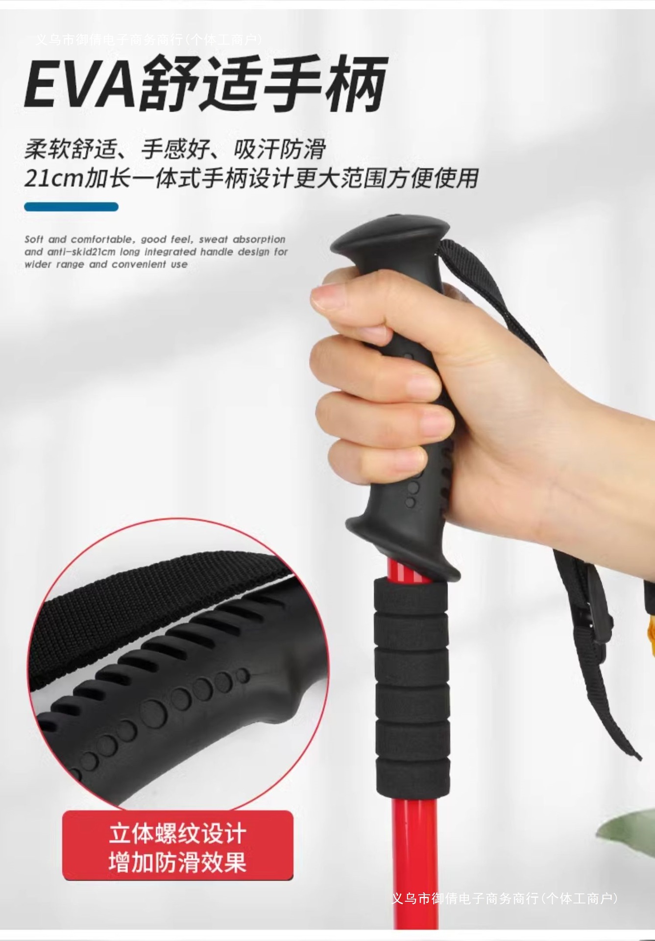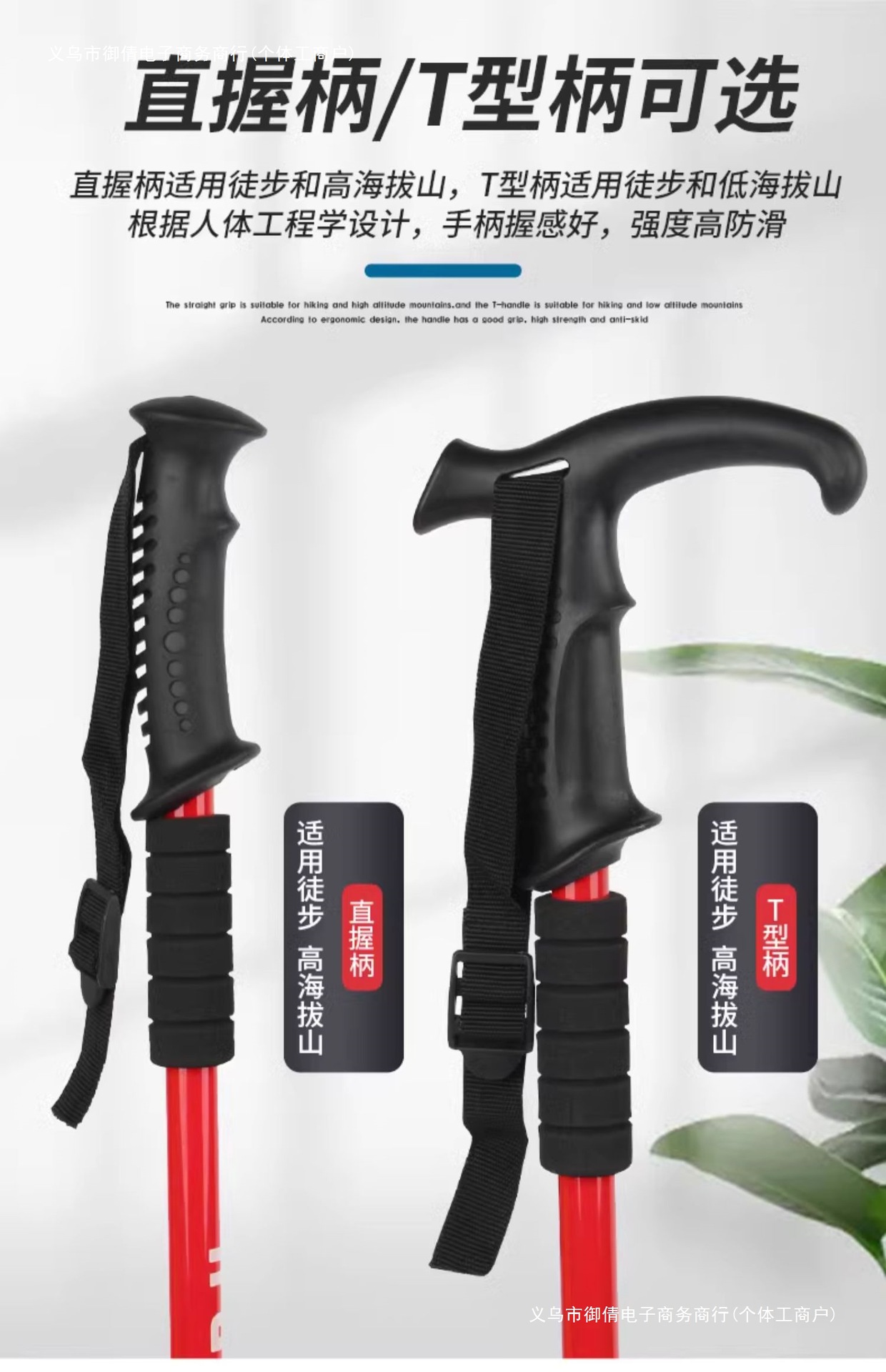 • 짧은 알루미늄 합금 접이식 트레킹 폴 빨간색 직선 핸들