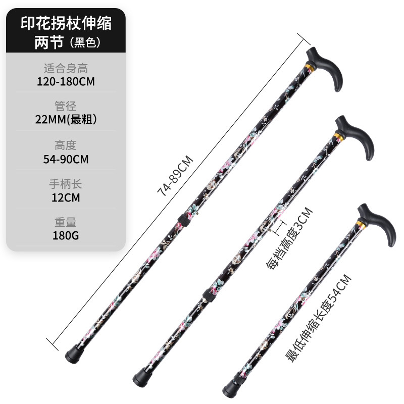 • 알루미늄 합금 인쇄 목발 텔레스코픽 2섹션 검정색