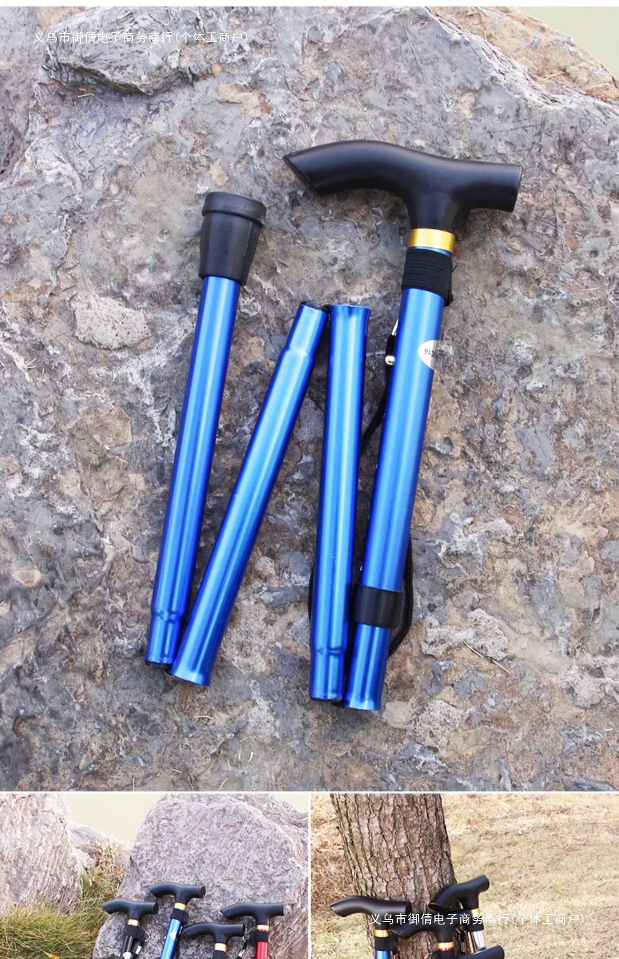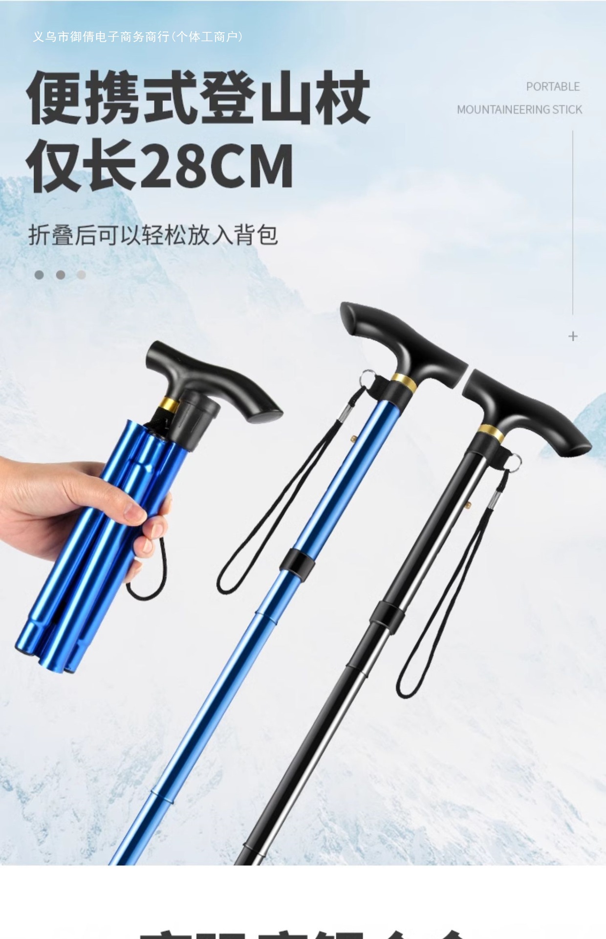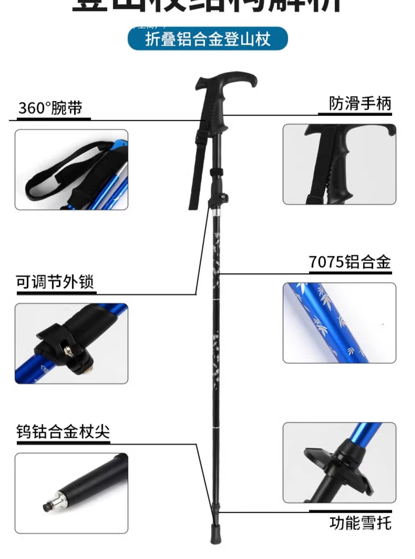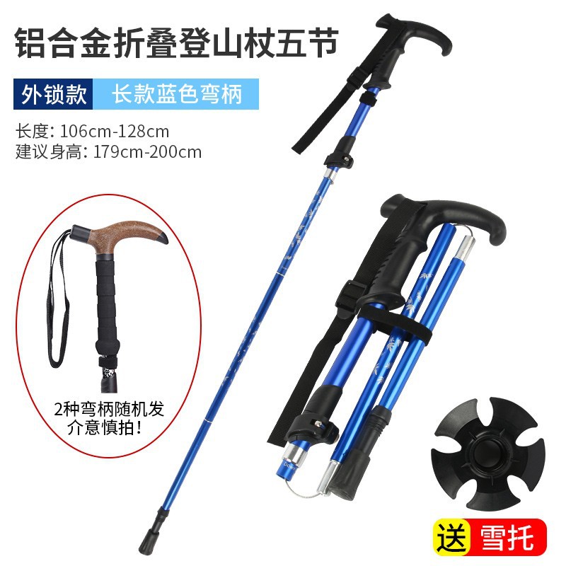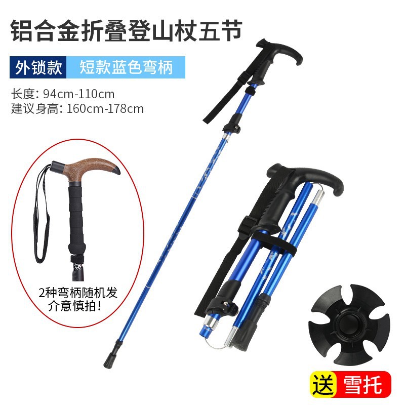 • 짧은 알루미늄 합금 접이식 트레킹 폴 파란색 직선 핸들