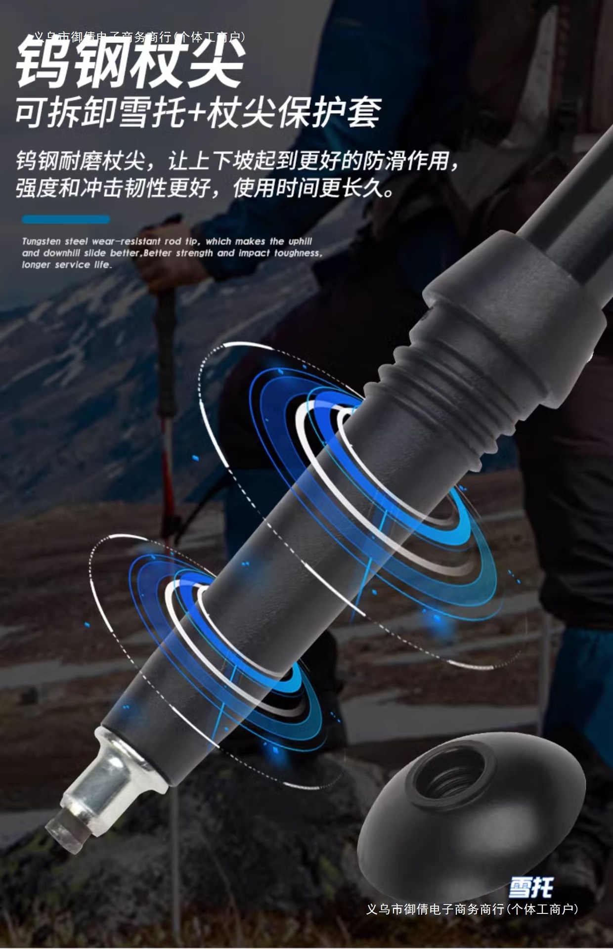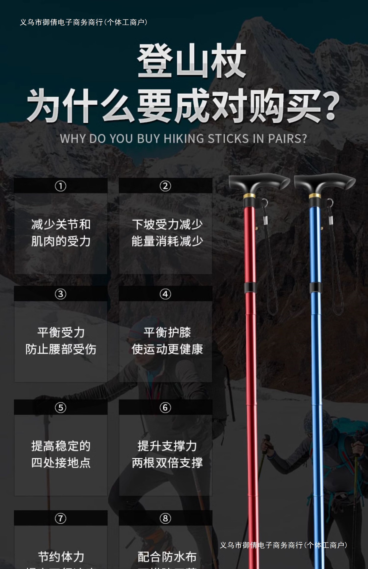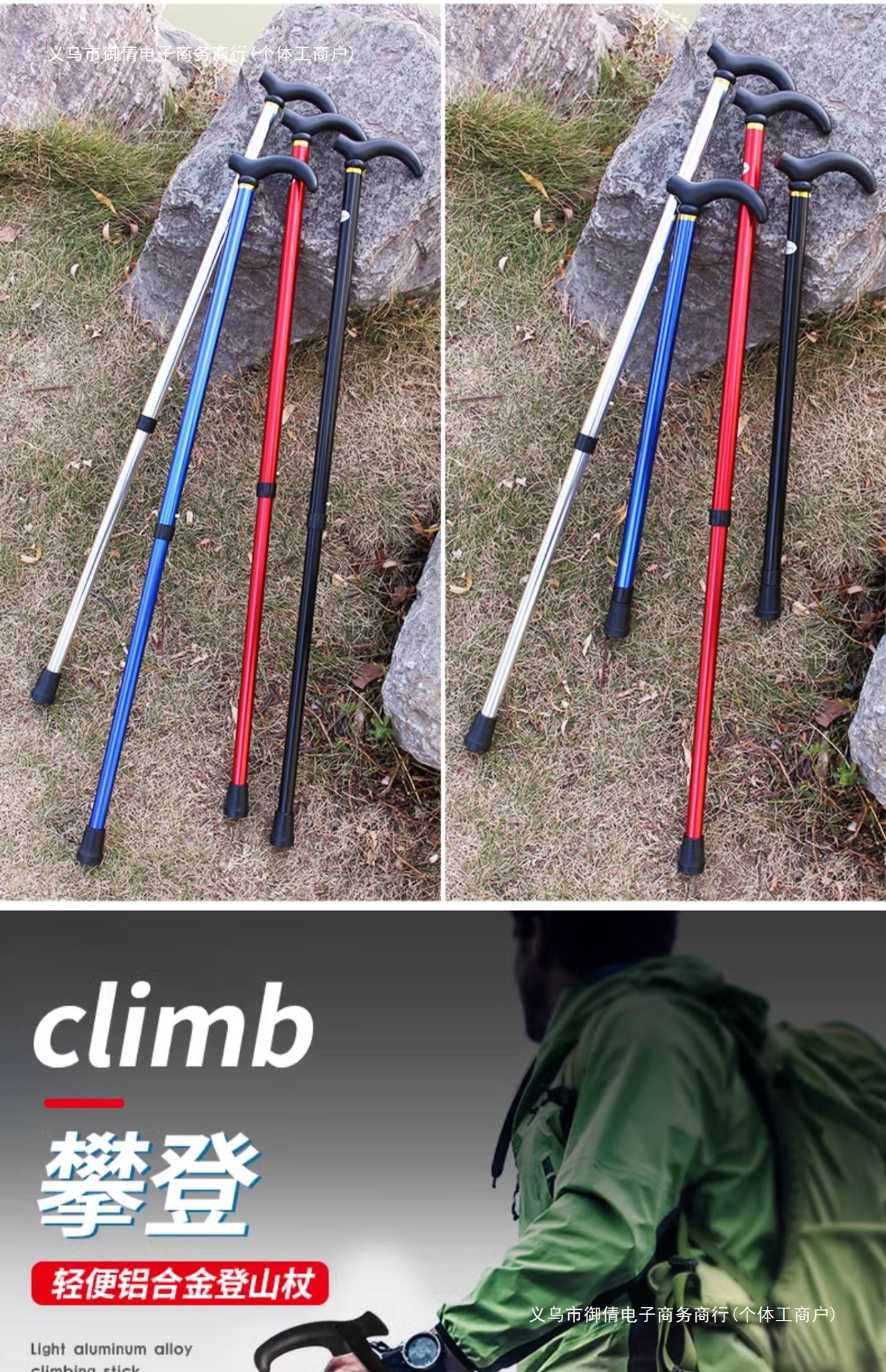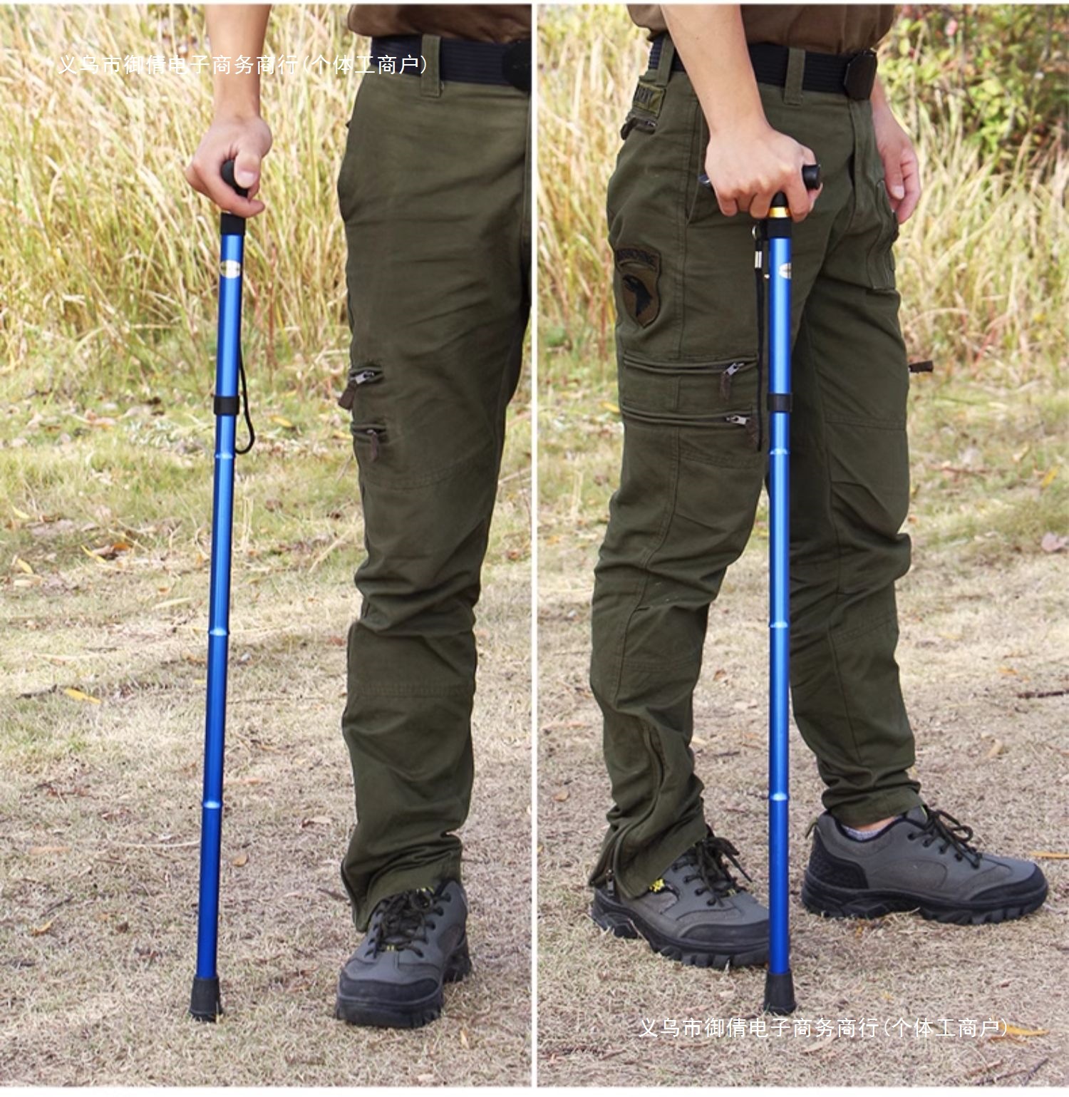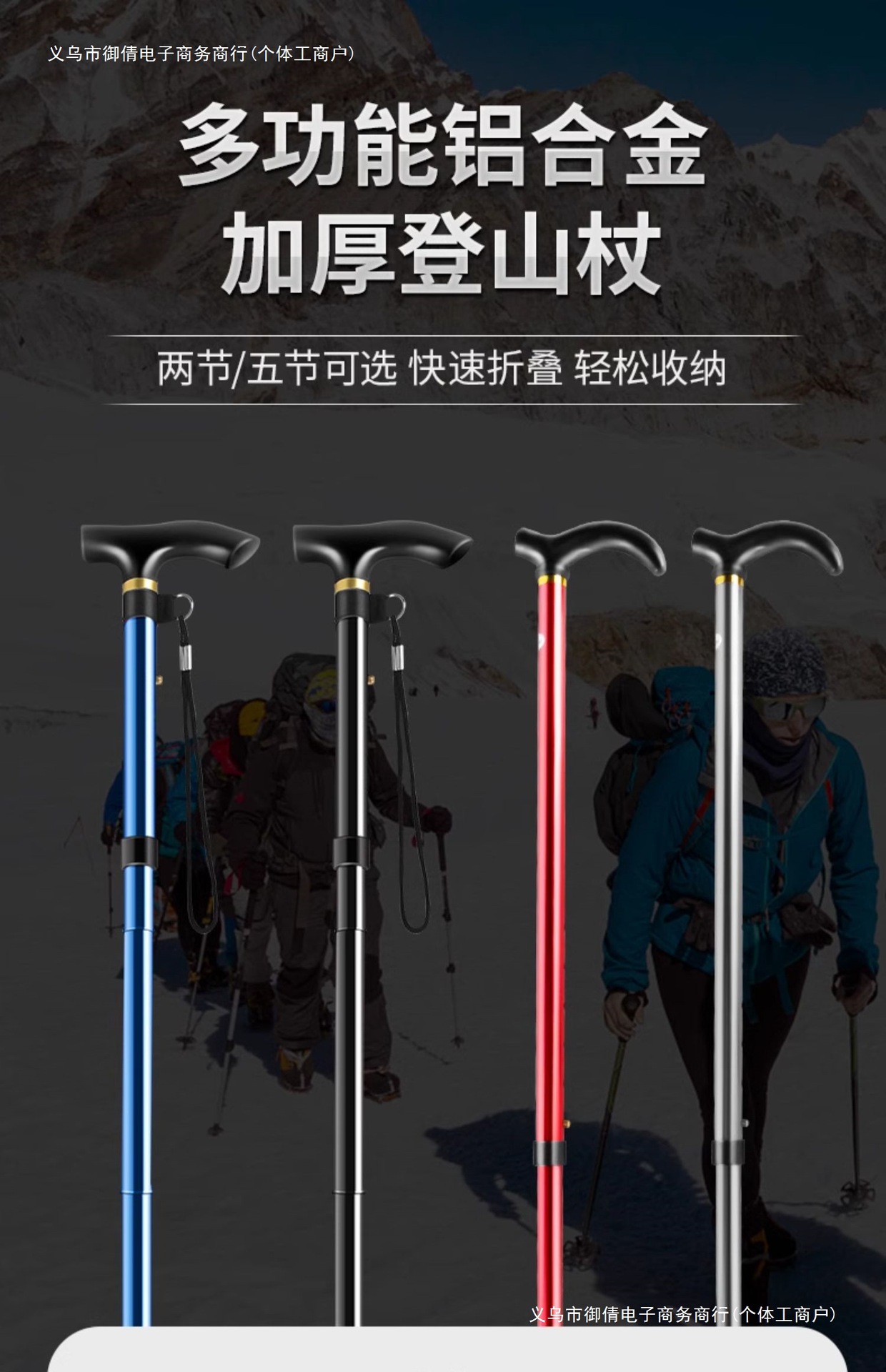• 짧은 알루미늄 합금 접이식 트레킹 폴 파란색 직선 핸들