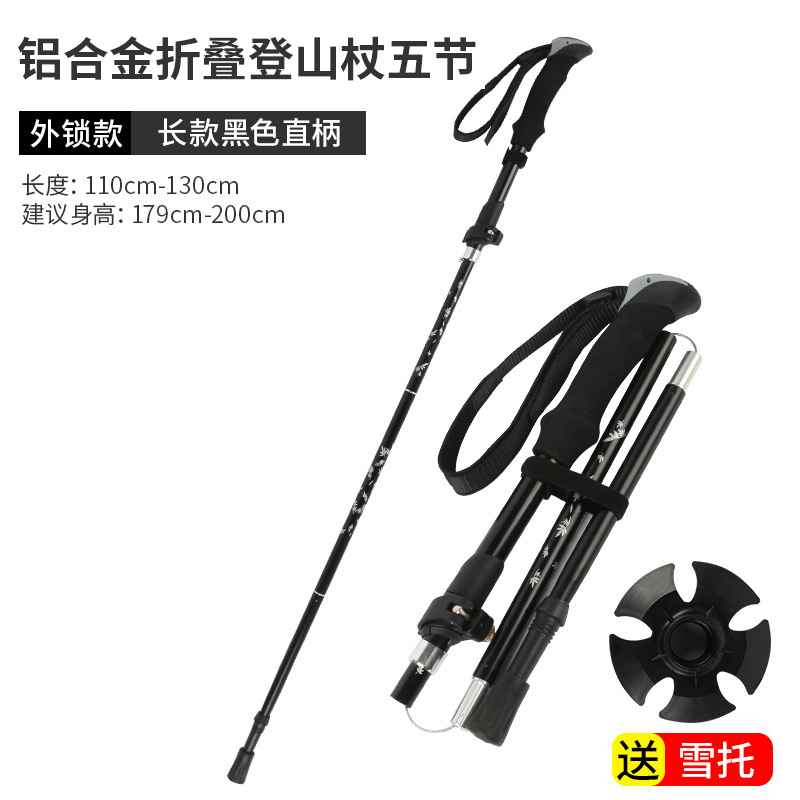 • 긴 알루미늄 합금 접이식 트레킹 폴 검정색 직선 핸들