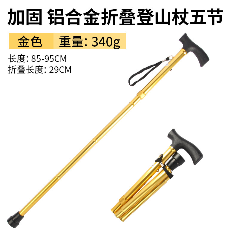 • 강화된 알루미늄 합금 접이식 하이킹 폴, 5개 섹션, 골드