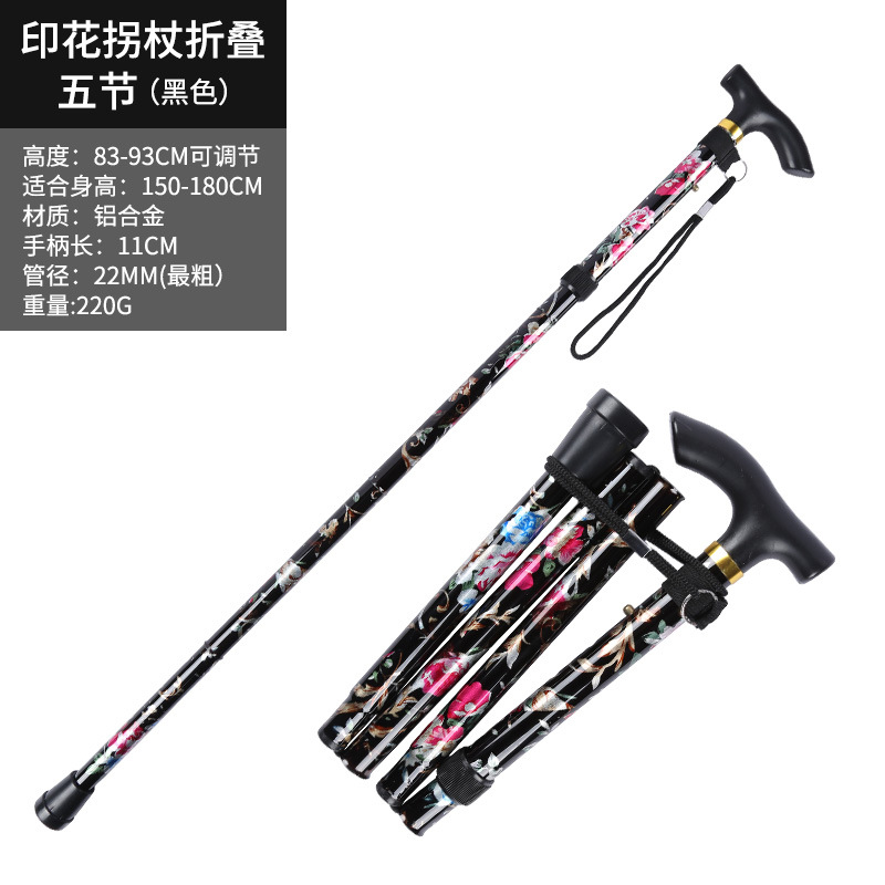 • 알루미늄 합금 인쇄 목발 접이식 5개 섹션 검정색