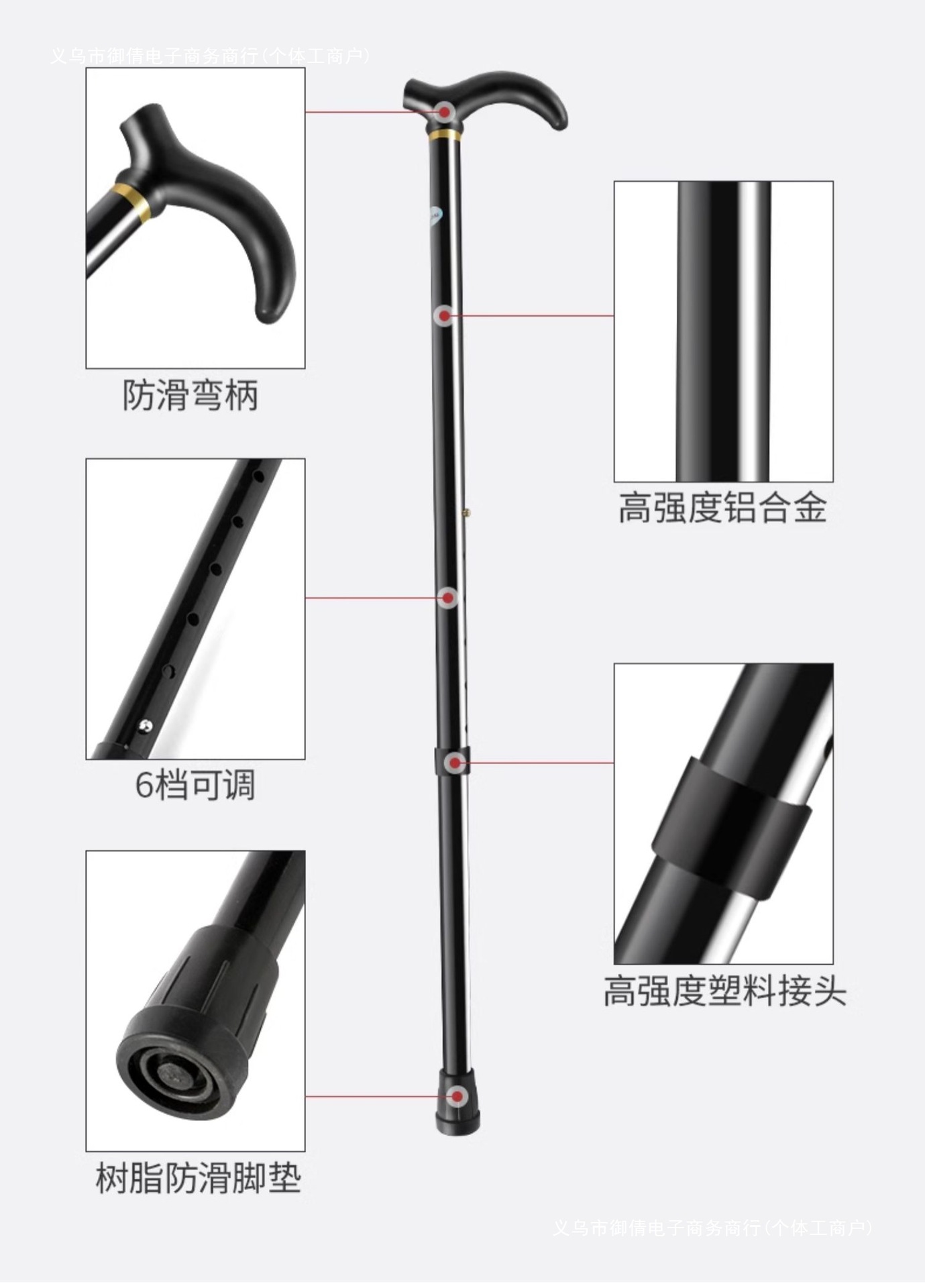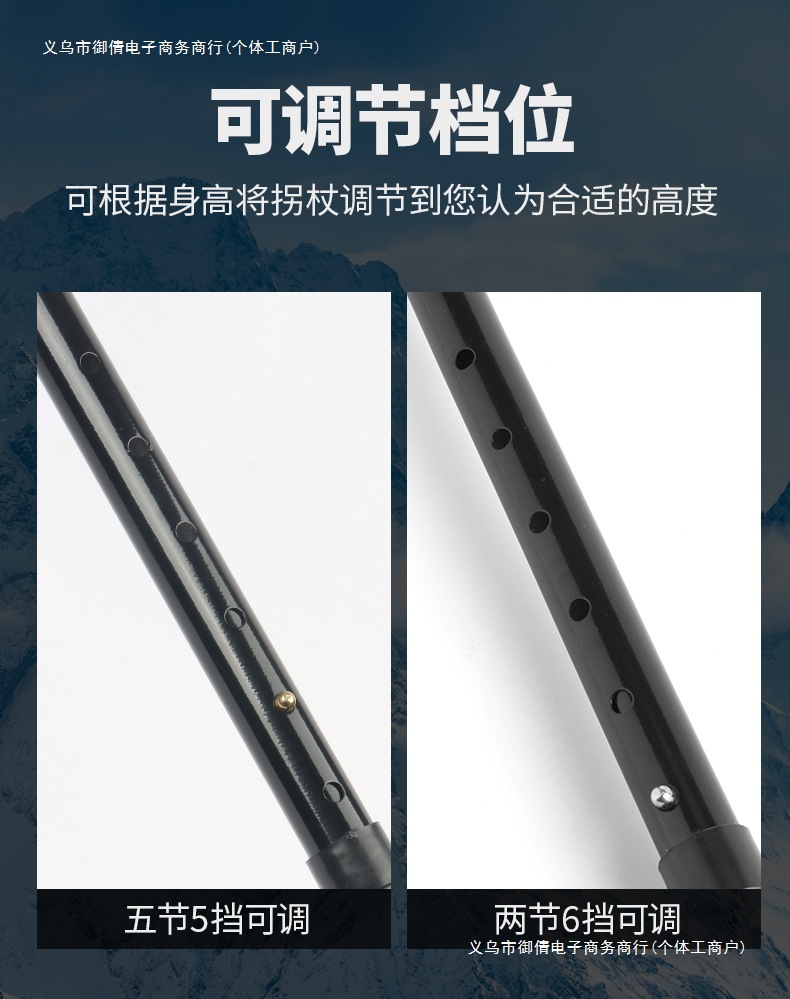 • 강화된 2섹션 텔레스코픽 목발 검정색