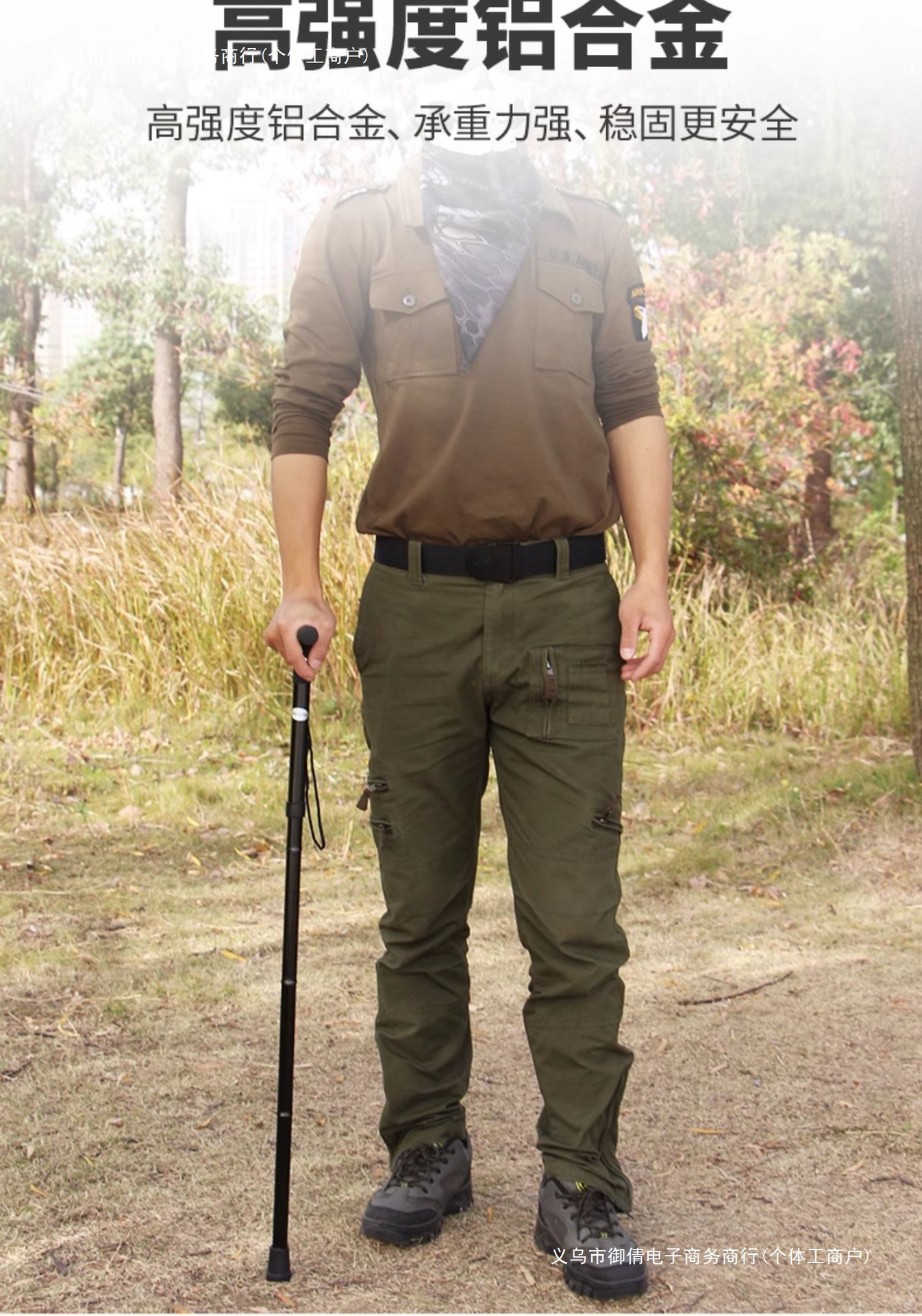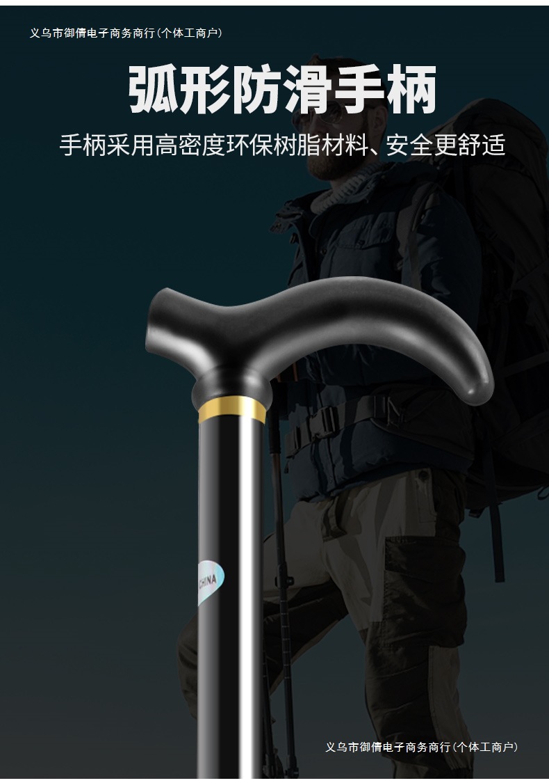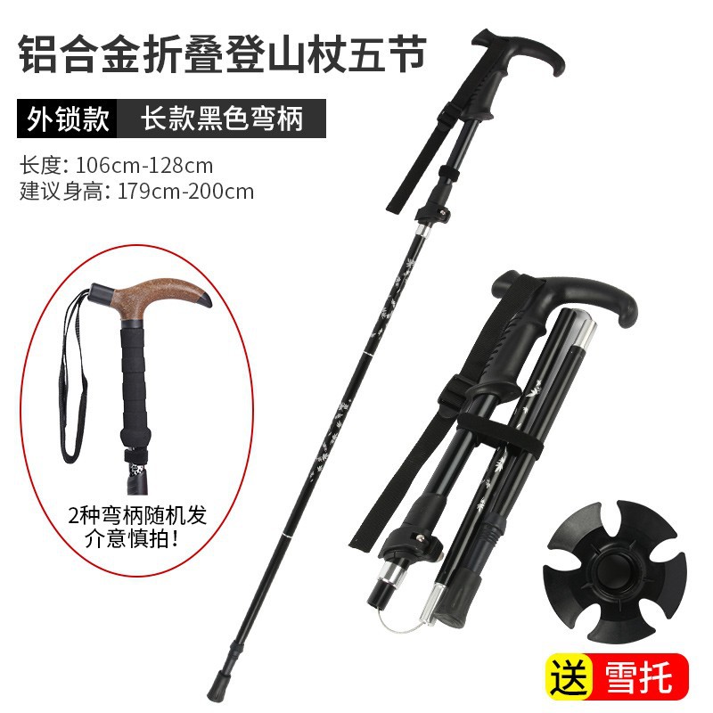 • 곡선형 손잡이가 있는 긴 알루미늄 합금 접이식 하이킹 폴 검정색