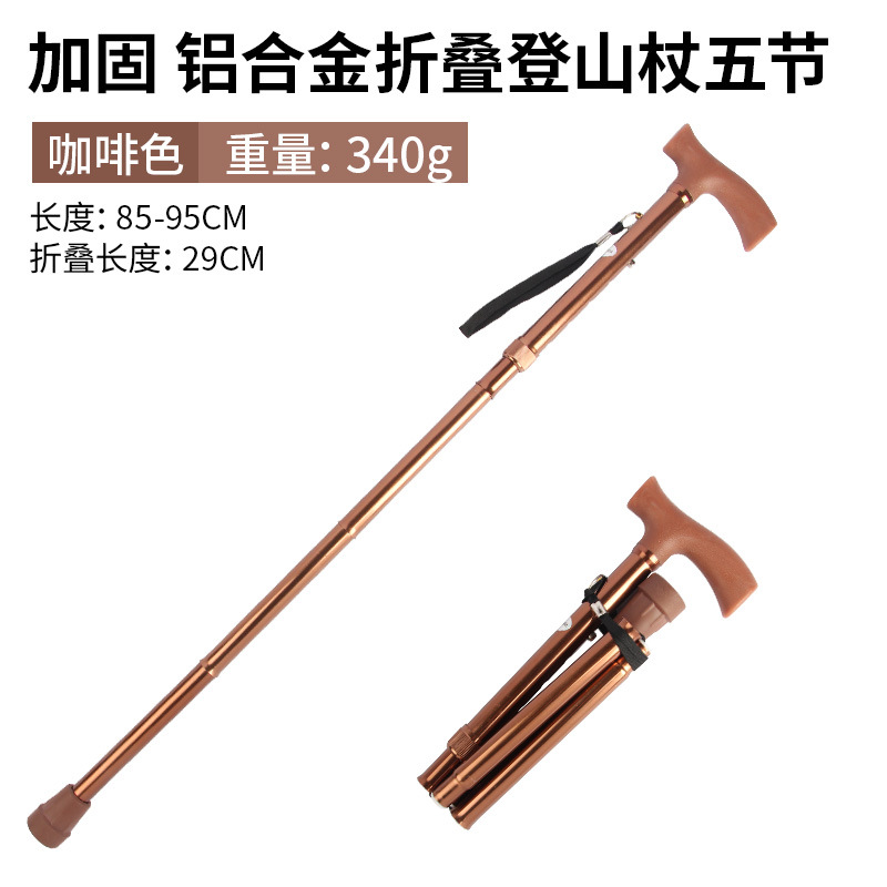 • 강화된 알루미늄 합금 접이식 하이킹 폴, 5개 섹션, 갈색