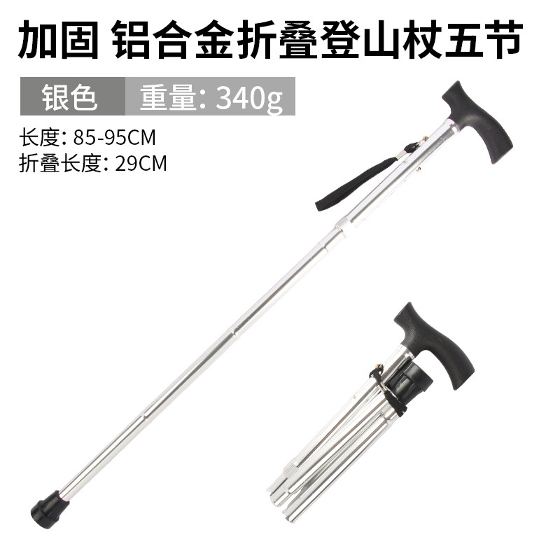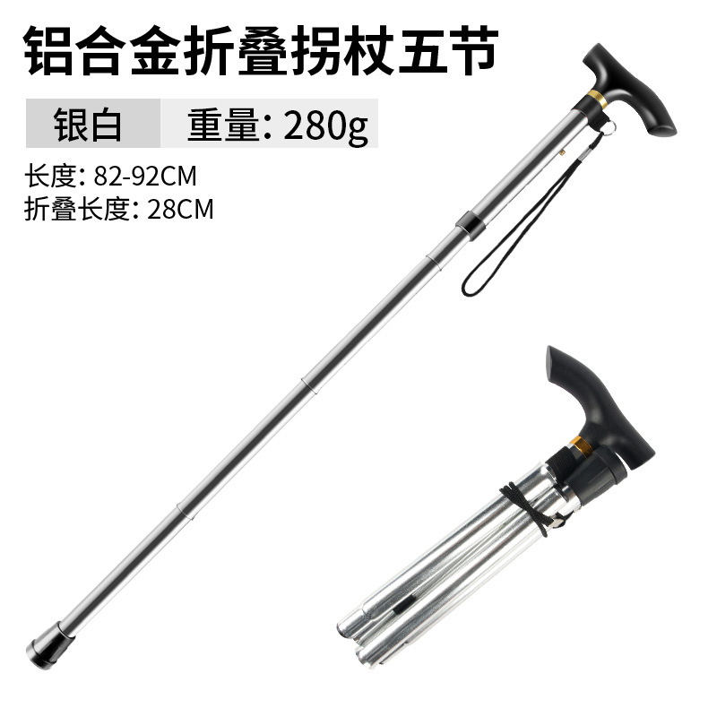 • 알루미늄 합금 접이식 목발 5개 섹션 실버