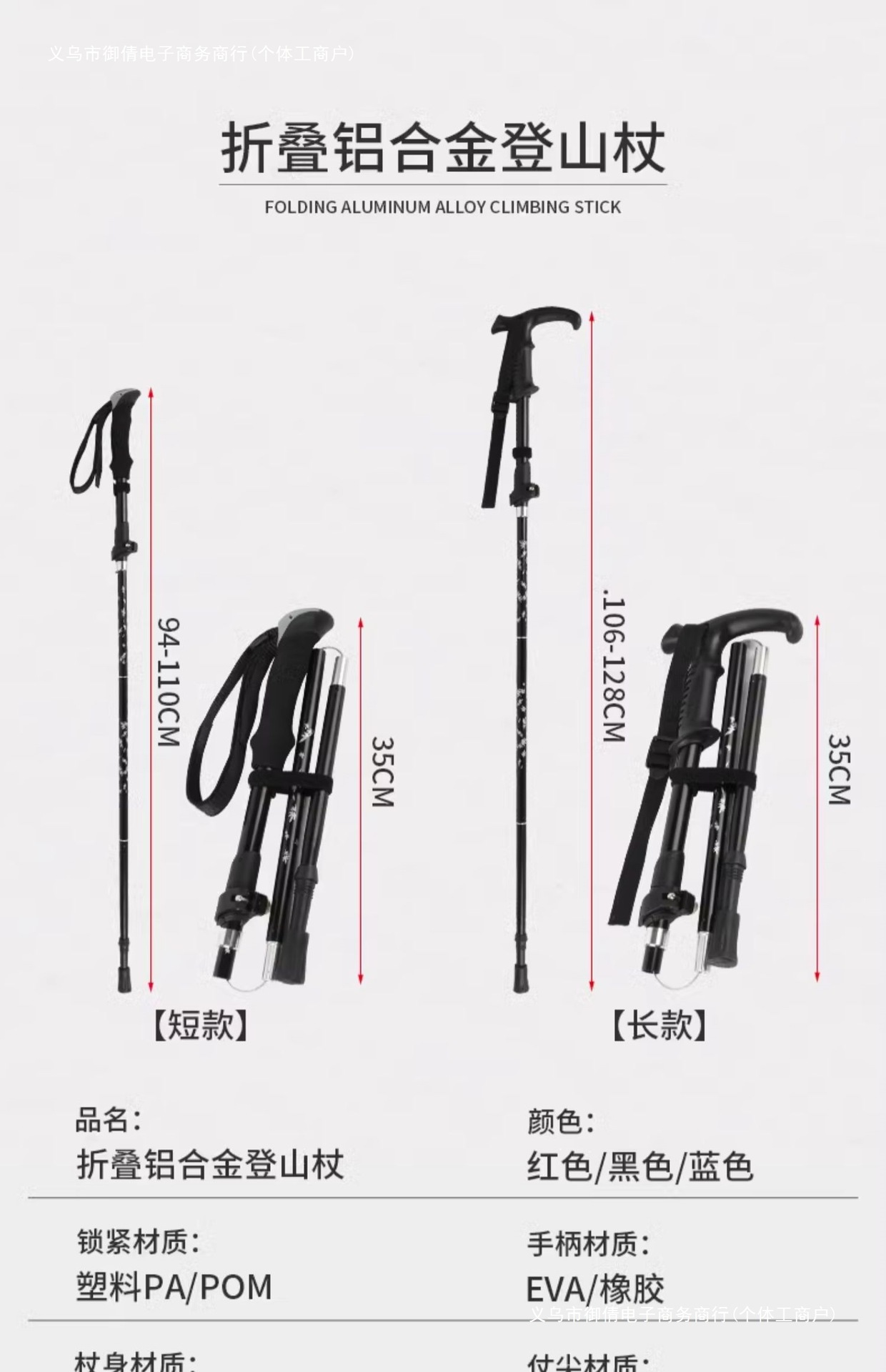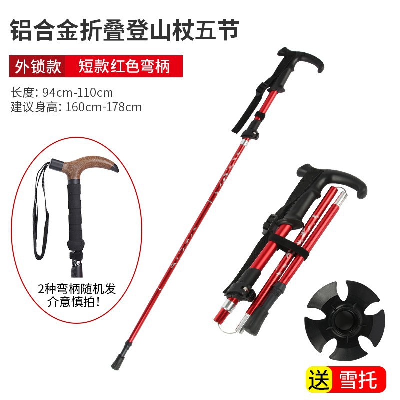 • 빨간색 곡선 손잡이가 있는 짧은 알루미늄 합금 접이식 하이킹 폴