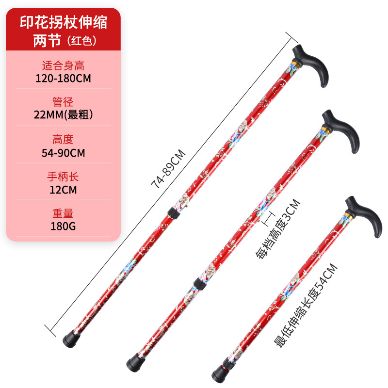 • 알루미늄 합금 인쇄 목발 텔레스코픽 2섹션 빨간색