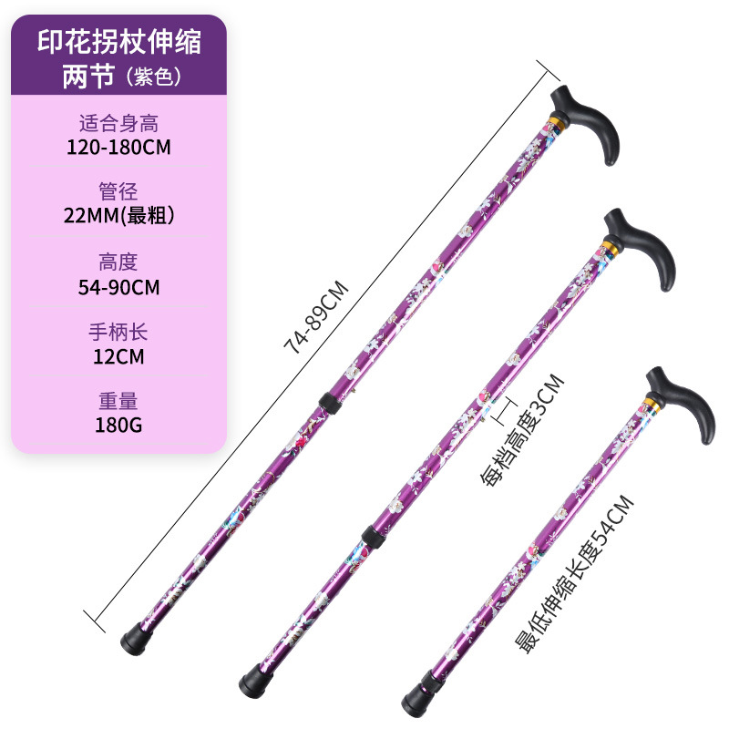 • 알루미늄 합금 인쇄 목발 텔레스코픽 2섹션 보라색