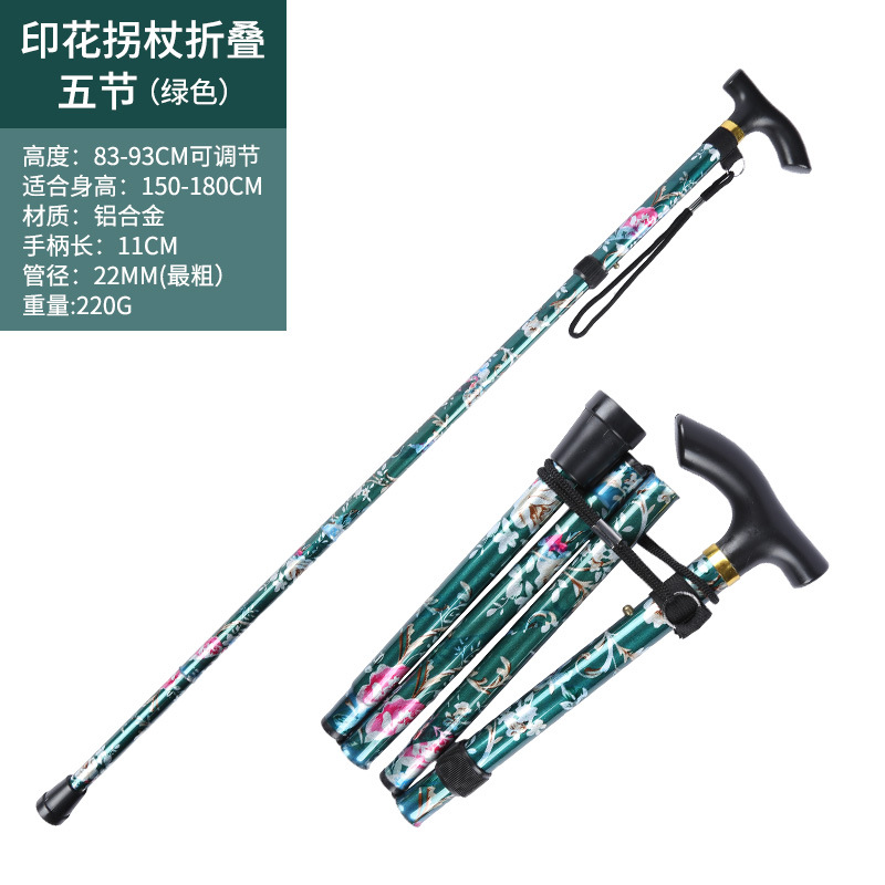 • 알루미늄 합금 인쇄 목발 접이식 5개 섹션 녹색