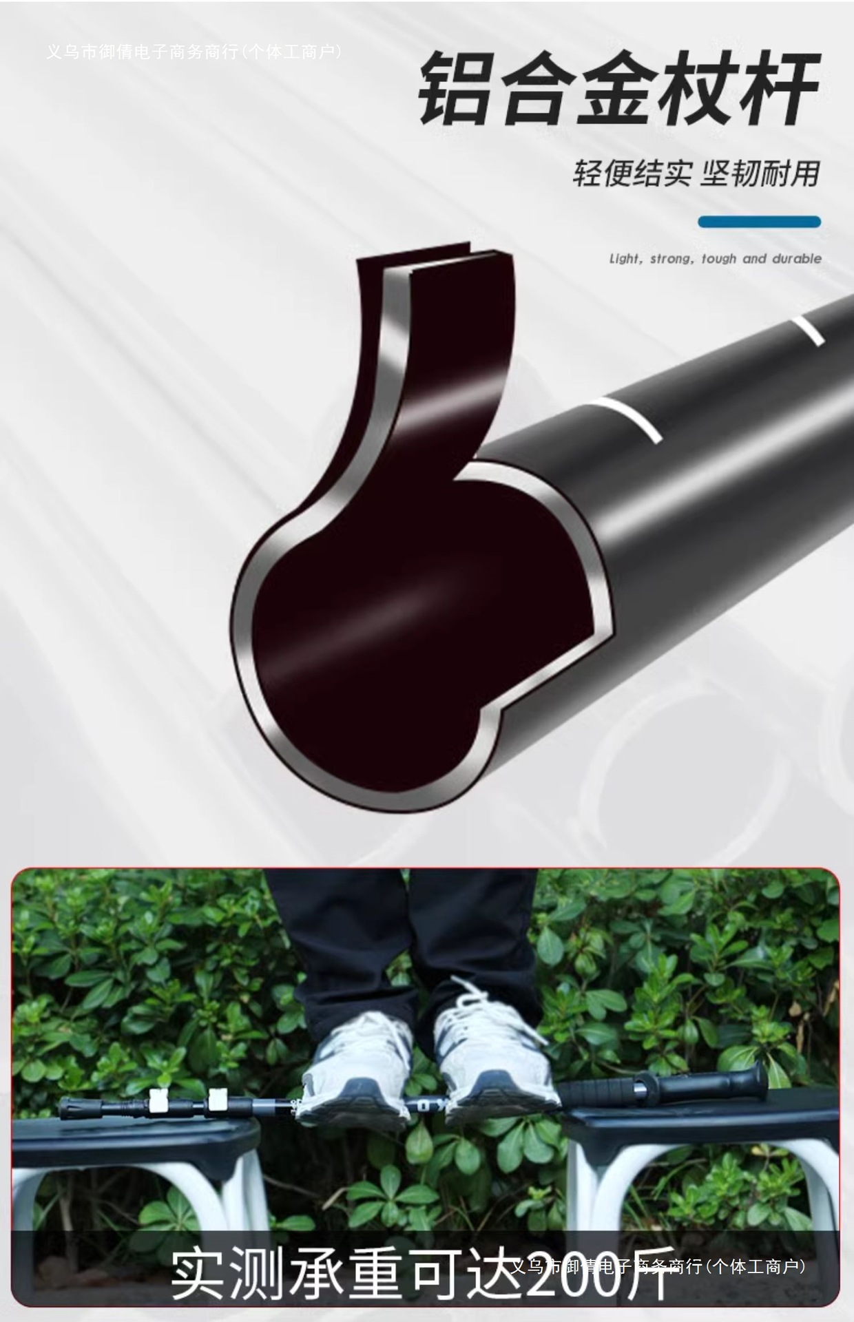 • 짧은 알루미늄 합금 접이식 트레킹 폴 검정색 직선 핸들