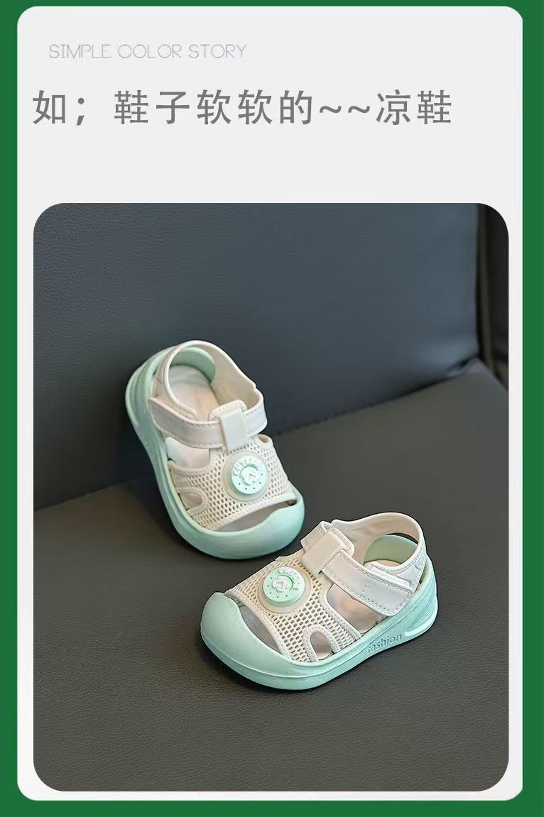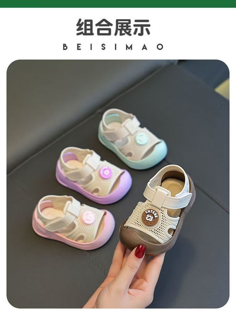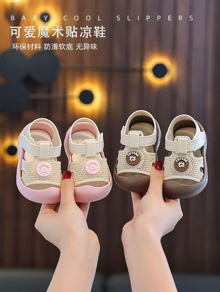 2025 아기 유아 신발 어린이 귀여운 발가락 충돌 방지 미끄럼 방지 유행 소프트 솔 벨크로 샌들스토어 가기