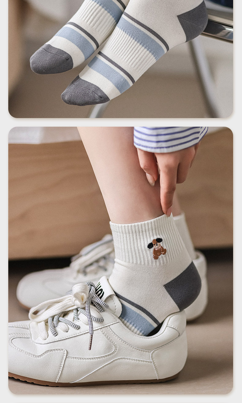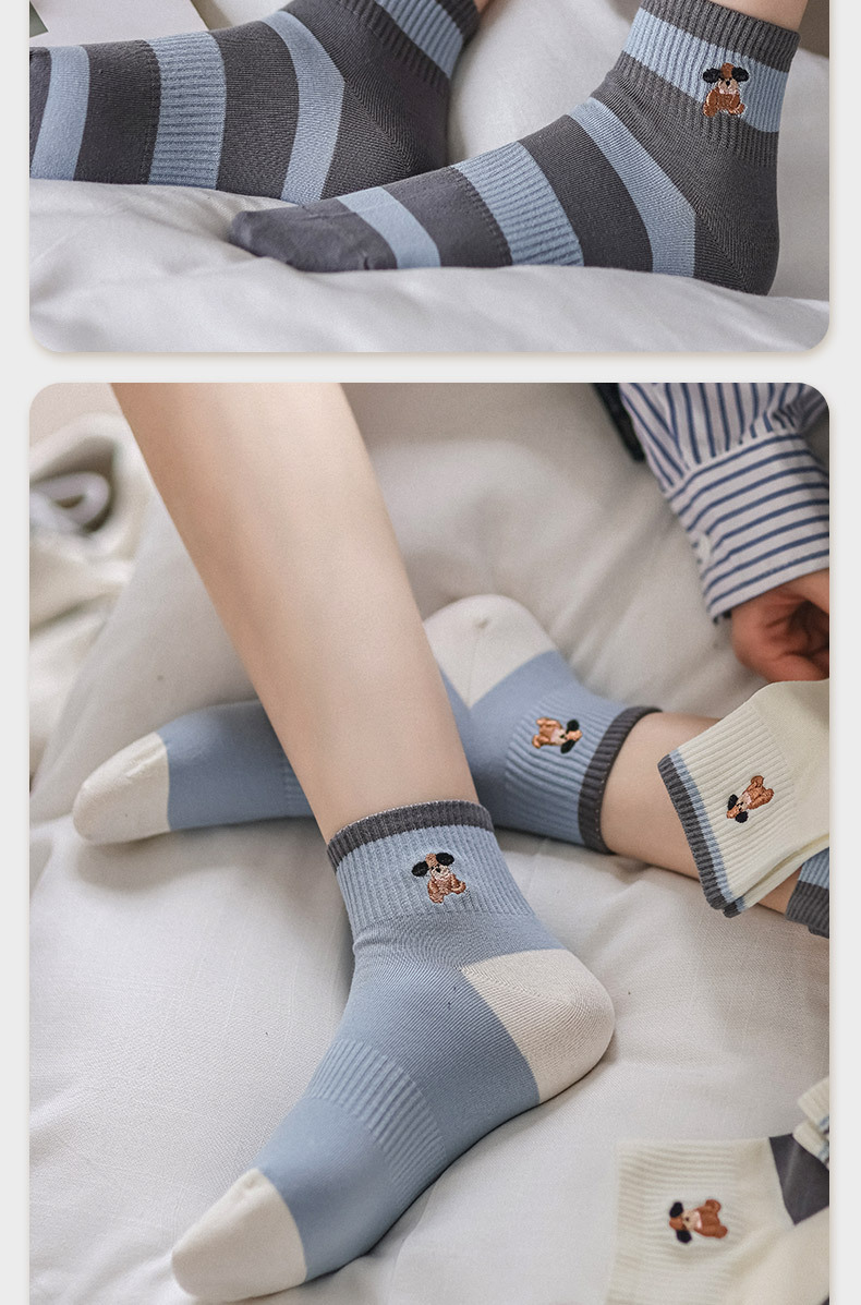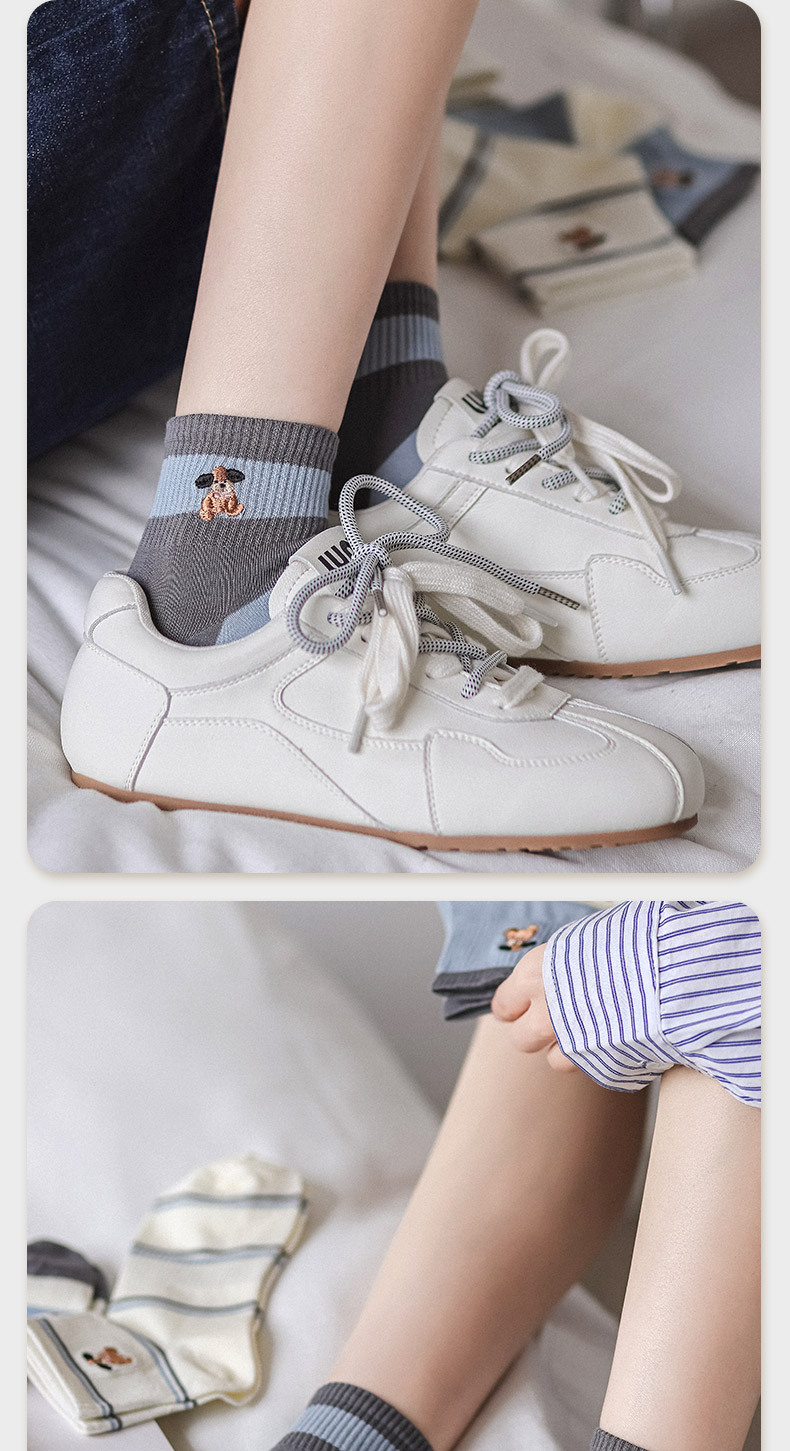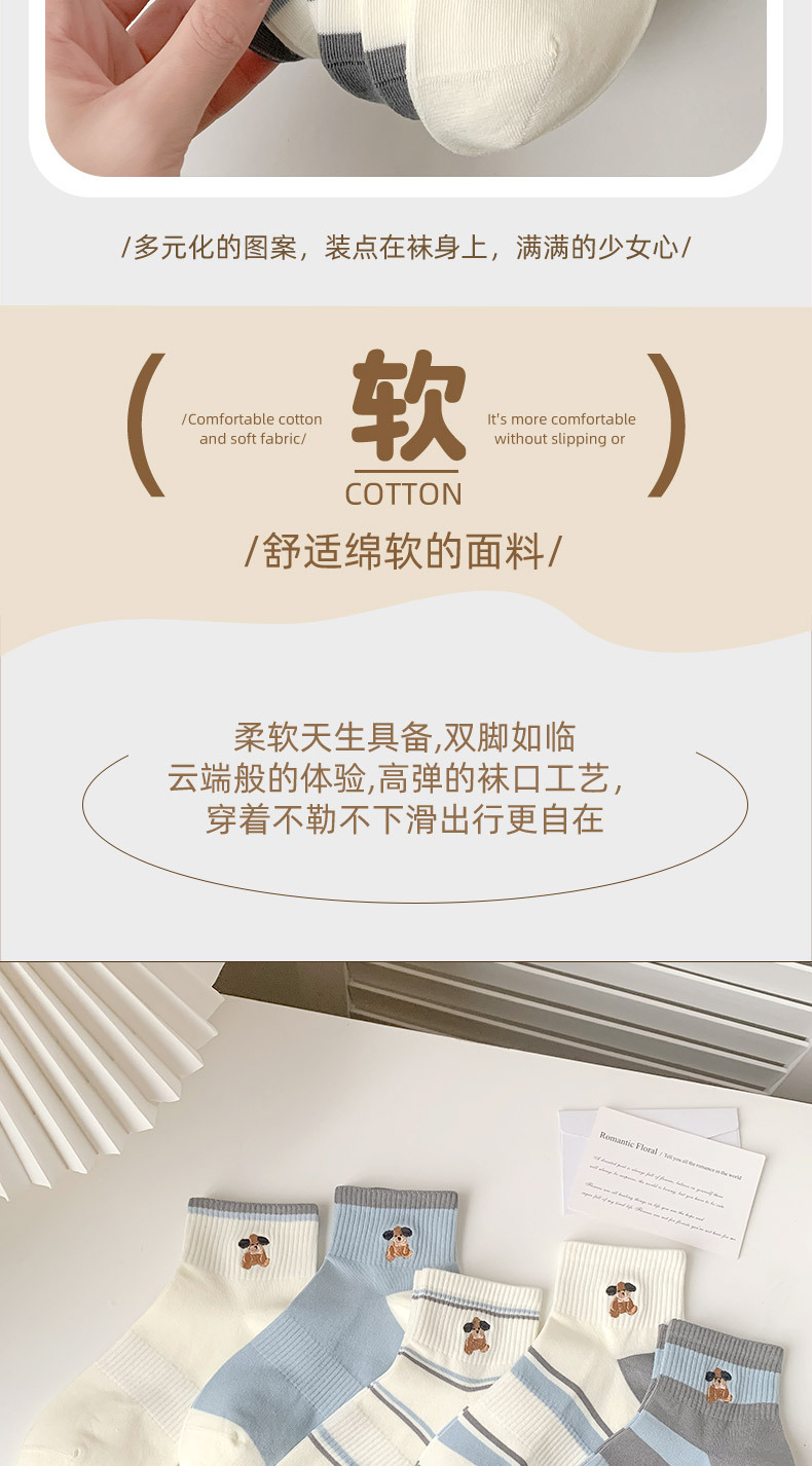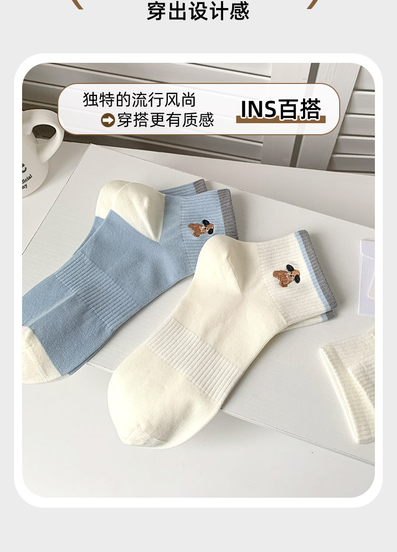 명암 컬러 스트라이프 양말 여성 코튼 땀 흡수 통기성 수 놓은 강아지 양말 Instagram 스타일 유행 편안하고 잘 맞는 캐주얼 양말