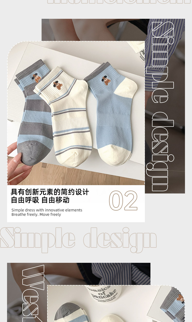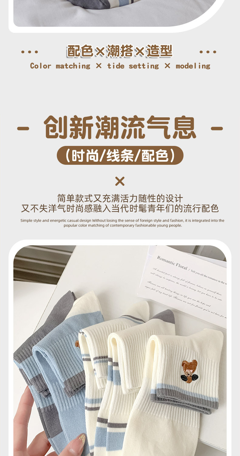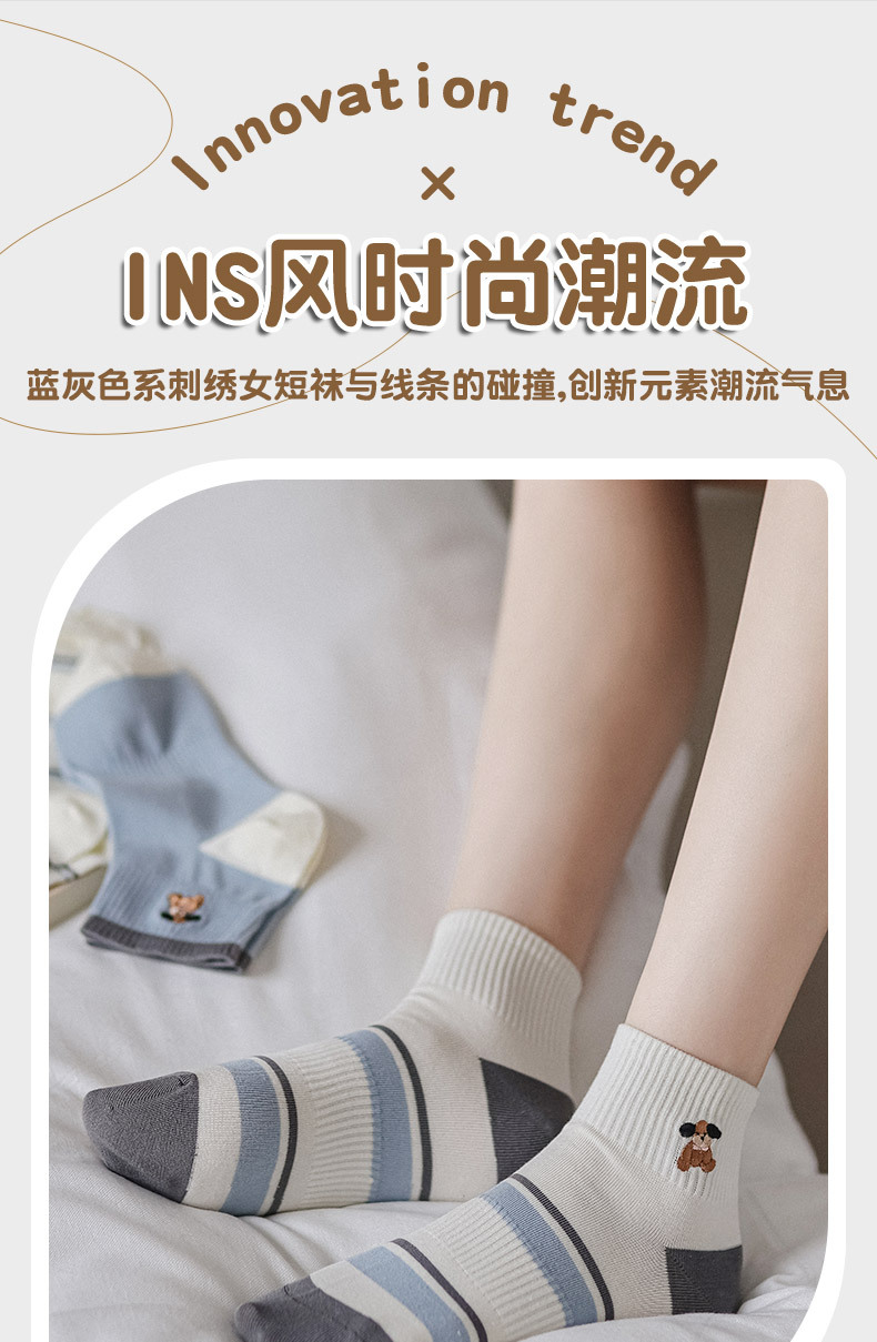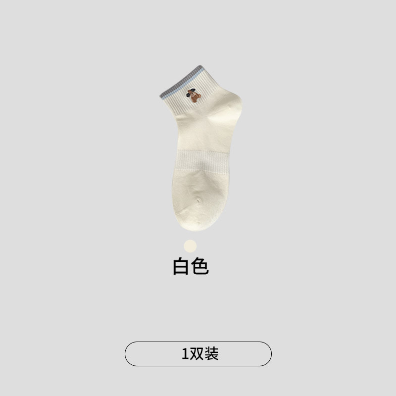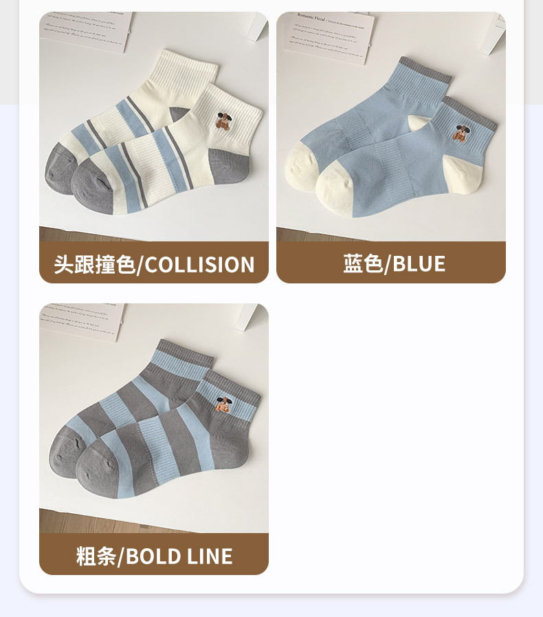 명암 컬러 스트라이프 양말 여성 코튼 땀 흡수 통기성 수 놓은 강아지 양말 Instagram 스타일 유행 편안하고 잘 맞는 캐주얼 양말