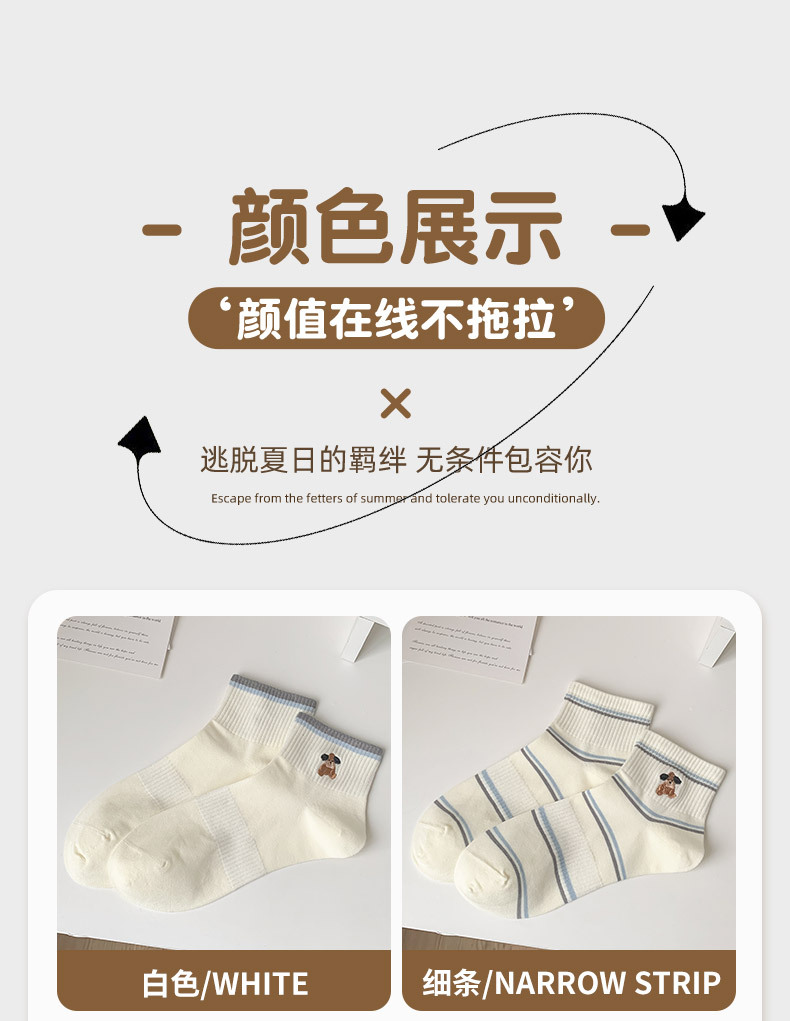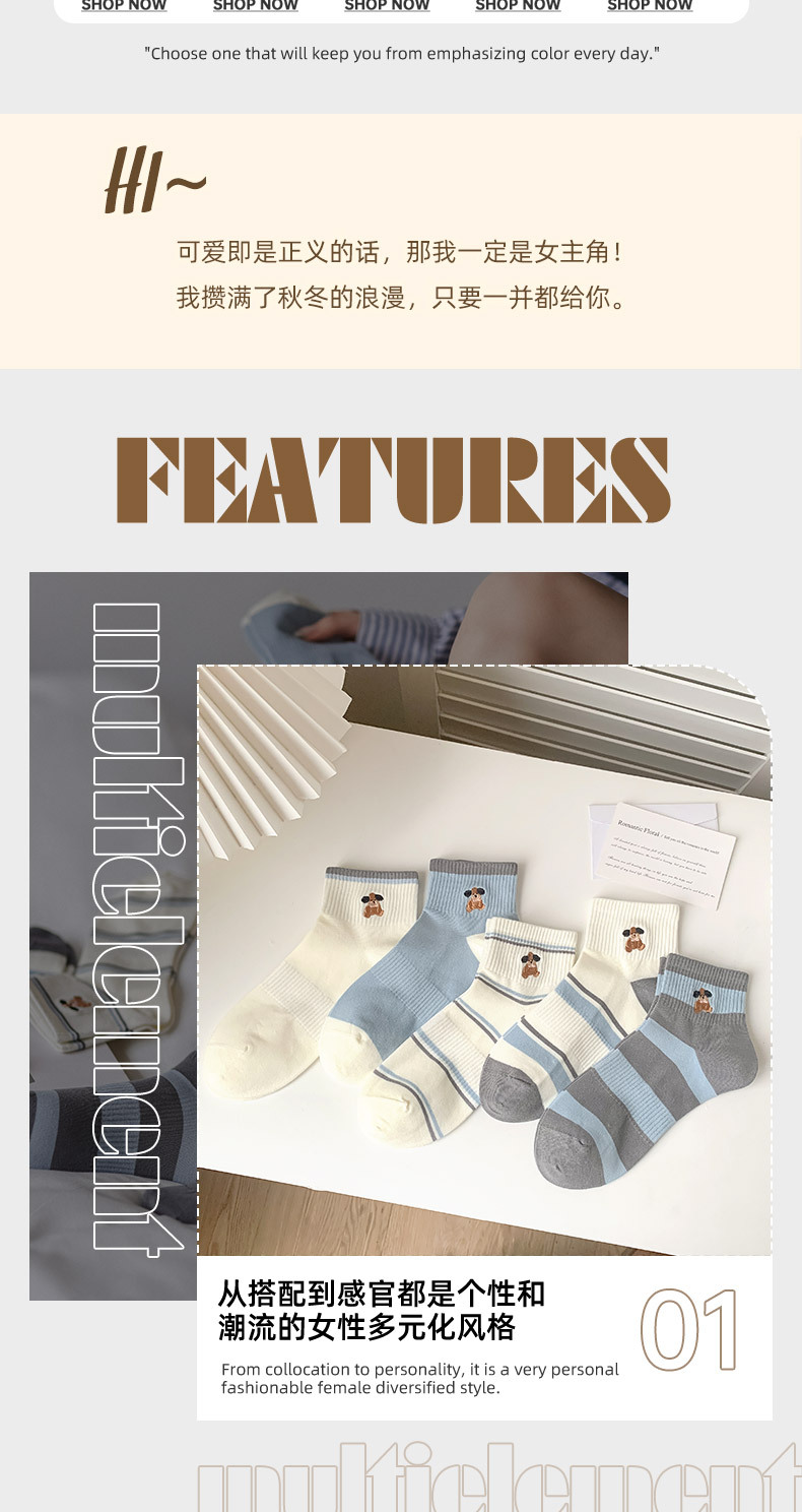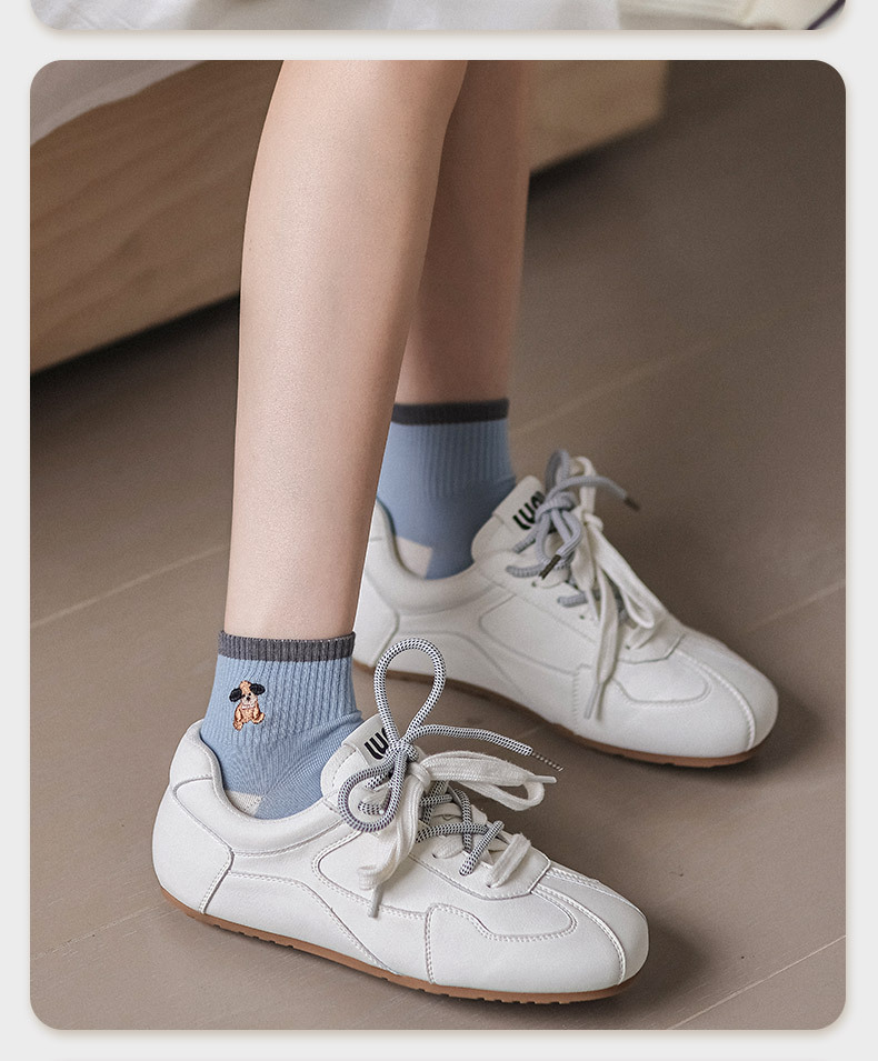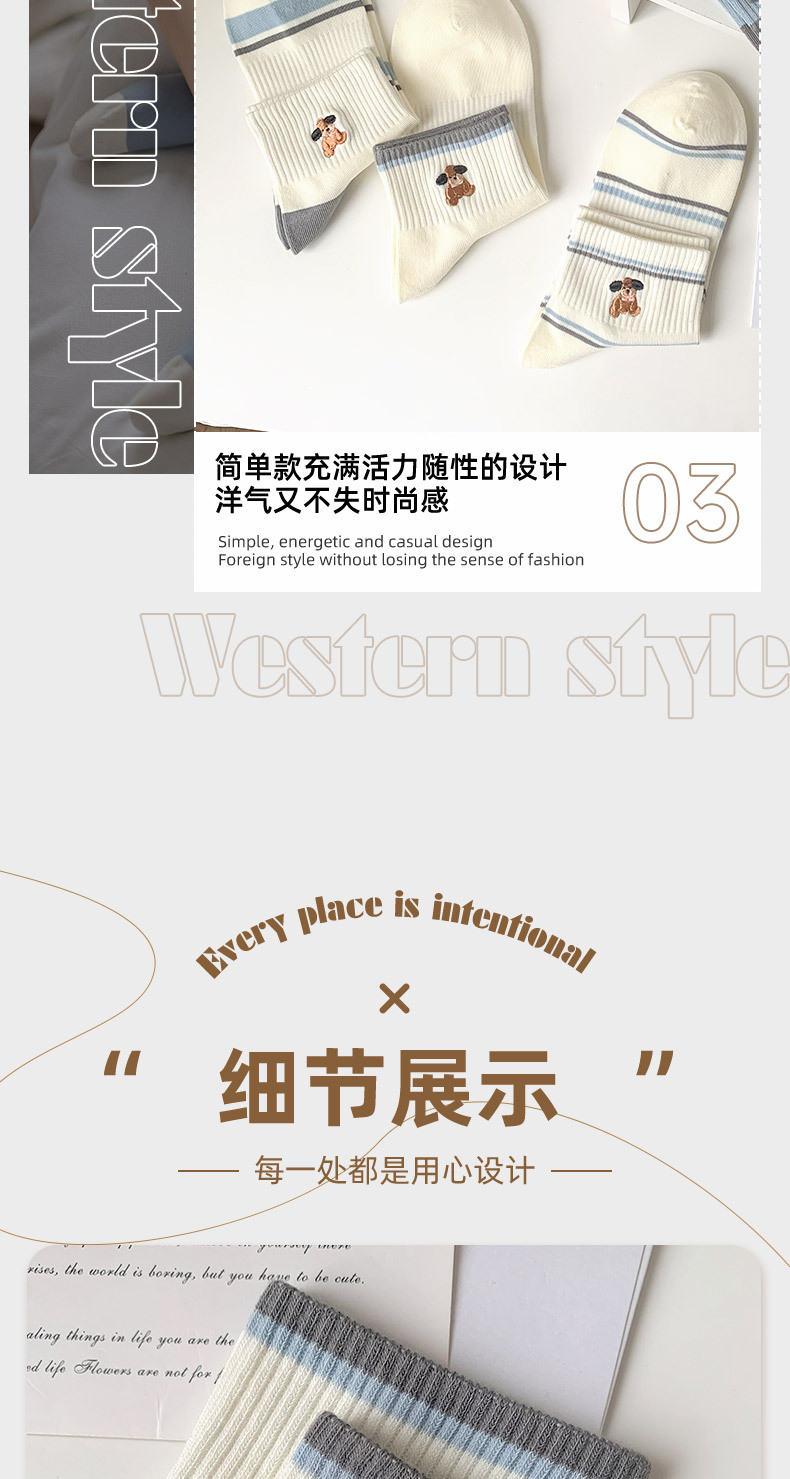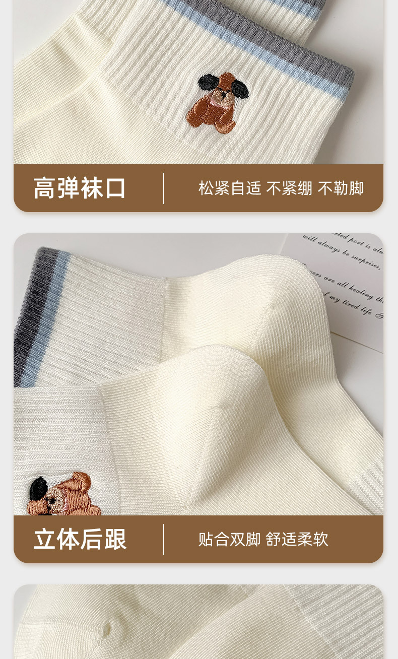 명암 컬러 스트라이프 양말 여성 코튼 땀 흡수 통기성 수 놓은 강아지 양말 Instagram 스타일 유행 편안하고 잘 맞는 캐주얼 양말
