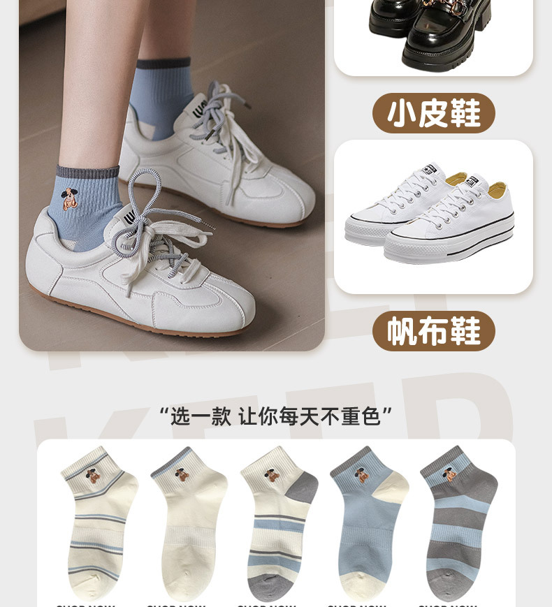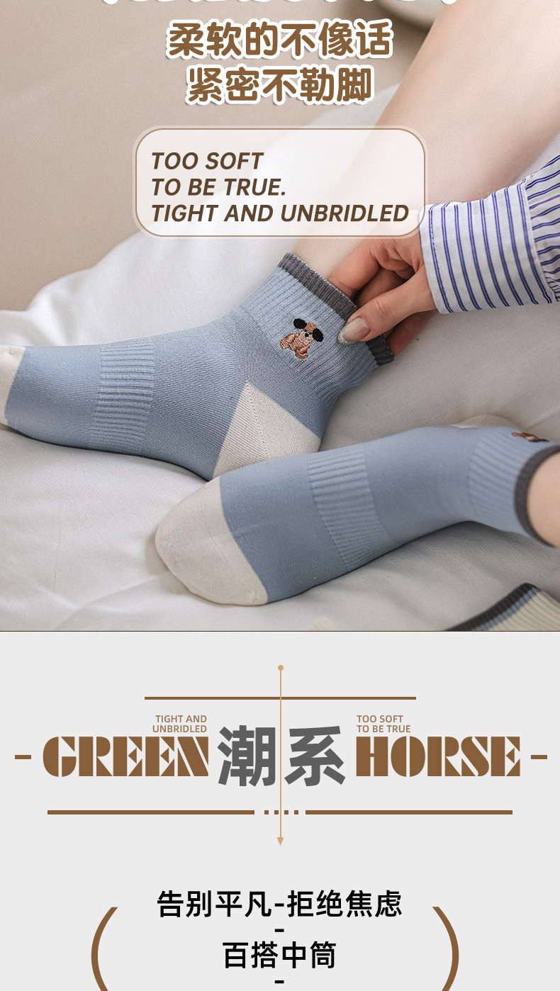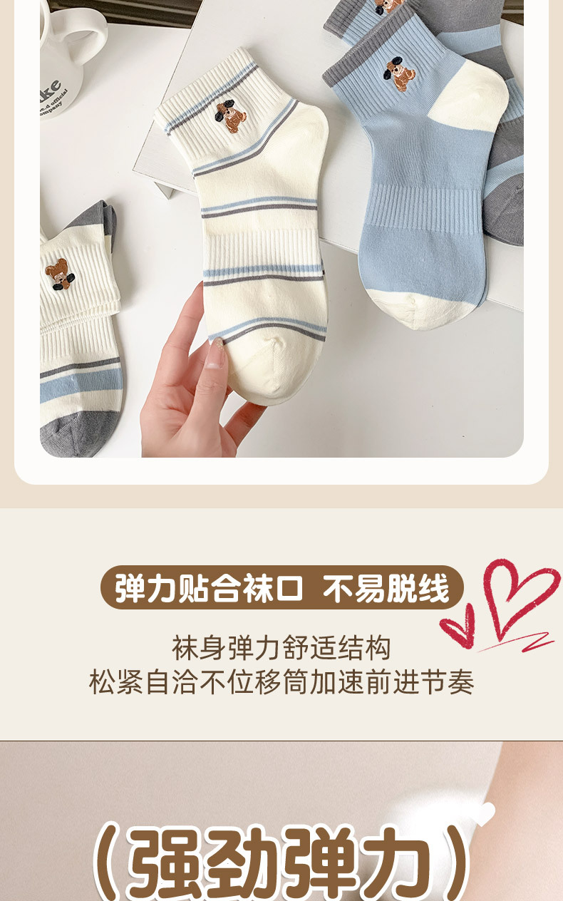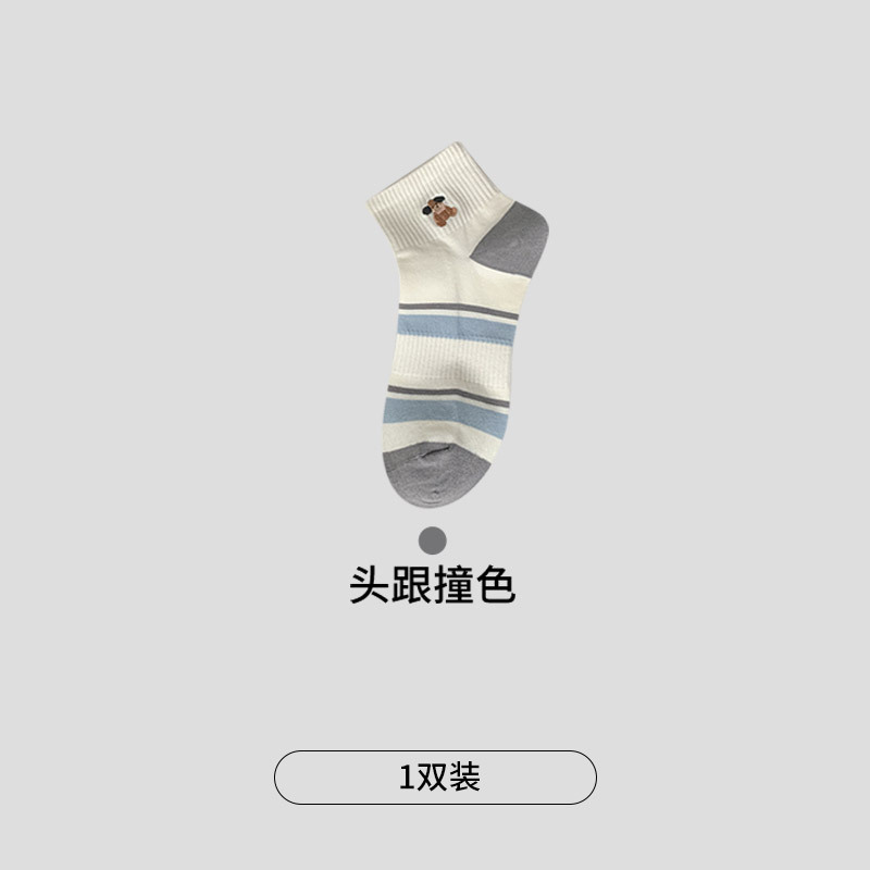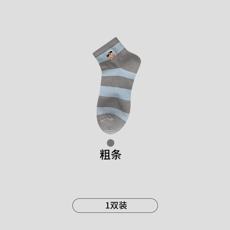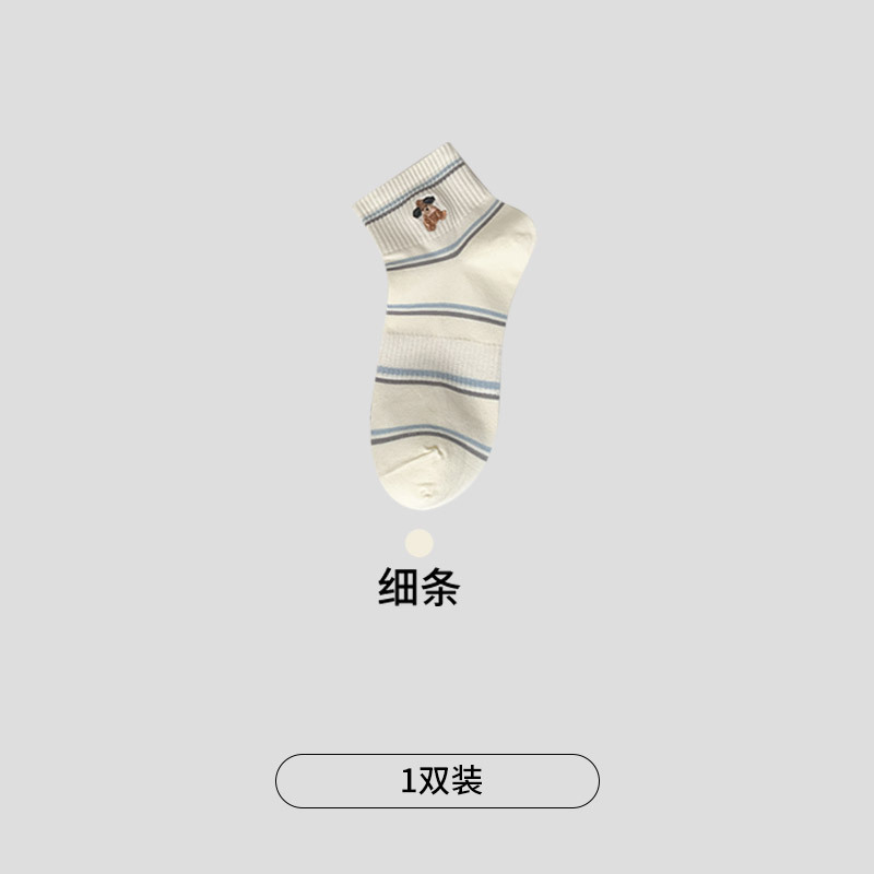 명암 컬러 스트라이프 양말 여성 코튼 땀 흡수 통기성 수 놓은 강아지 양말 Instagram 스타일 유행 편안하고 잘 맞는 캐주얼 양말스토어 가기