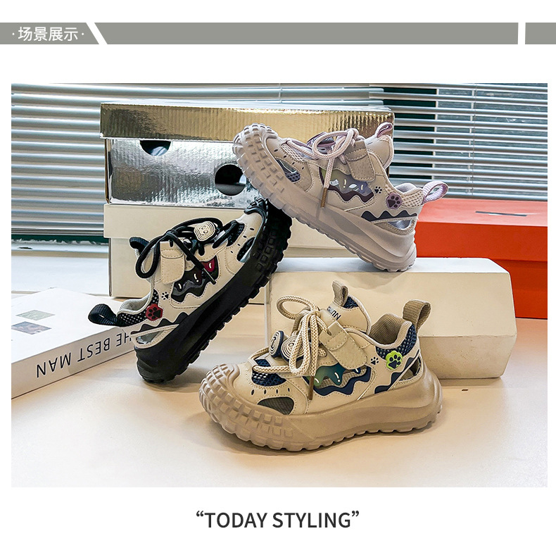 어린이 스포츠 샌들 2025 봄과 여름 새로운 소녀 메쉬 통기성 토레 신발 패션 소년 캐주얼 프레임 신발스토어 가기