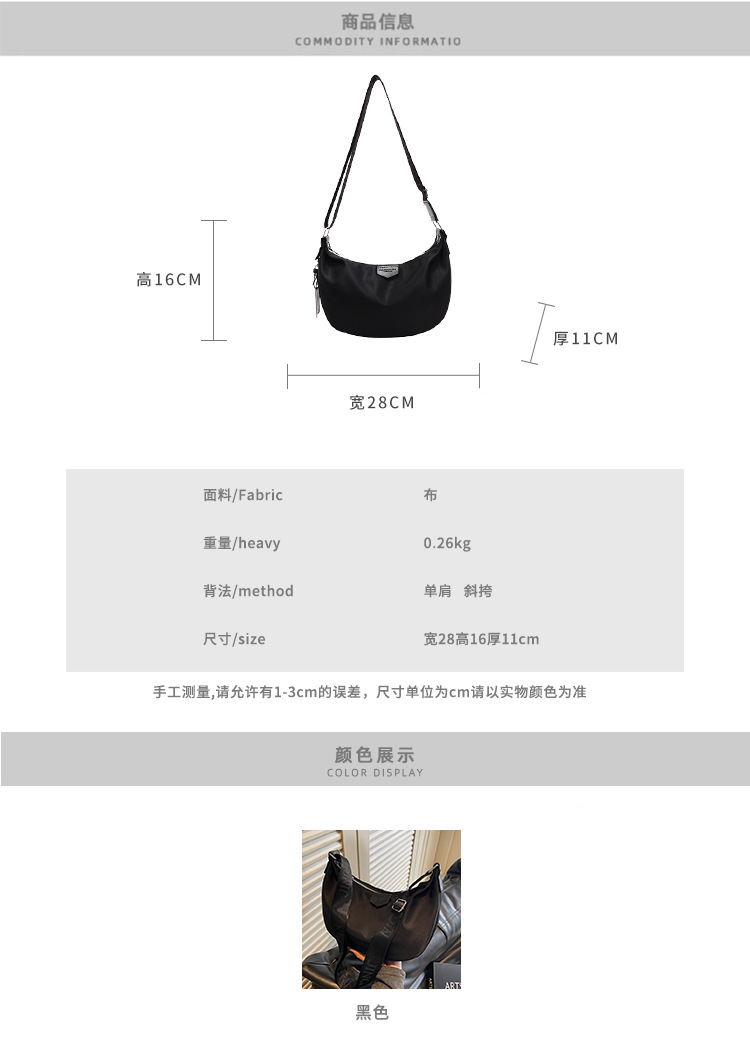 하이 엔드 센스 대용량 나일론 천 여성의 간단한 단일 어깨 경량 어깨 가방 스포츠 가방 여성용 통근 크로스 바디 만두 백