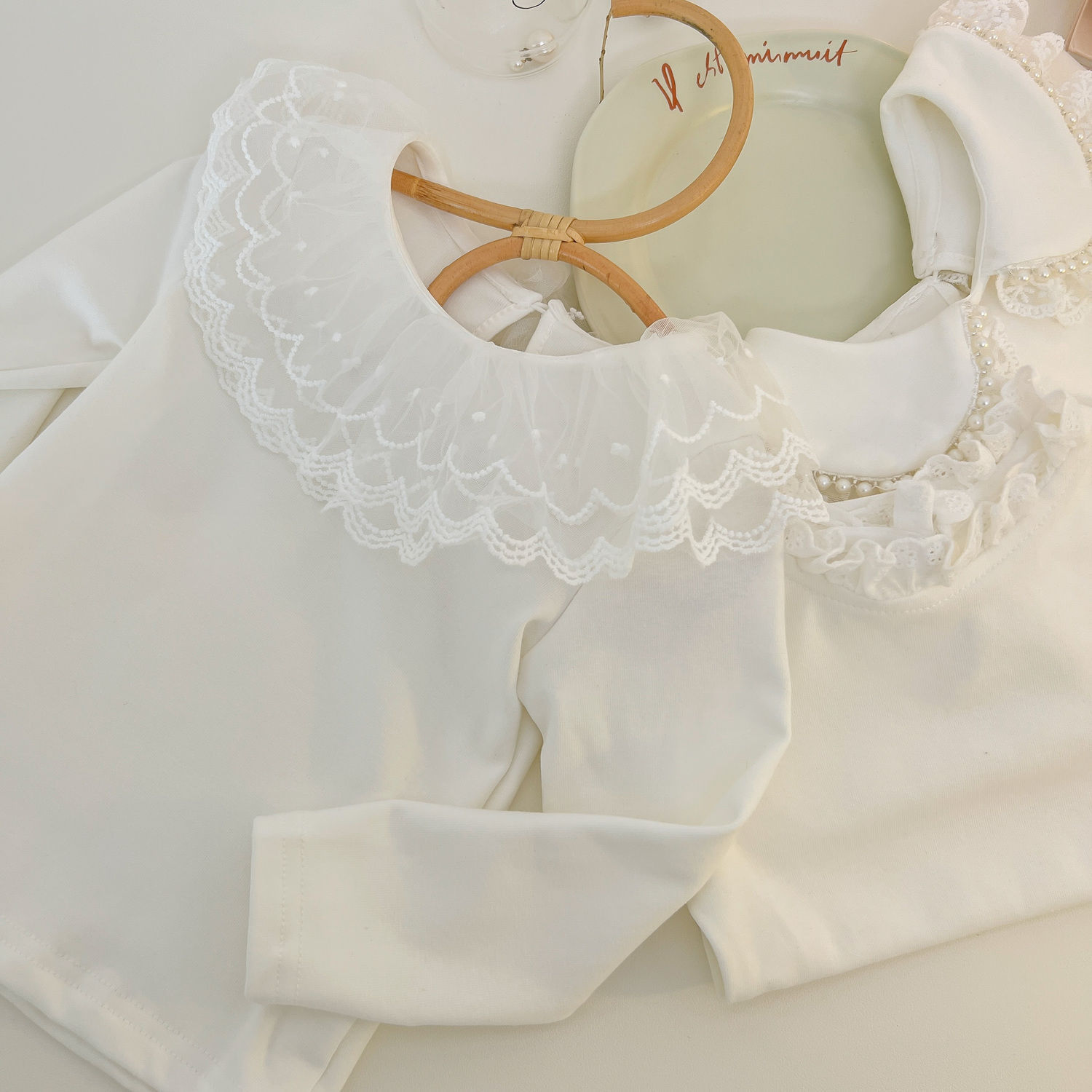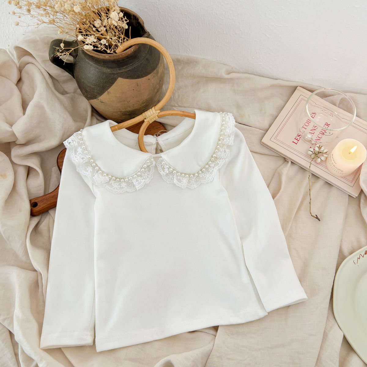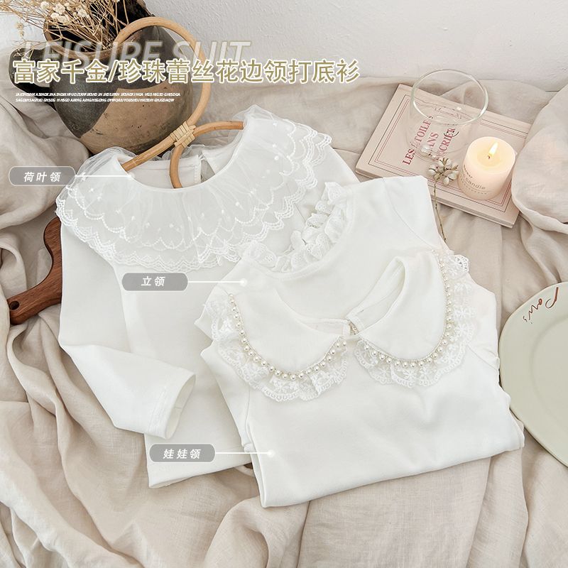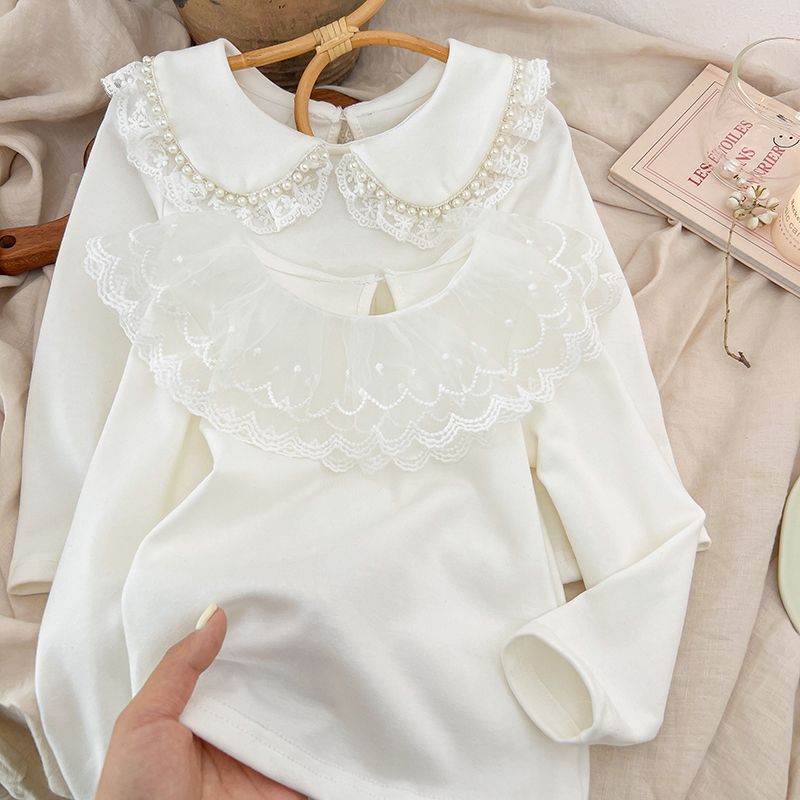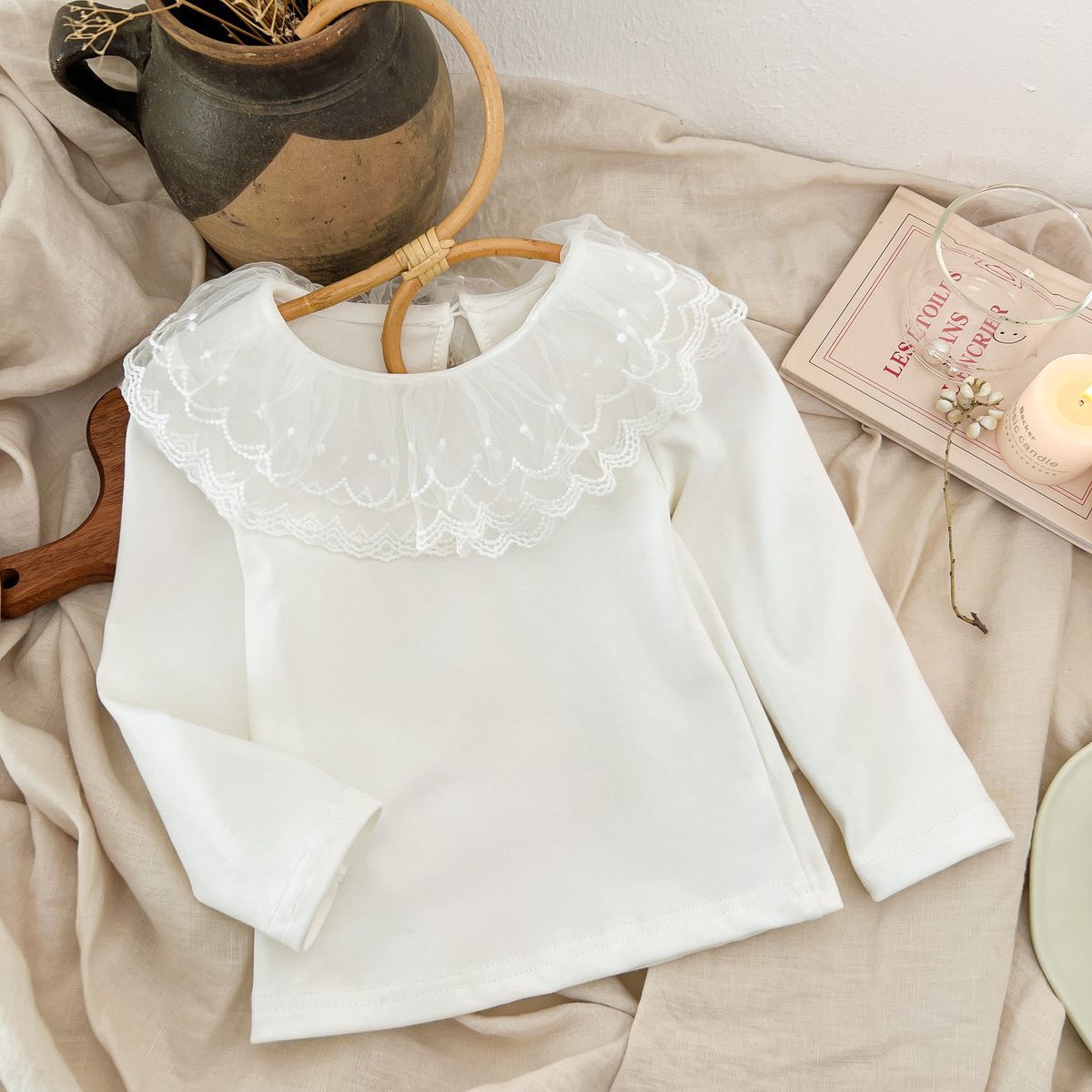 소녀 티셔츠 걸스 가을과 겨울 퓨어 코튼 슬림 핏 긴팔 티셔츠 가을 소녀의 서양식 올 매치 옷깃베이스 셔츠