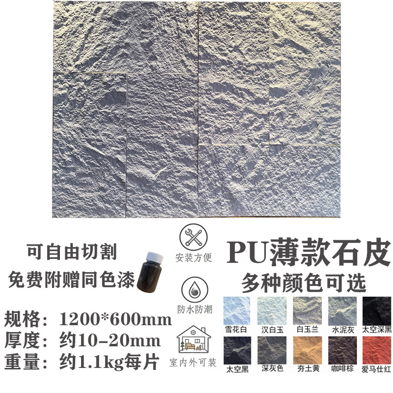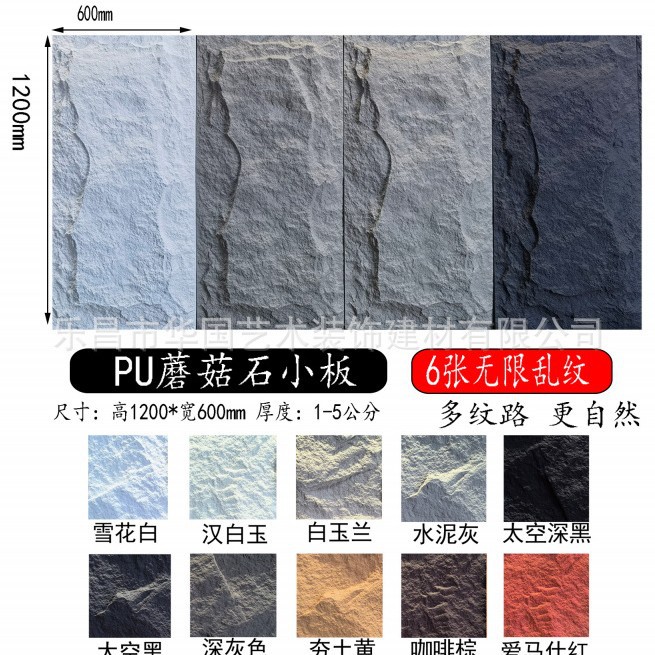 PU 돌 가죽 배경 벽 빛 문화 돌 외부 벽 벽돌 초박형 PU 모조 돌 베니어 대형 플레이트 심지어 패턴 버섯 돌