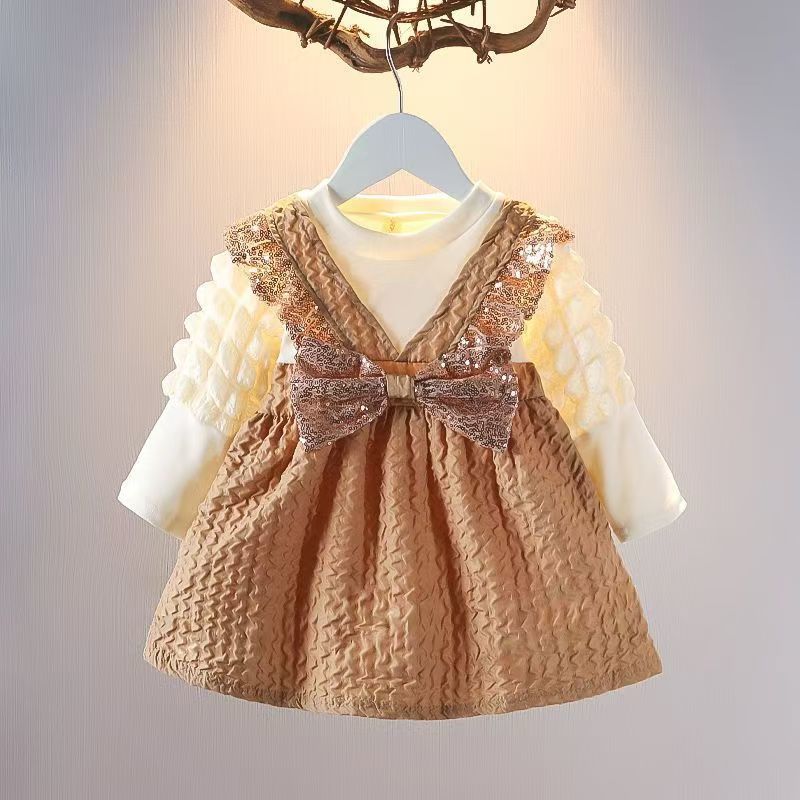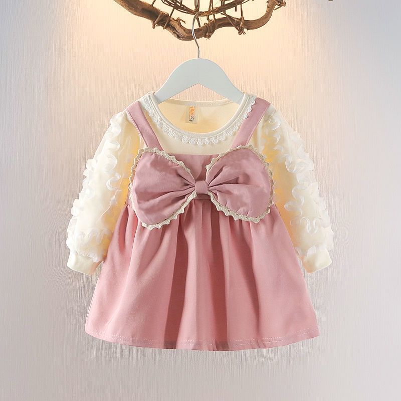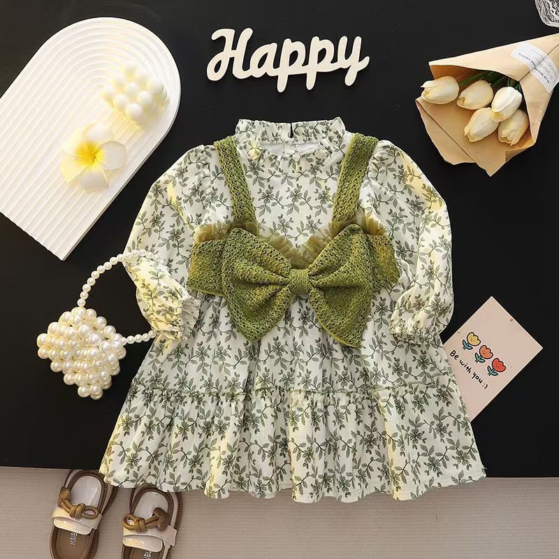 소녀 2025 봄과 가을 새로운 스타일 원피스 어린이 메쉬 긴 소매 활 아기 슈퍼 귀여운 공주 원피스스토어 가기