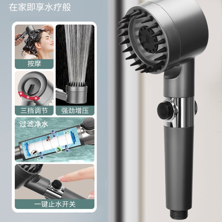 • [부스트 세트 3] 건그레이 마사지 필터 샤워 + 1.5m 방폭 튜브 + 브래킷