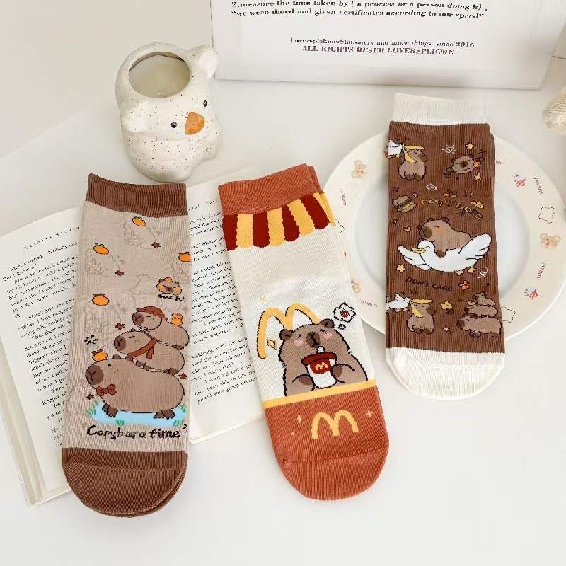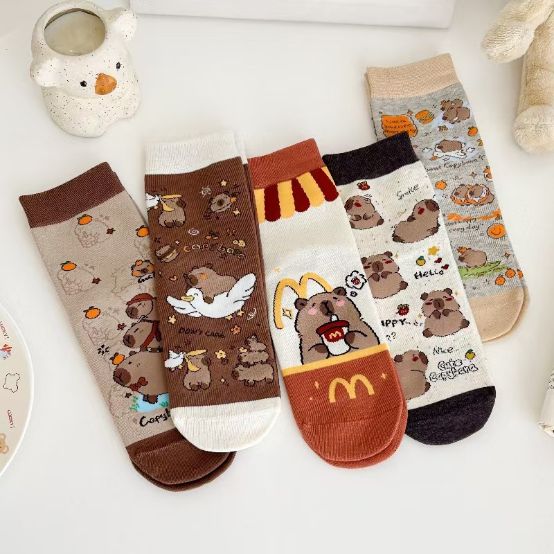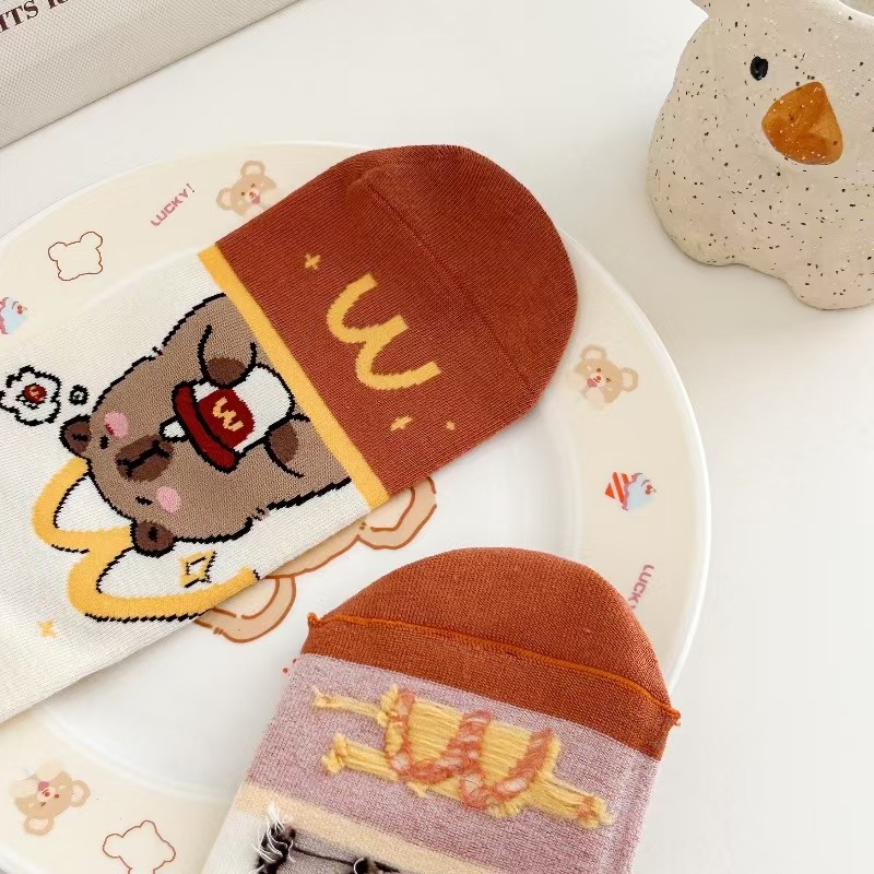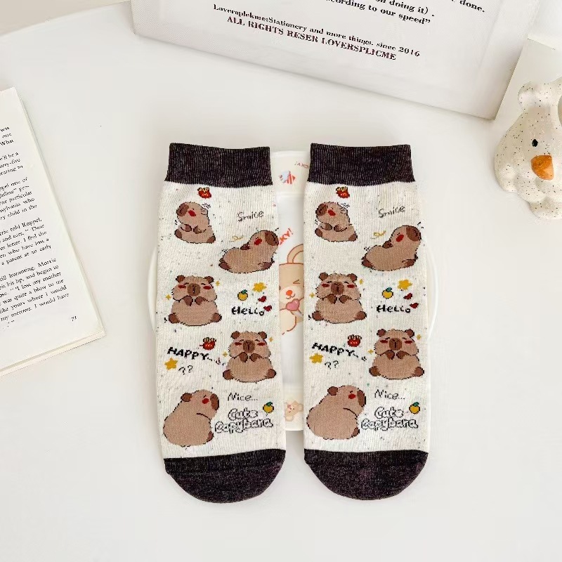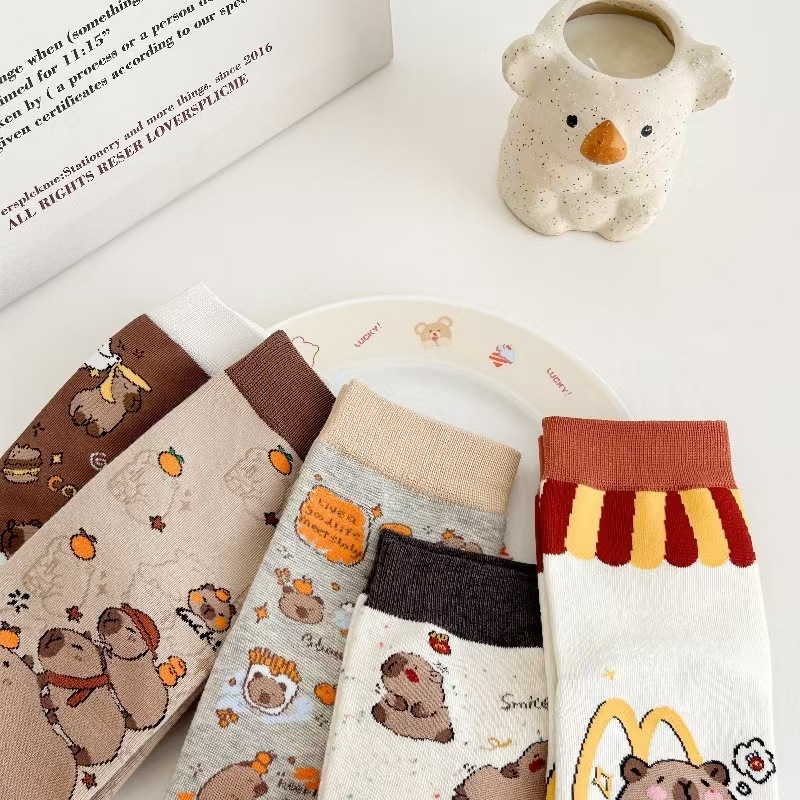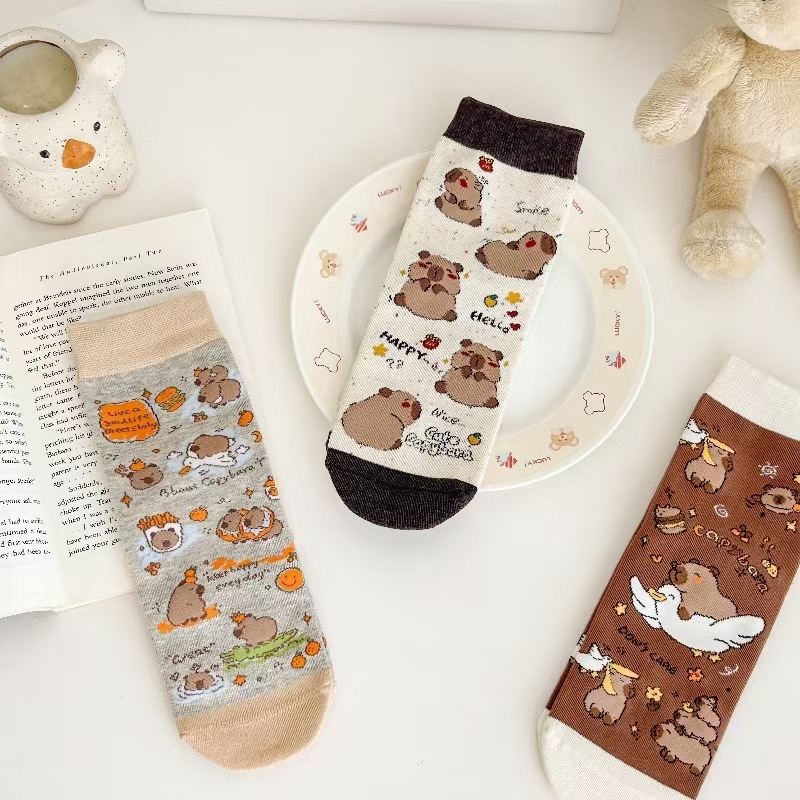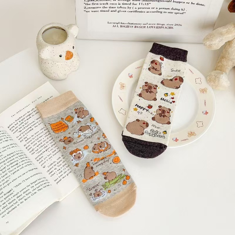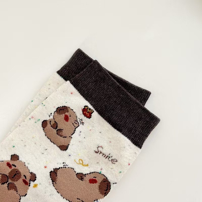 뼈없는 양말 여자 한국 스타일 중간 길이 양말 Ins 유행 스타킹 올 매치 일본 스타일 스타킹 귀여운 만화 개 패턴