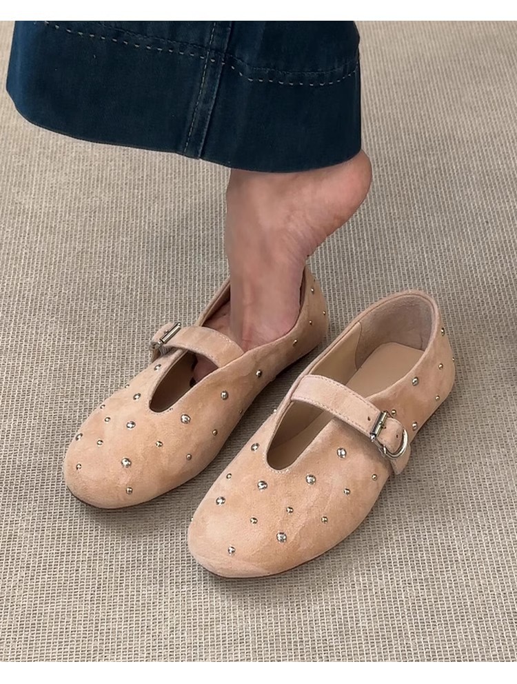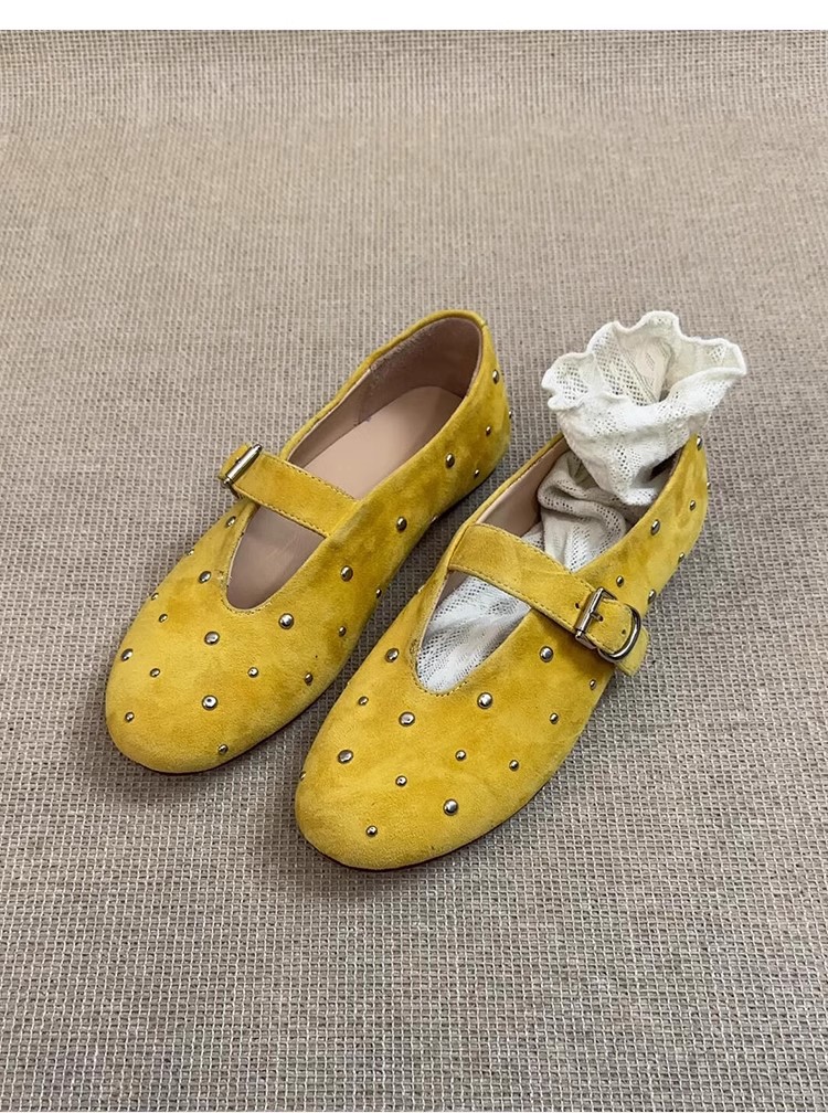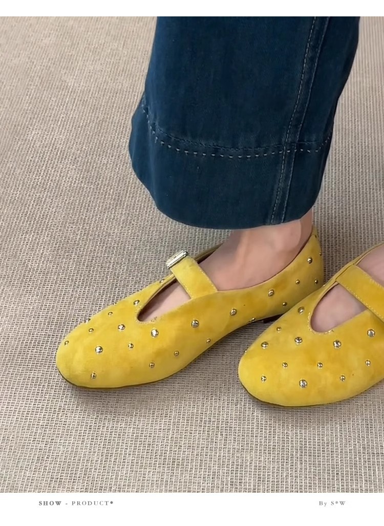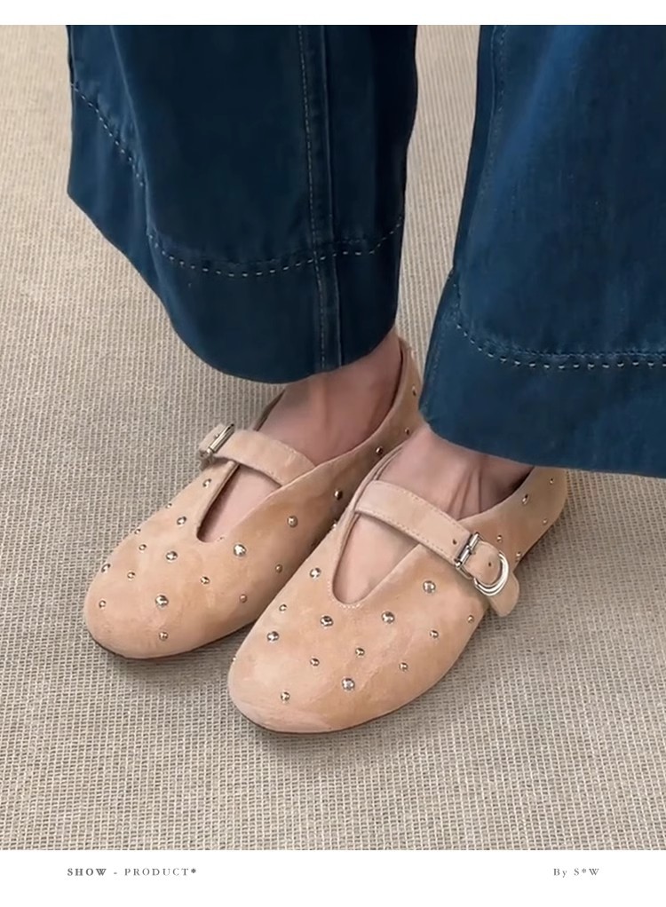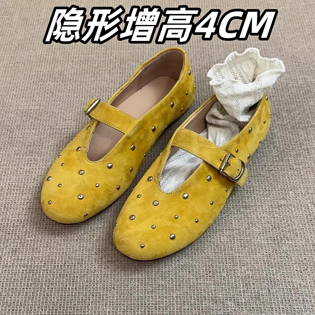 재고 있음, 즉시 배송! 여성용 높이 4CM 리벳 싱글 슈즈, 레트로 라운드 토 메리 제인 슈즈, 스웨이드 펌프스 할머니 슈즈스토어 가기