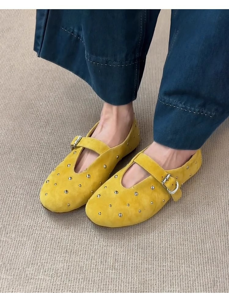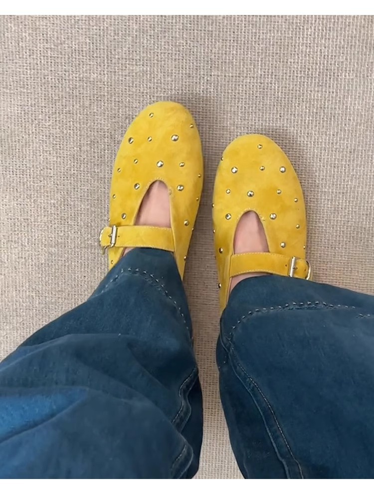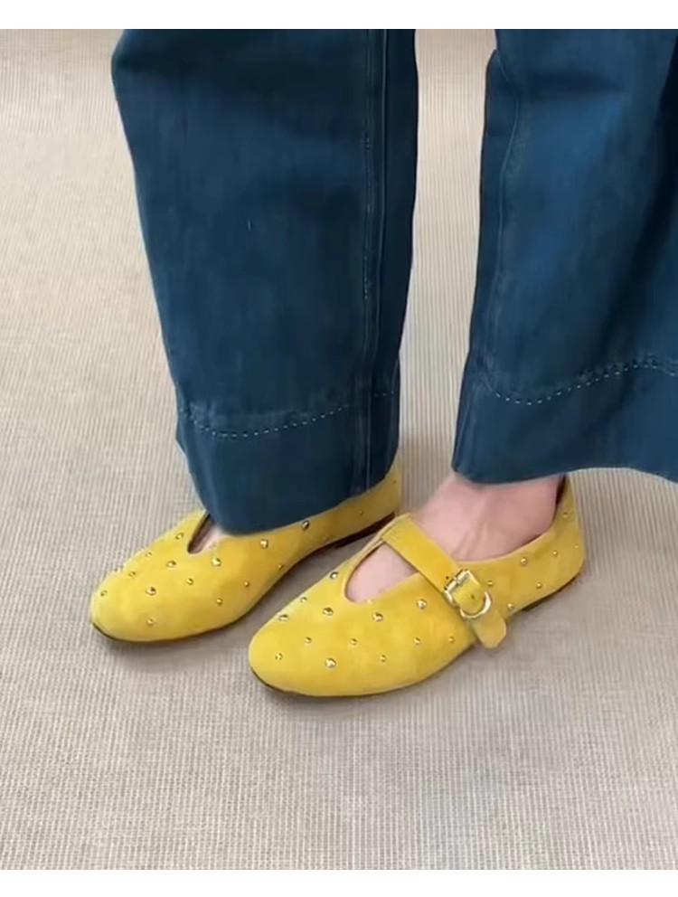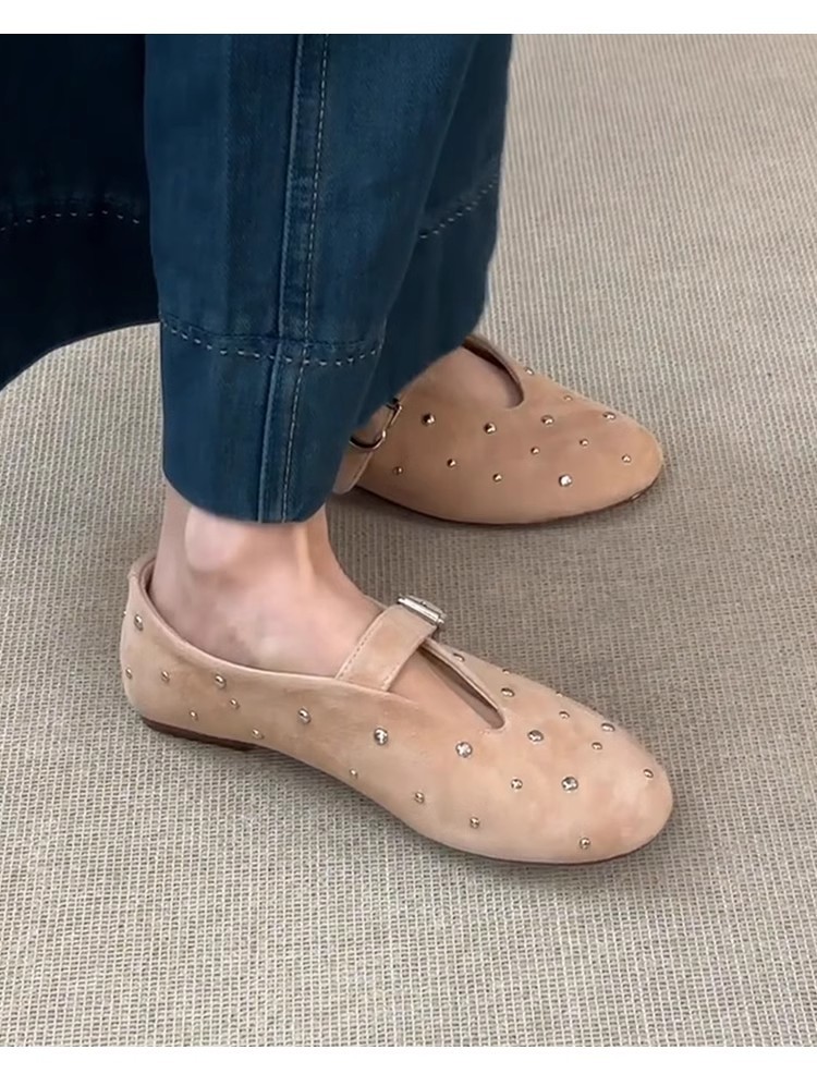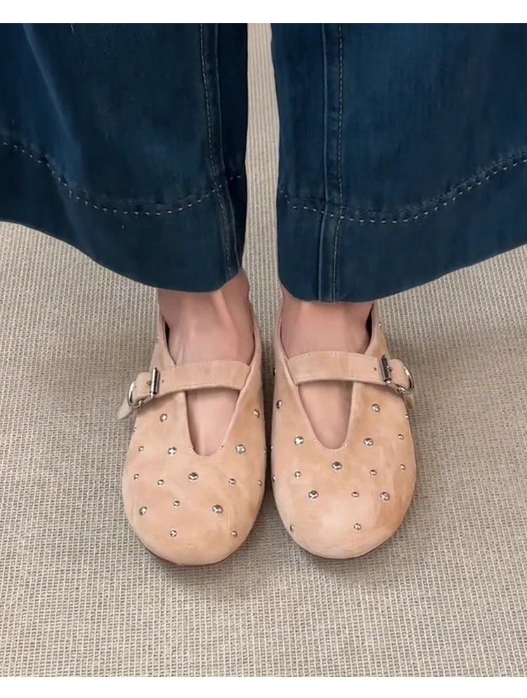 재고 있음, 즉시 배송! 여성용 높이 4CM 리벳 싱글 슈즈, 레트로 라운드 토 메리 제인 슈즈, 스웨이드 펌프스 할머니 슈즈스토어 가기
