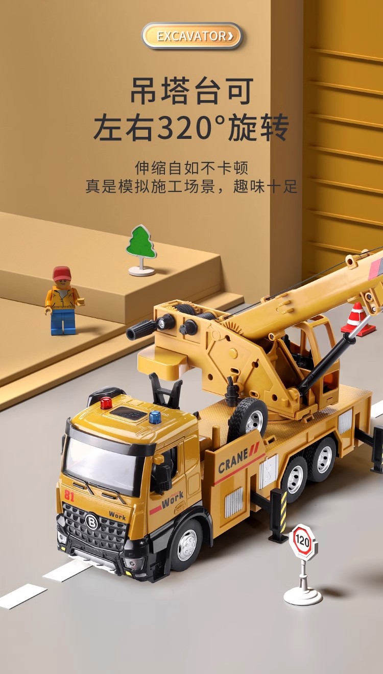 어린이 시뮬레이션 합금 크레인 장난감 자동차 대형 크레인 엔지니어링 차량 구조 차량 굴삭기 모델 장난감스토어 가기
