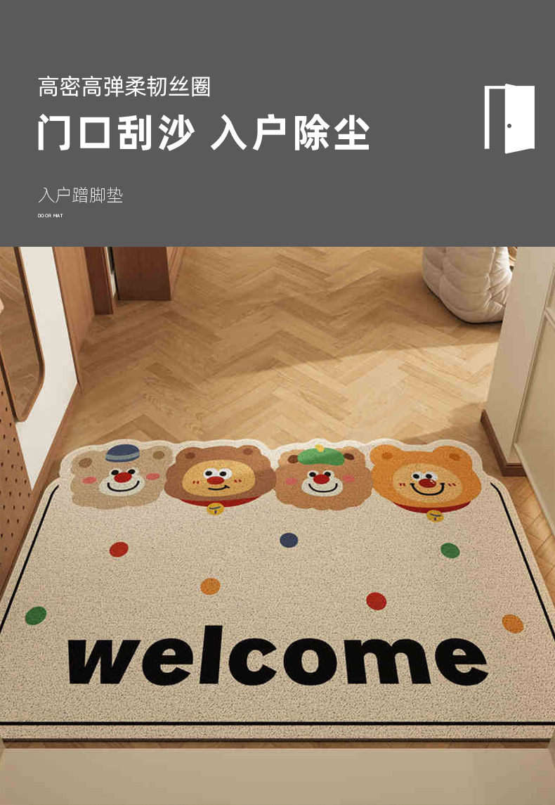 홈 플로어 매트 만화 2025 새로운 도어 먼지 방지 및 입구를위한 입구 머드 스크래핑 실크 링 플로어 매트 용 사용하기 쉬운 풋 매트