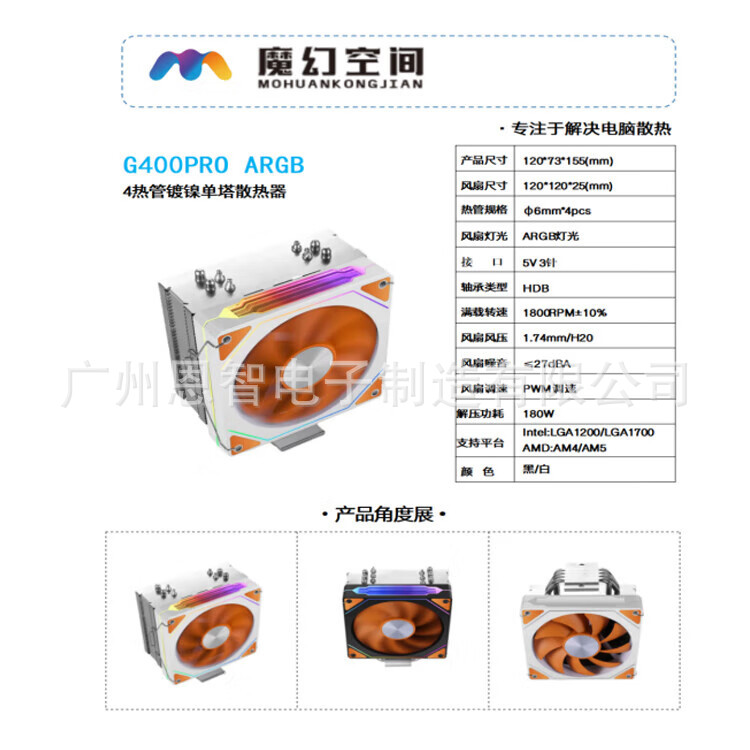 매직 스페이스 G400PRO 공기 냉각 CPU 라디에이터 4 히트 파이프 단일 타워 LGA1200/1700 Fastener/AM4AM5