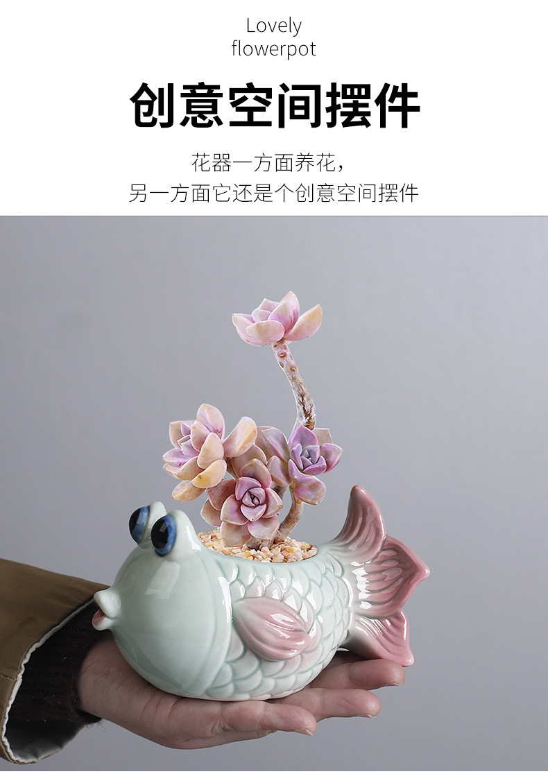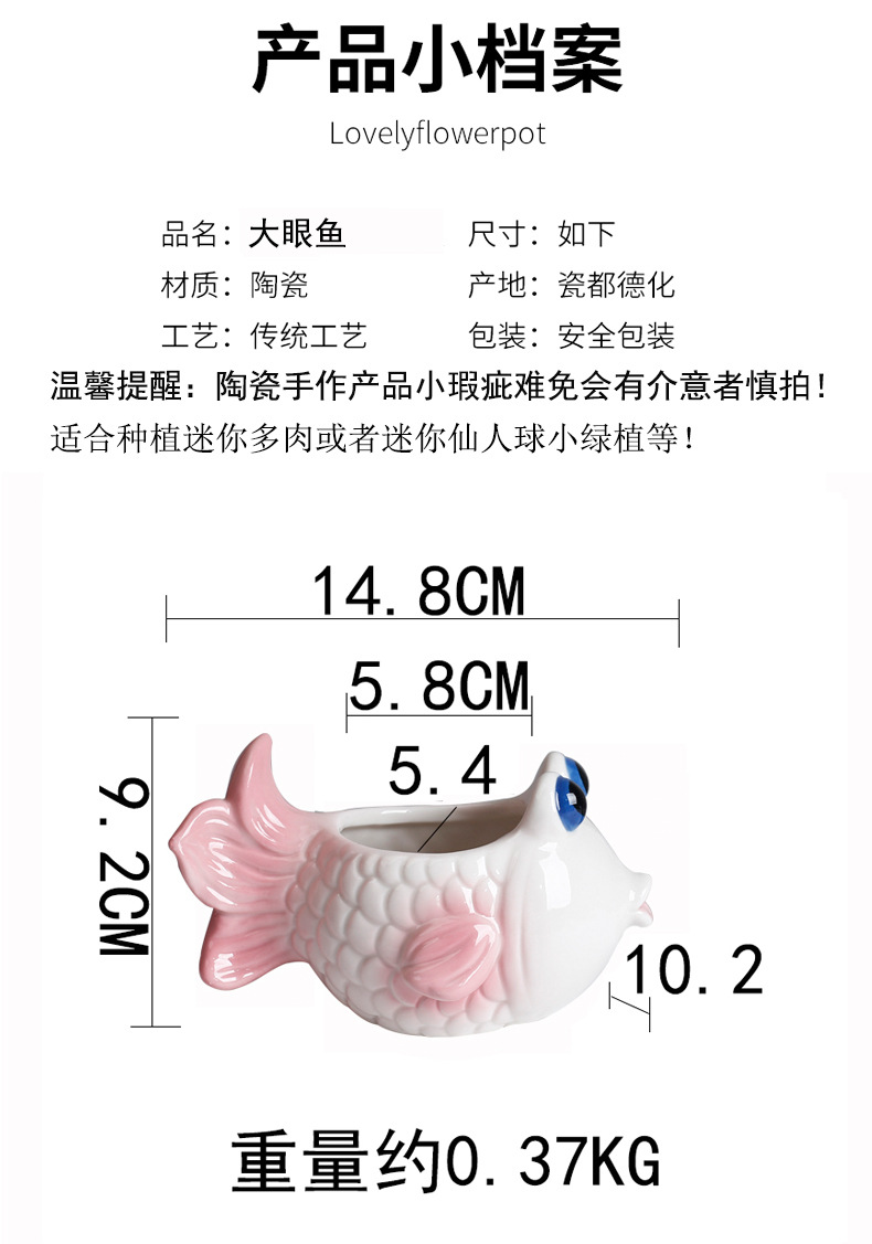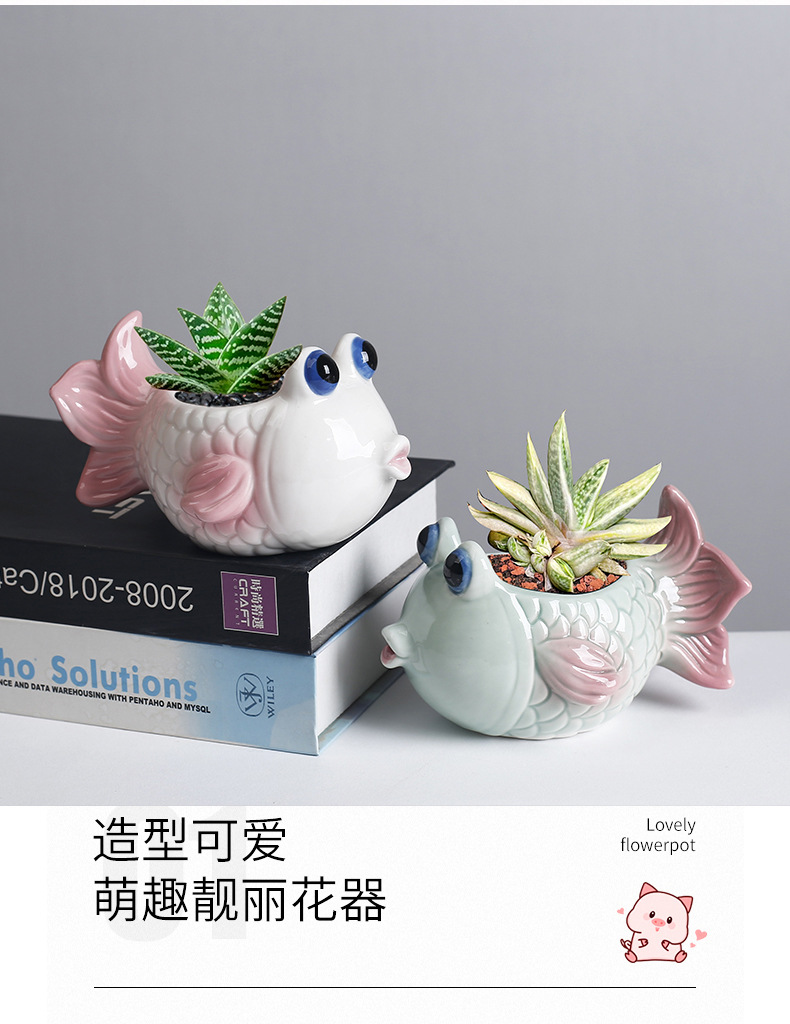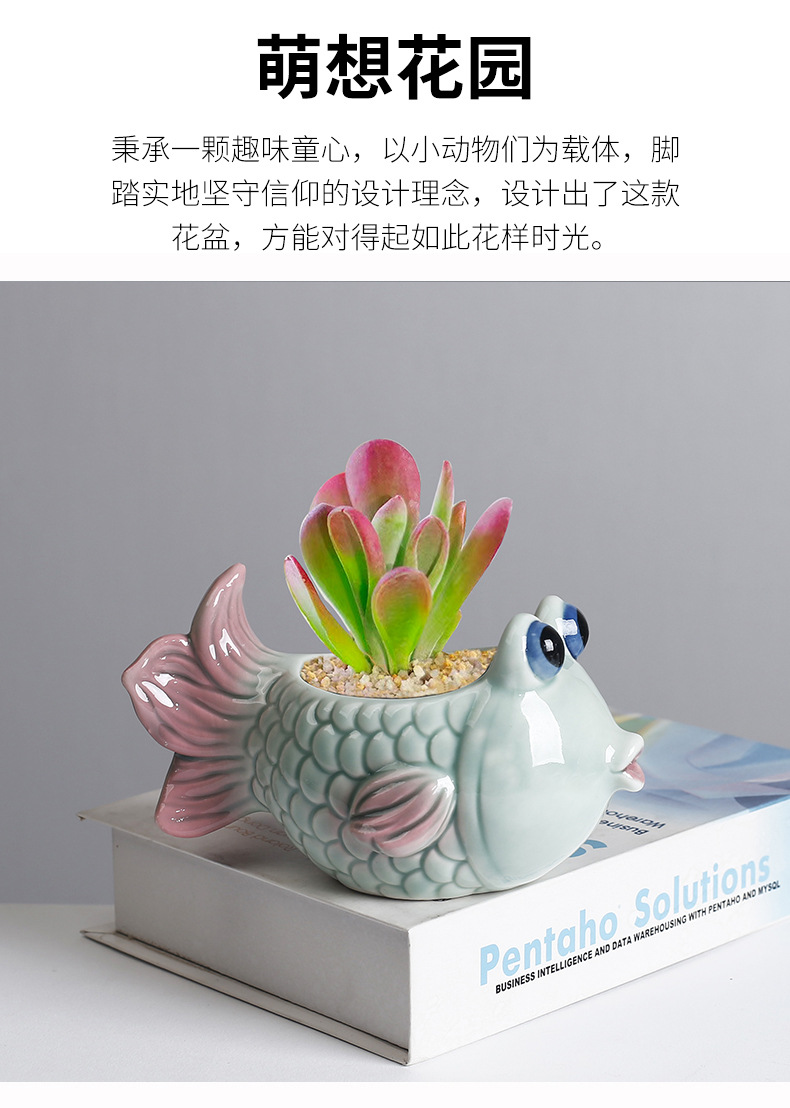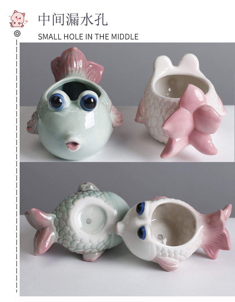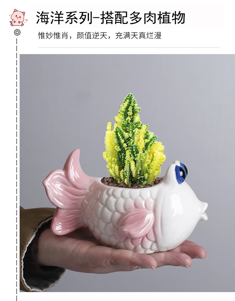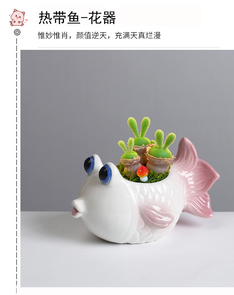국경 간 아마존 해양 다육 꽃 냄비 세라믹 장식품 귀여운 만화 열대 생선 고기 식물 작은 꽃 냄비 배치스토어 가기